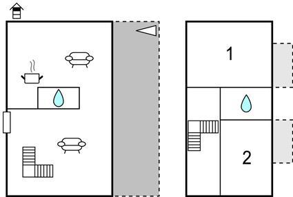Badezimmer (nr. 2) - WC. Warmes und kaltes Wasser. Dusche