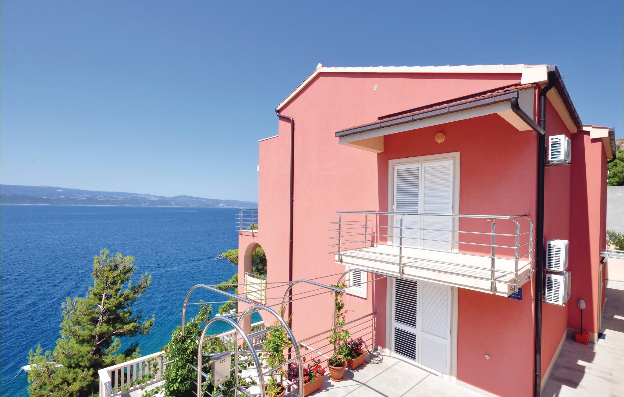 Ein Haus mit mehreren Ferienwohnungen in der Nähe vom Kiesstrand. Die Wohnungen sind komfortabel, geräumig und schön eingerichtet. Die Gäste können ihren Morgenkaffee auf schönen Balkonen genießen, von denen ein herrlicher Panoramablick auf das Meer geboten wird. CDT457, CDT458 und CDT459 liegen im Erdgeschoß, während CDT182, CDT183 und CDT184 im 1.Stock verteilt sind. CDT181 im 2.Stock besitzt eine Mindestdeckenhöhe von 120 cm. Eine 50 m lange Treppe führt zum Haus. Der Parkplatz befindet sich 200 m von der Unterkunft. Wir empfehlen einen Besuch in der Stadt Omis und an ihrem Sandstrand, beides liegt nur 3 km entfernt. Auch die Altstadt von Split, Split ist die größte Stadt Dalmatiens, ist bestimmt sehenswert. Ein kleiner Fitnessraum steht Ihnen zusätzlich zur gemeinsamen Nutzung zur Verfügung.