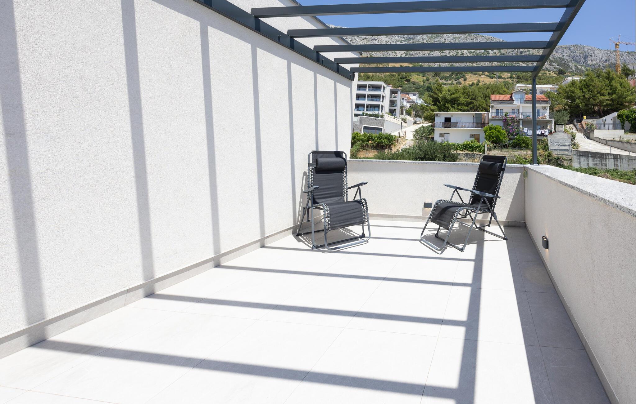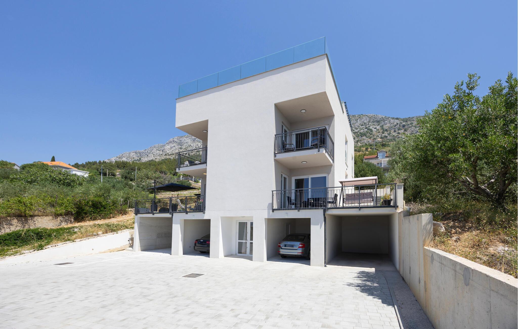 Nutzen Sie die Umgebung für abwechslungsreiche Urlaubsausflüge. Besuchen Sie die Altstadt von Omiš mit ihren Festungen und unternehmen Sie eine Bootstour durch die Cetina-Schlucht. Genießen Sie das mediterrane Flair der dalmatinischen Küste, entdecken Sie versteckte Buchten oder kosten Sie lokale Spezialitäten in den umliegenden Konobas.
