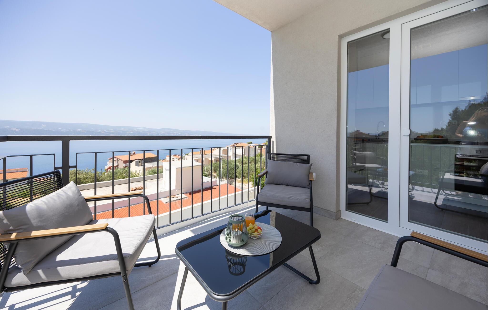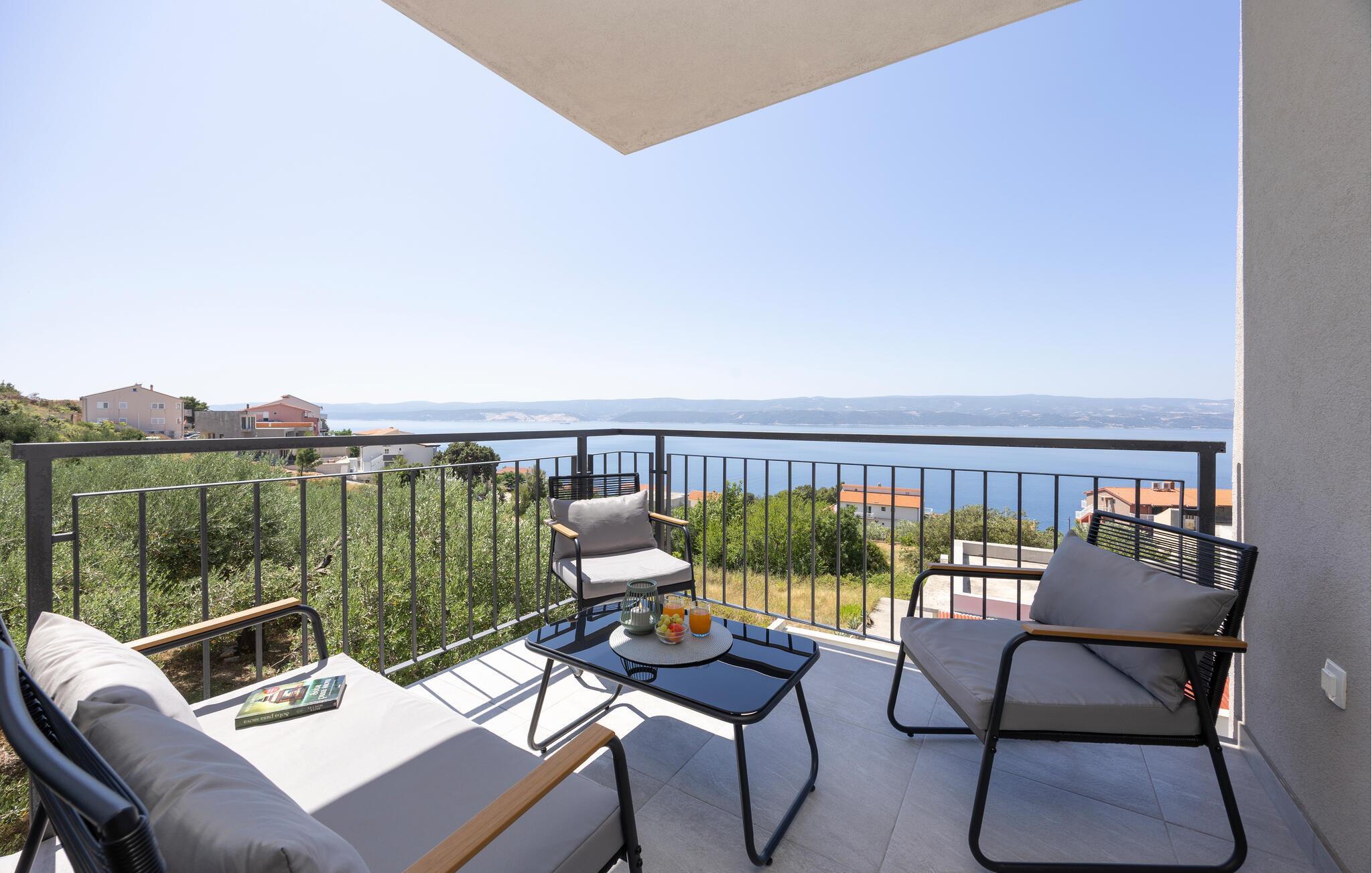 Verbringen Sie erholsame Urlaubstage in dieser stilvollen Ferienwohnung mit herrlichem Blick aufs Meer.