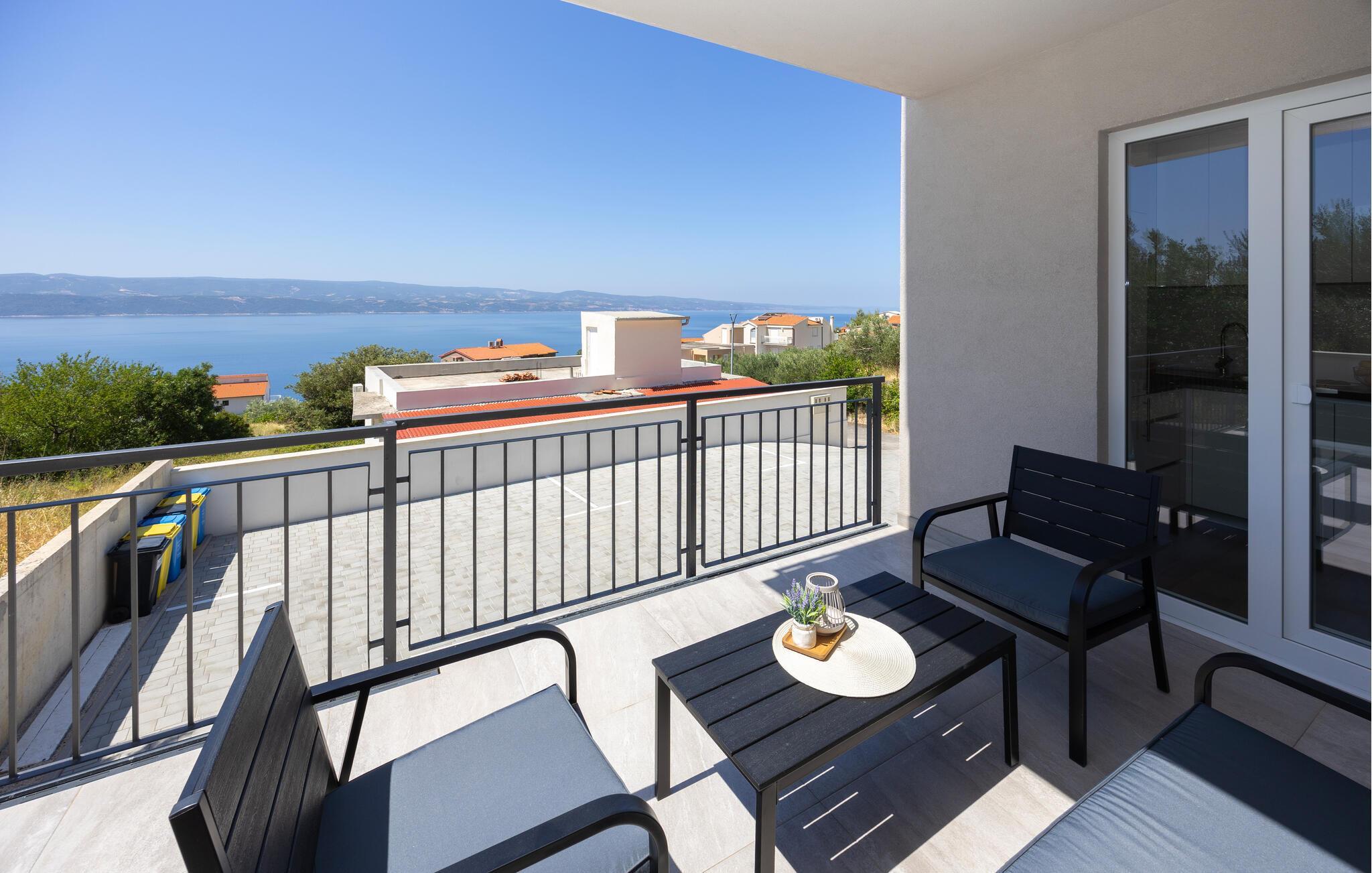 Verbringen Sie erholsame Urlaubstage in dieser stilvollen Ferienwohnung mit herrlichem Blick aufs Meer.