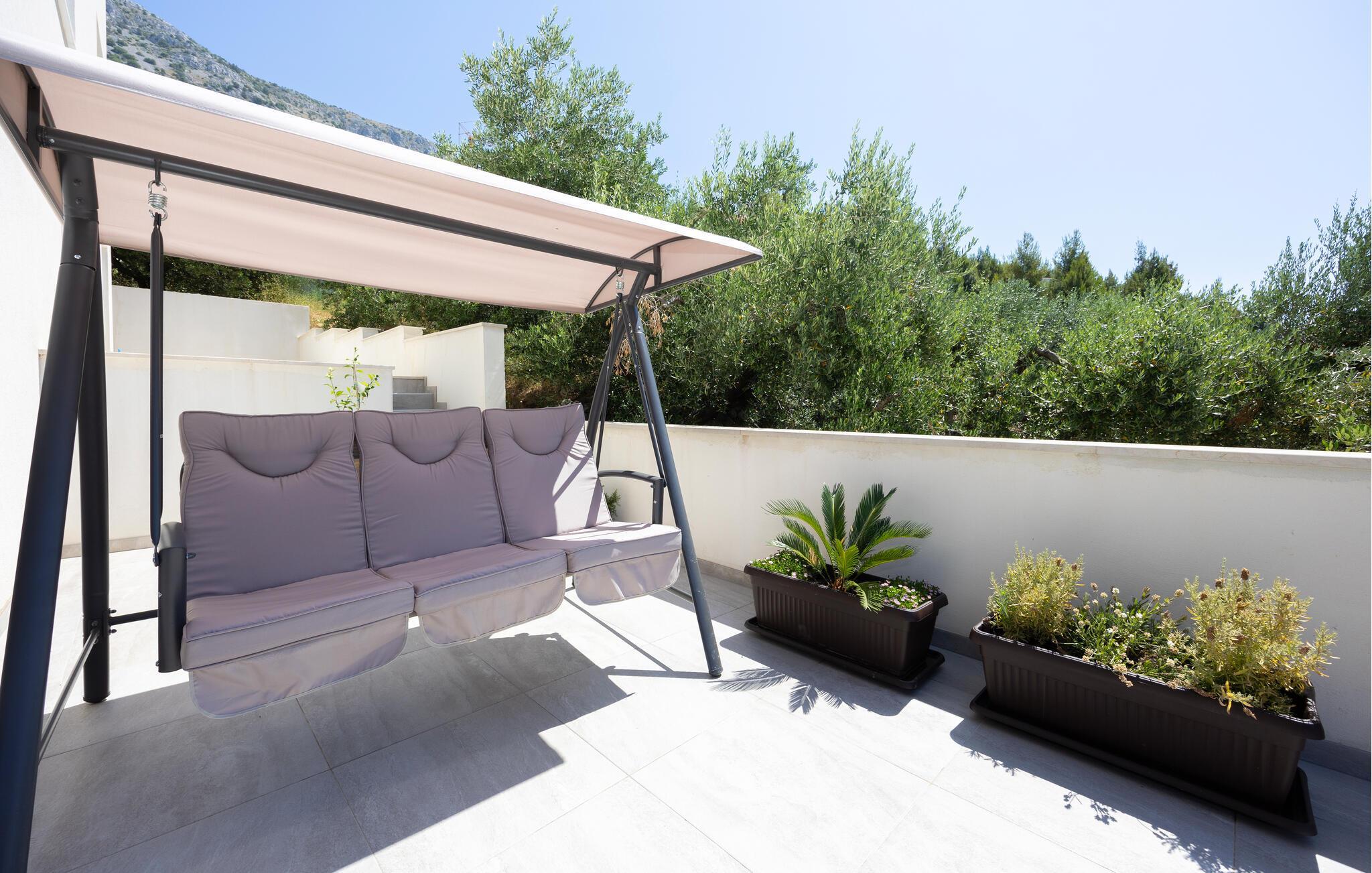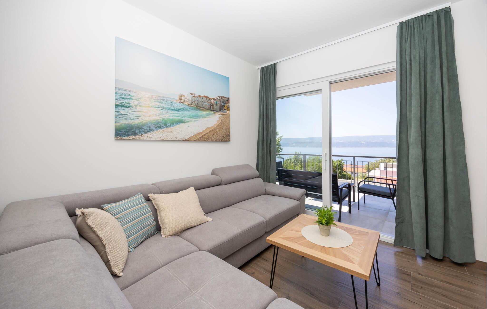 Nutzen Sie die Umgebung für abwechslungsreiche Urlaubsausflüge. Besuchen Sie die Altstadt von Omiš mit ihren Festungen und unternehmen Sie eine Bootstour durch die Cetina-Schlucht. Genießen Sie das mediterrane Flair der dalmatinischen Küste, entdecken Sie versteckte Buchten oder kosten Sie lokale Spezialitäten in den umliegenden Konobas.