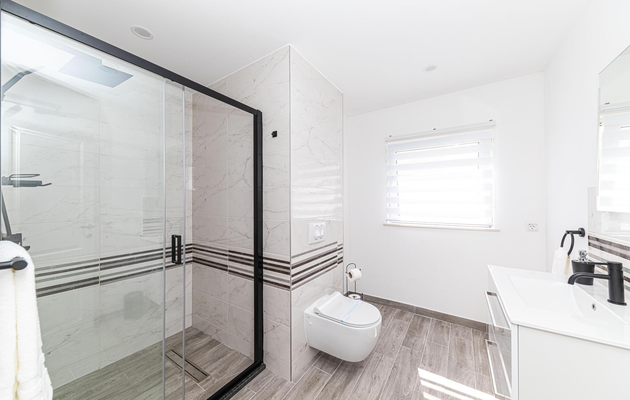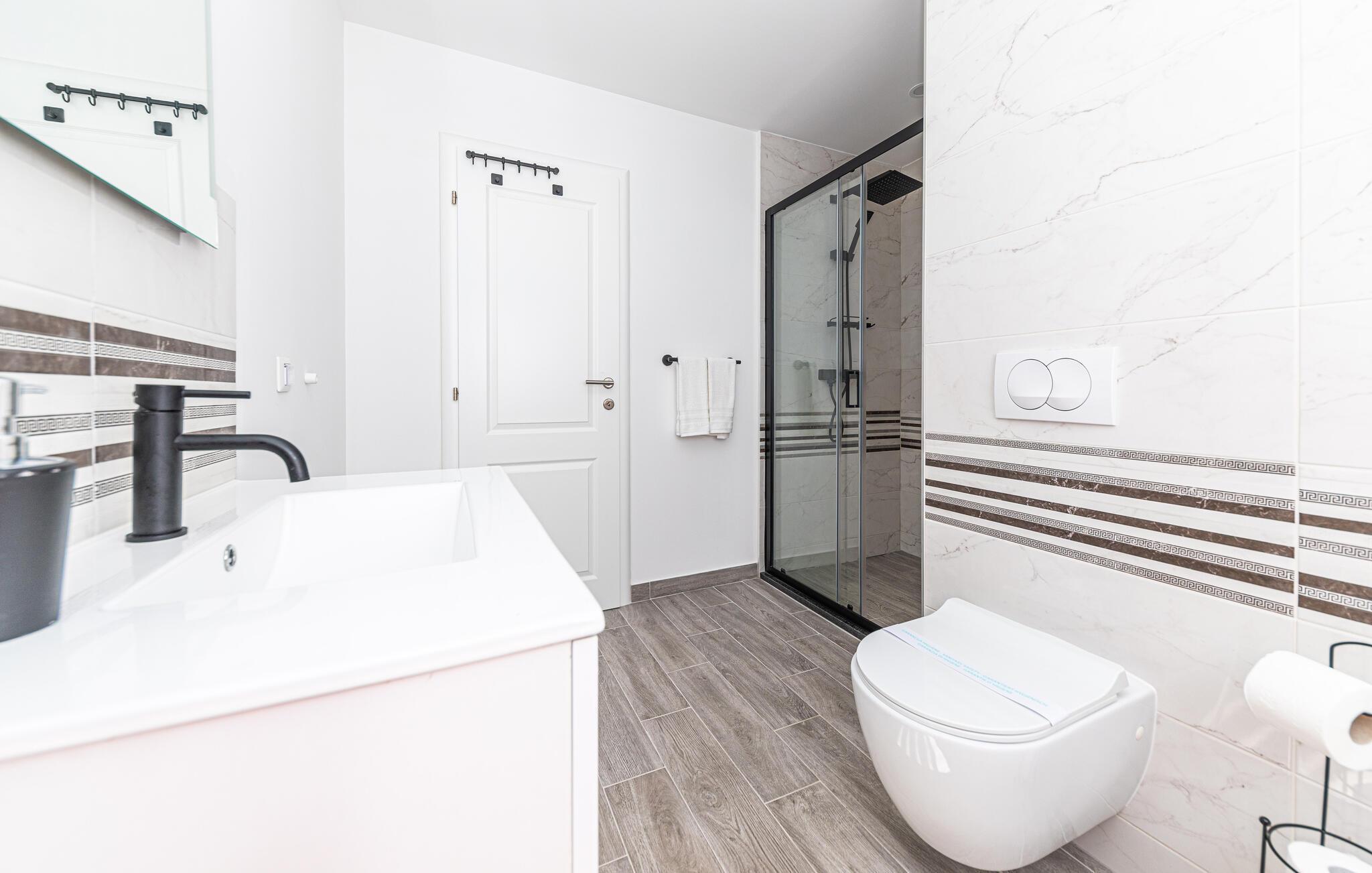 Badezimmer 8m2 (nr. 1) - WC. Warmes und kaltes Wasser. Handdusche