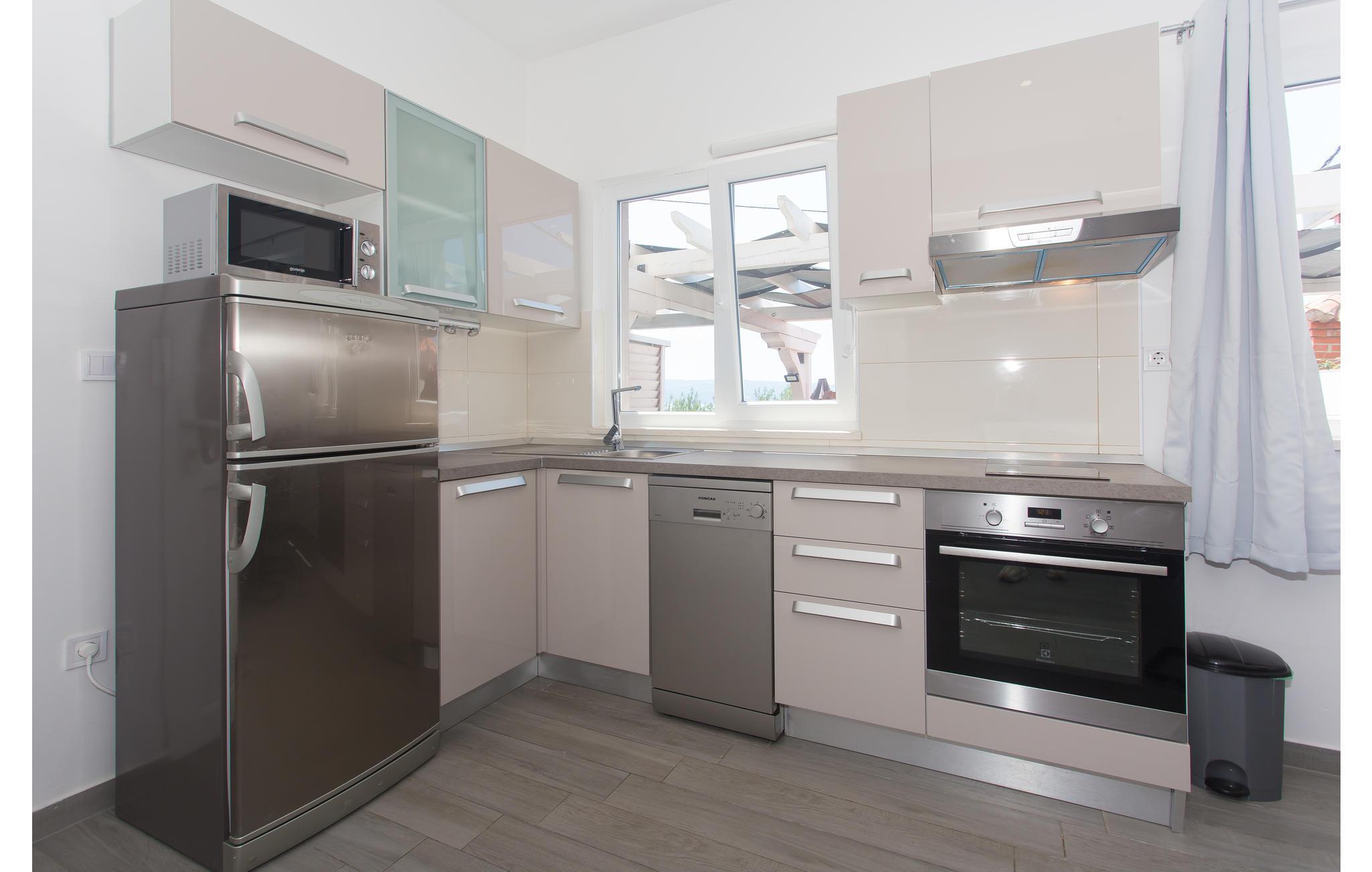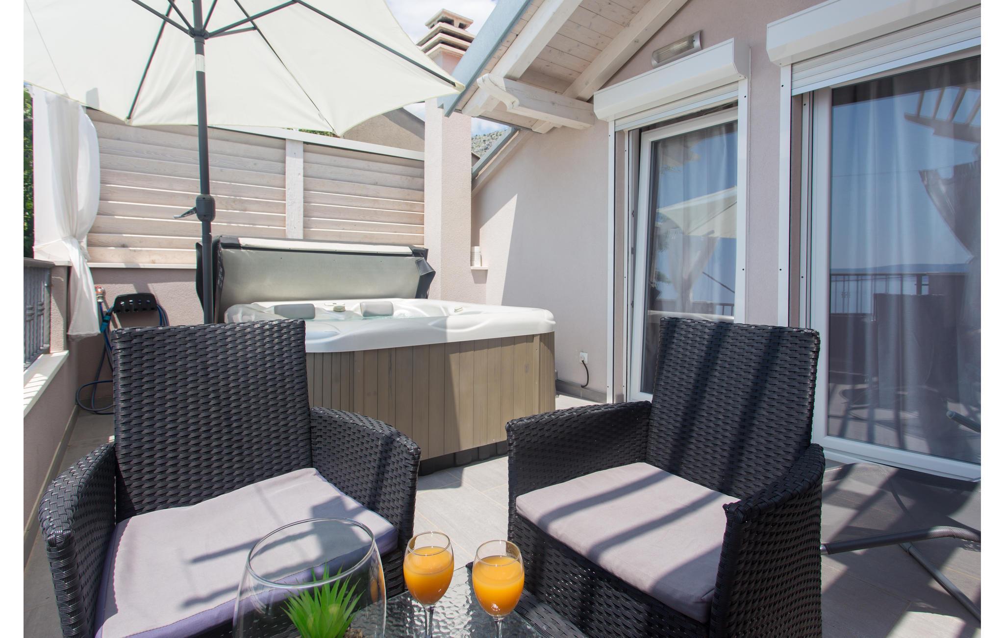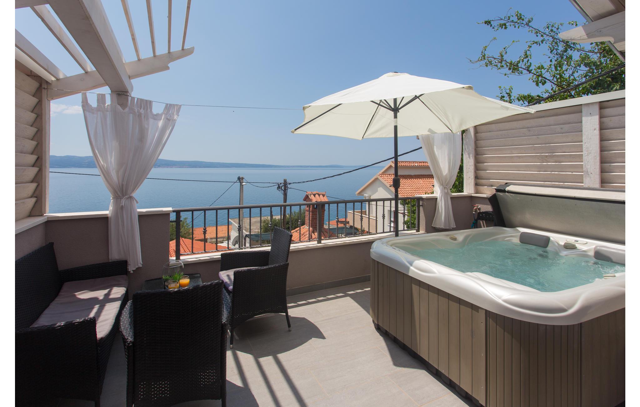 Verbringen Sie einen angenehmen Urlaub in diesem charmanten Ferienhaus unvergesslichem Panoramablick und Whirlpool auf der Terrasse. Es besteht aus zwei Etagen, die geschmackvoll eingerichtet sind. Im Dachgeschoss geht die Dachschräge auf 160 cm. Im Erdgeschoß ist eine geräumige Terrasse mit Grill. Besuchen Sie den herrlichen Kiesstrand in der Nähe und genießen Sie das kristallklare, türkisfarbene Meer. Kosten Sie die hervorragende Küche und schlendern Sie durch die engen Gassen im Altstadtkern von Omiš, wo es schöne Kirchen, Souvenirshops und eine eindrucksvolle Architektur gibt.