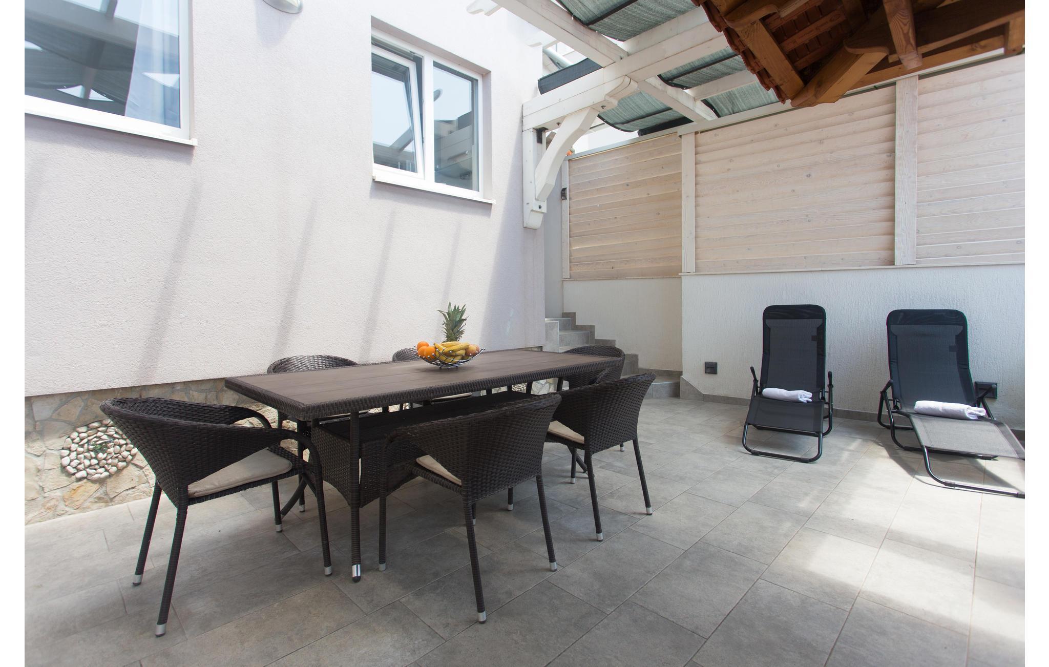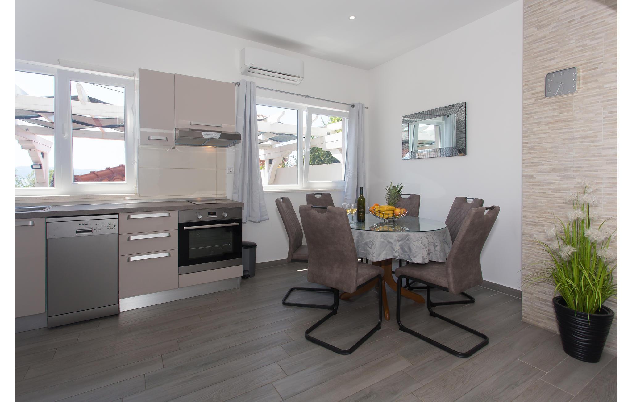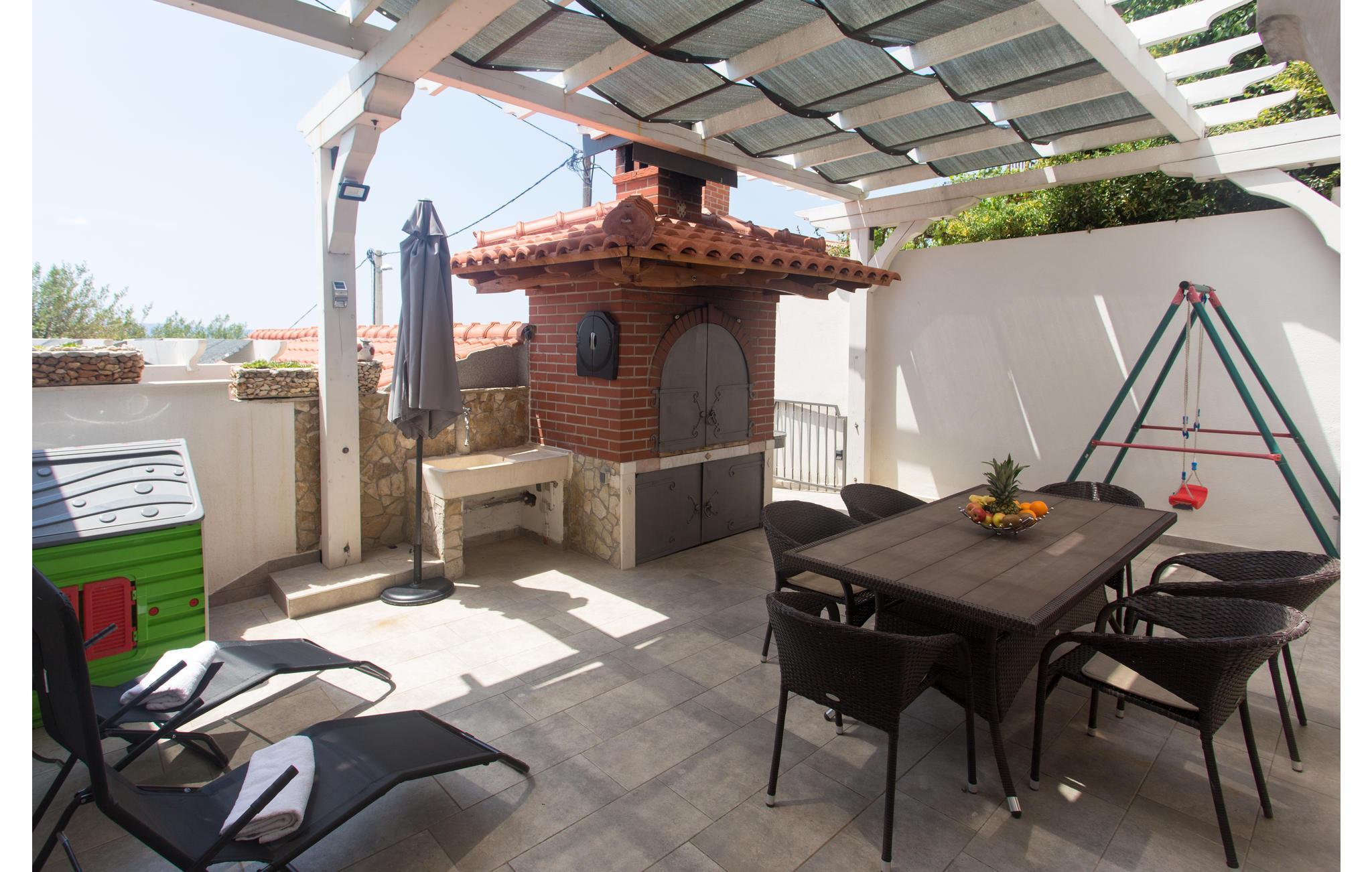 Verbringen Sie einen angenehmen Urlaub in diesem charmanten Ferienhaus unvergesslichem Panoramablick und Whirlpool auf der Terrasse. Es besteht aus zwei Etagen, die geschmackvoll eingerichtet sind. Im Dachgeschoss geht die Dachschräge auf 160 cm. Im Erdgeschoß ist eine geräumige Terrasse mit Grill. Besuchen Sie den herrlichen Kiesstrand in der Nähe und genießen Sie das kristallklare, türkisfarbene Meer. Kosten Sie die hervorragende Küche und schlendern Sie durch die engen Gassen im Altstadtkern von Omiš, wo es schöne Kirchen, Souvenirshops und eine eindrucksvolle Architektur gibt.