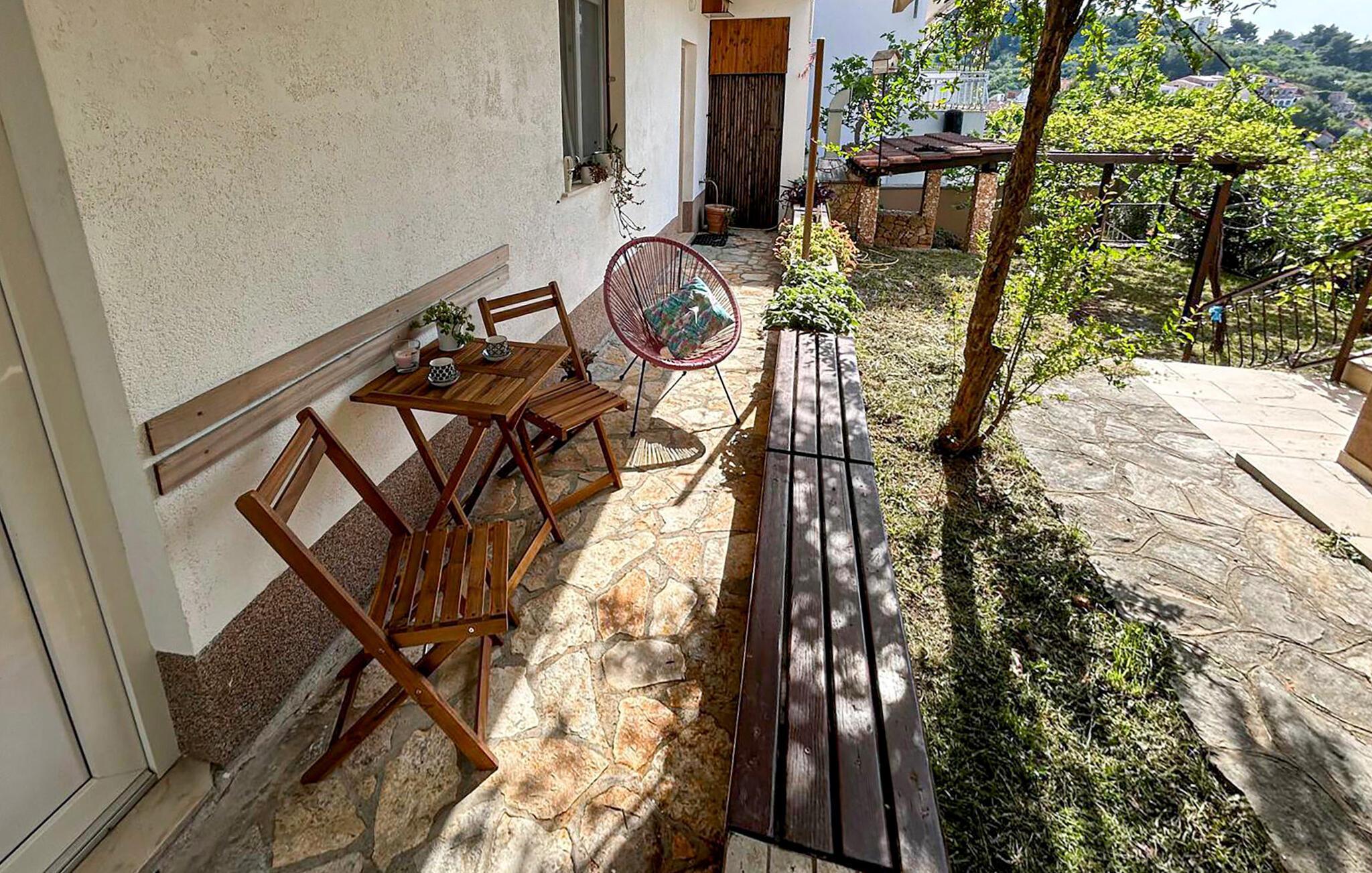 Die?Wohnung?begrüßt?ihre?Gäste?im?Erdgeschoss?eines Hauses.?Mit?ihrer wohnlichen und?ansprechenden?Einrichtung?ist?sie?der ideale?Ort?für?einen?erholsamen?Urlaub?zu?jeder?Jahreszeit. Dank der Klimaanlage genießen Sie hier auch in heißen Sommern angenehme Raumtemperaturen.?