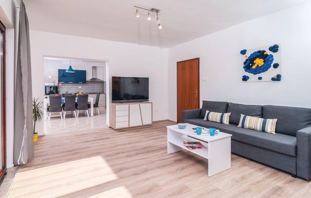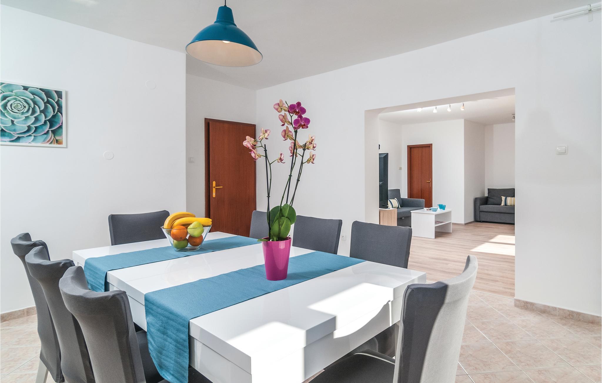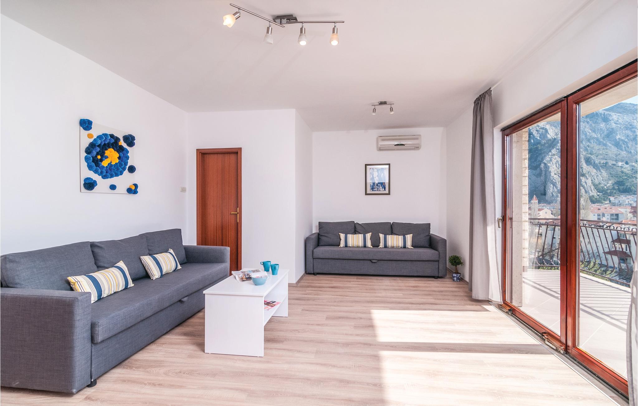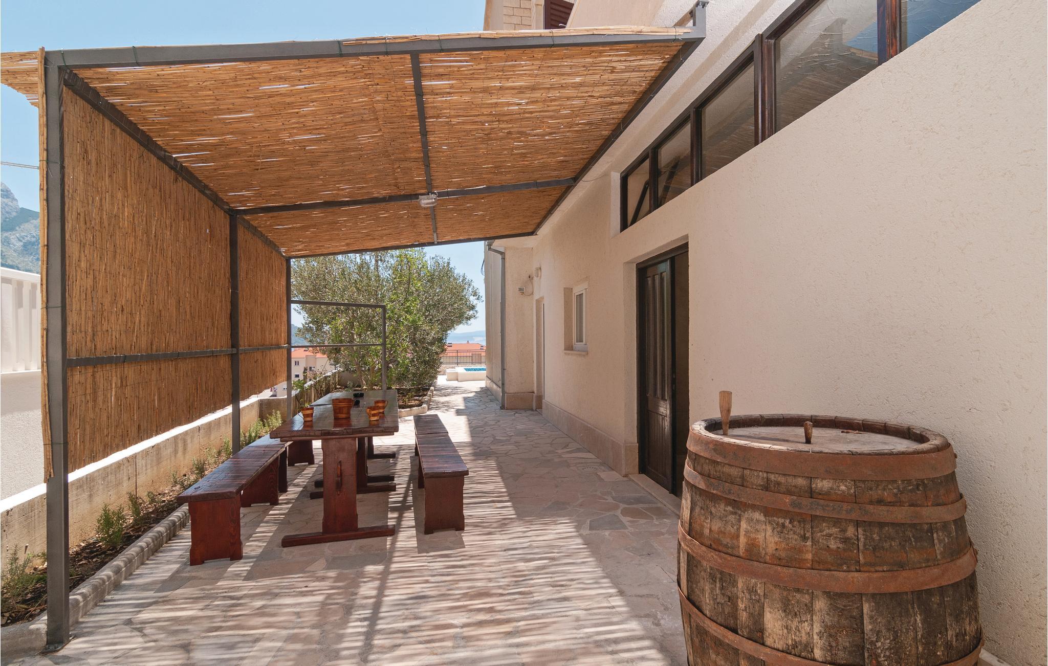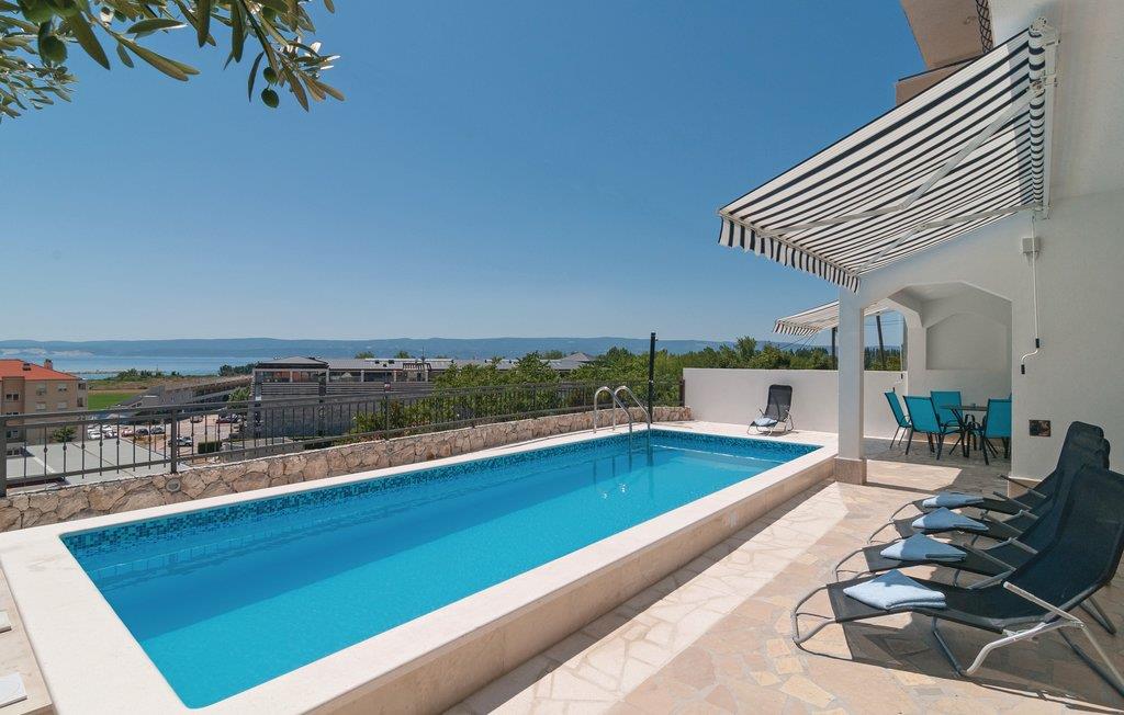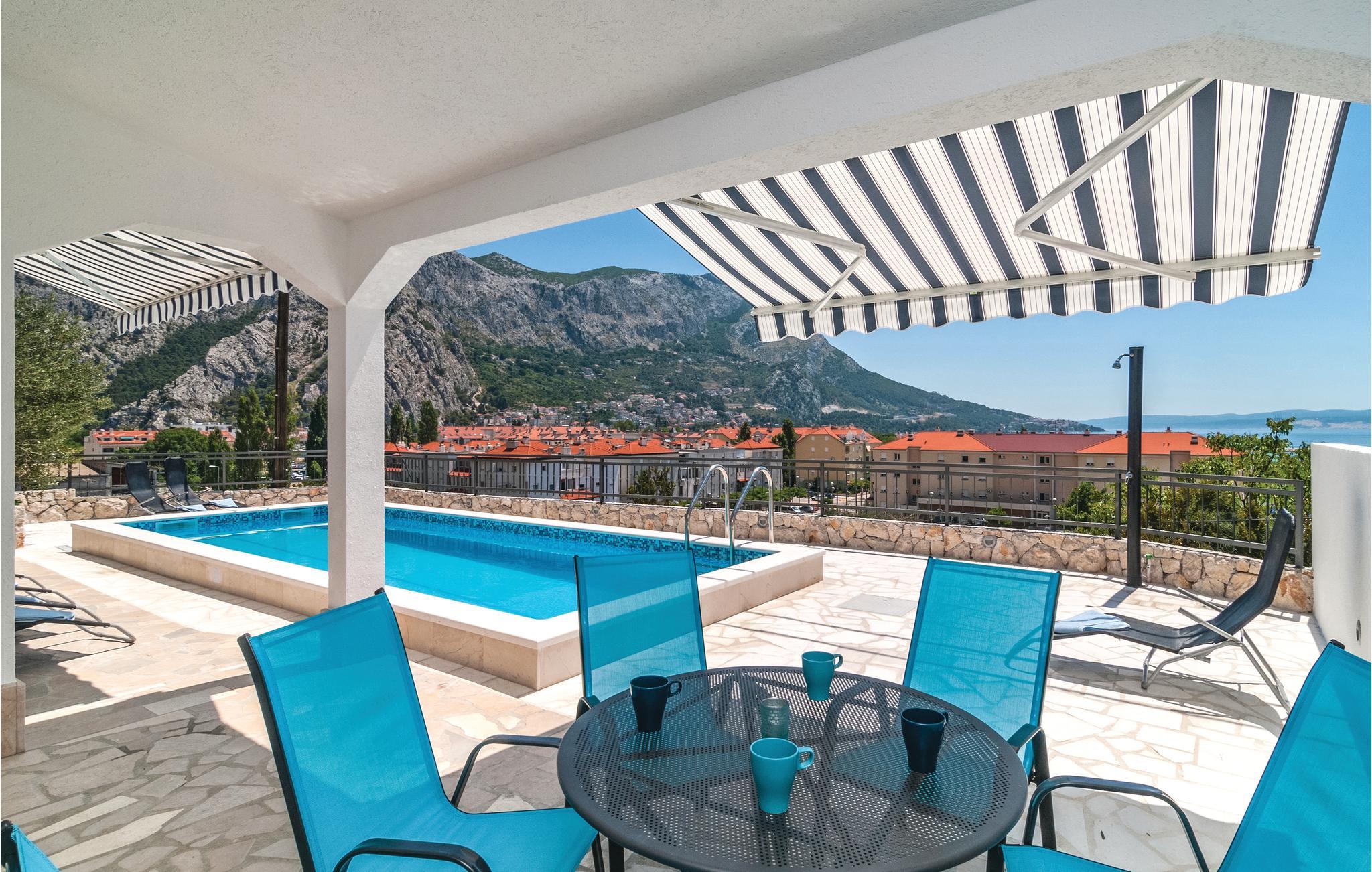 Dieses geschmackvoll eingerichtete Doppelhaus mit Swimmingpool liegt auf einem hügeligen Gelände, vom dem sich eine schöne Aussicht auf das Meer und die Stadt Omiš bietet. Vom Parkplatz gelangen Sie direkt in den ersten Stock mit Küche und Wohnzimmer, zwei Schlafzimmern und zwei Bädern und über Innentreppen gelangen Sie in den zweiten Stock mit drei Schlafzimmern und zwei Bädern. Außentreppen führen in das Erdgeschoss mit einer großen Küche und Wohnzimmer mit Ausgang zur überdachten Terrasse und Poolbereich. Dieses Domizil ist ideal für mehrere Familien oder eine Gruppe von. Die Stadt Omiš verfügt über Sand- und Kiesstrände und wird vom Fluss, Inseln, Berge und dem Meer umgeben, weshalb viele Aktivitätsmöglichkeiten geboten werden. Verpassen Sie nicht Rafting auf dem Fluss Cetina, das für alle Abenteurer eine besondere Attraktion ist.