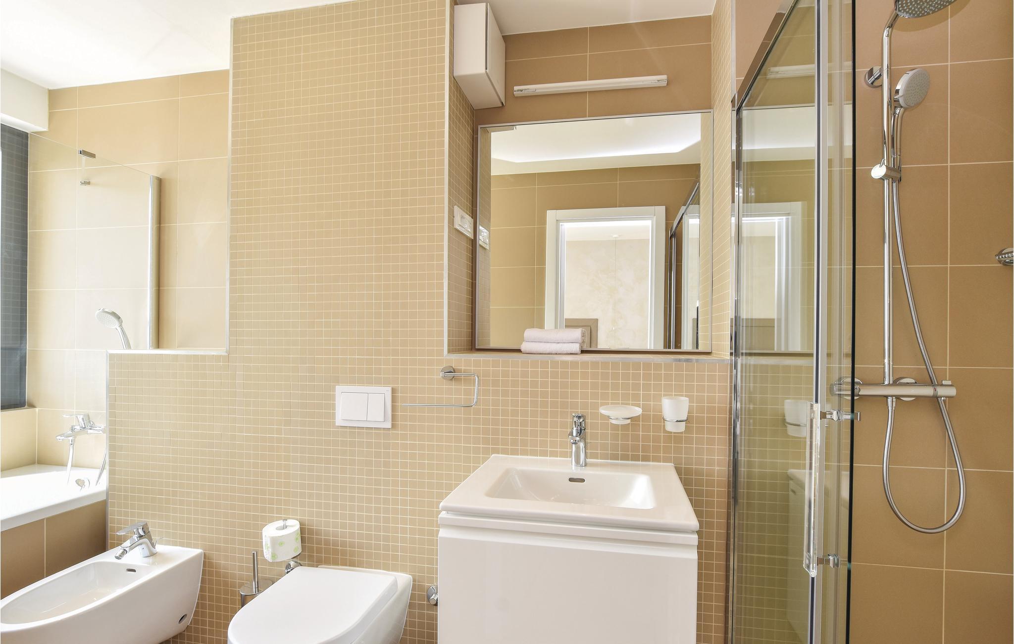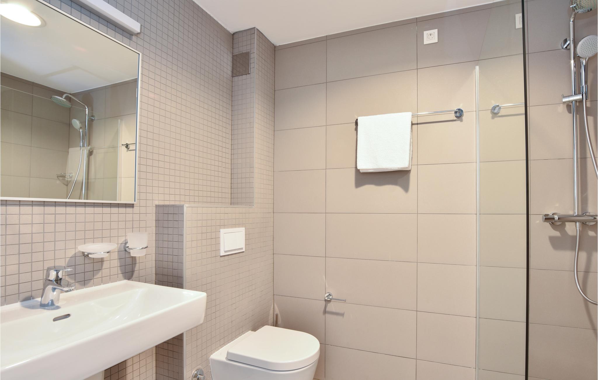 - WC mit warmem und kaltem Wasser, Dusche und Badewanne