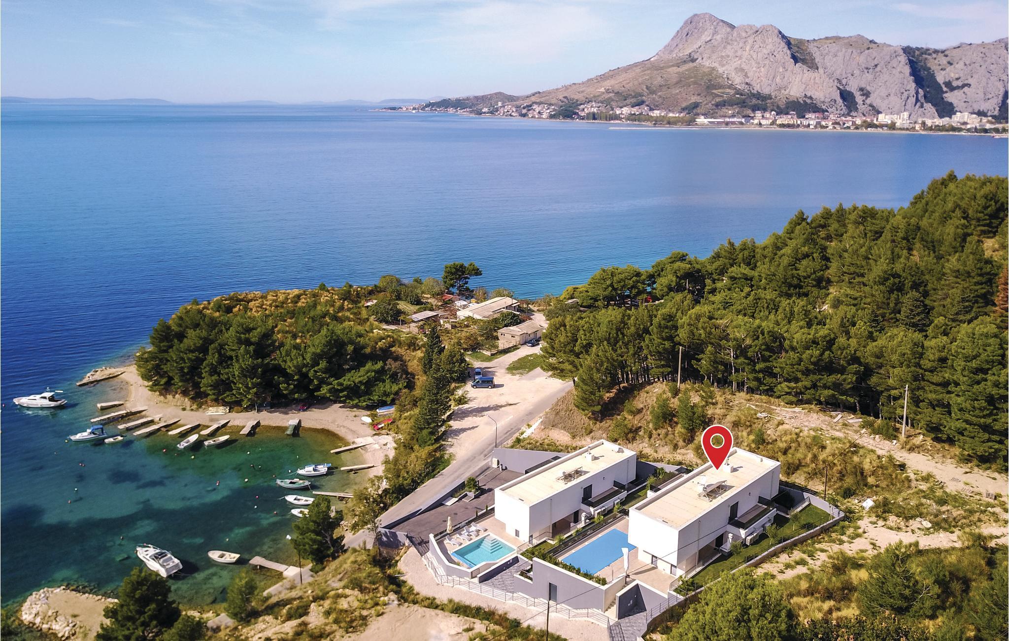 In der ersten Reihe zum Meer steht diese faszinierende Villa mit Pool. Sie bietet Komfort durch fünf Schlafzimmer, wovon ein Badezimmer „en Suite“ haben. Das Interieur ist gepflegt und von hoher Qualität. Der wunderschöne Panoramablick bietet sich durch die Glasswände des Innenbereichs und von der Poolterrasse. Genießen Sie Ihren Urlaub an diesem magischen Ort, an der Mündung des Flusses Cetina, mit den Bergen auf der einen und den schönen Sand- und Kiesstränden auf der anderen Seite. Die reiche Kulturgeschichte der Altstadt von Omis sowie zahlreiche Restaurants mit einem breiten gastronomischen Angebot haben die Herzen vieler Besucher gewonnen, die immer wieder kommen wollen.