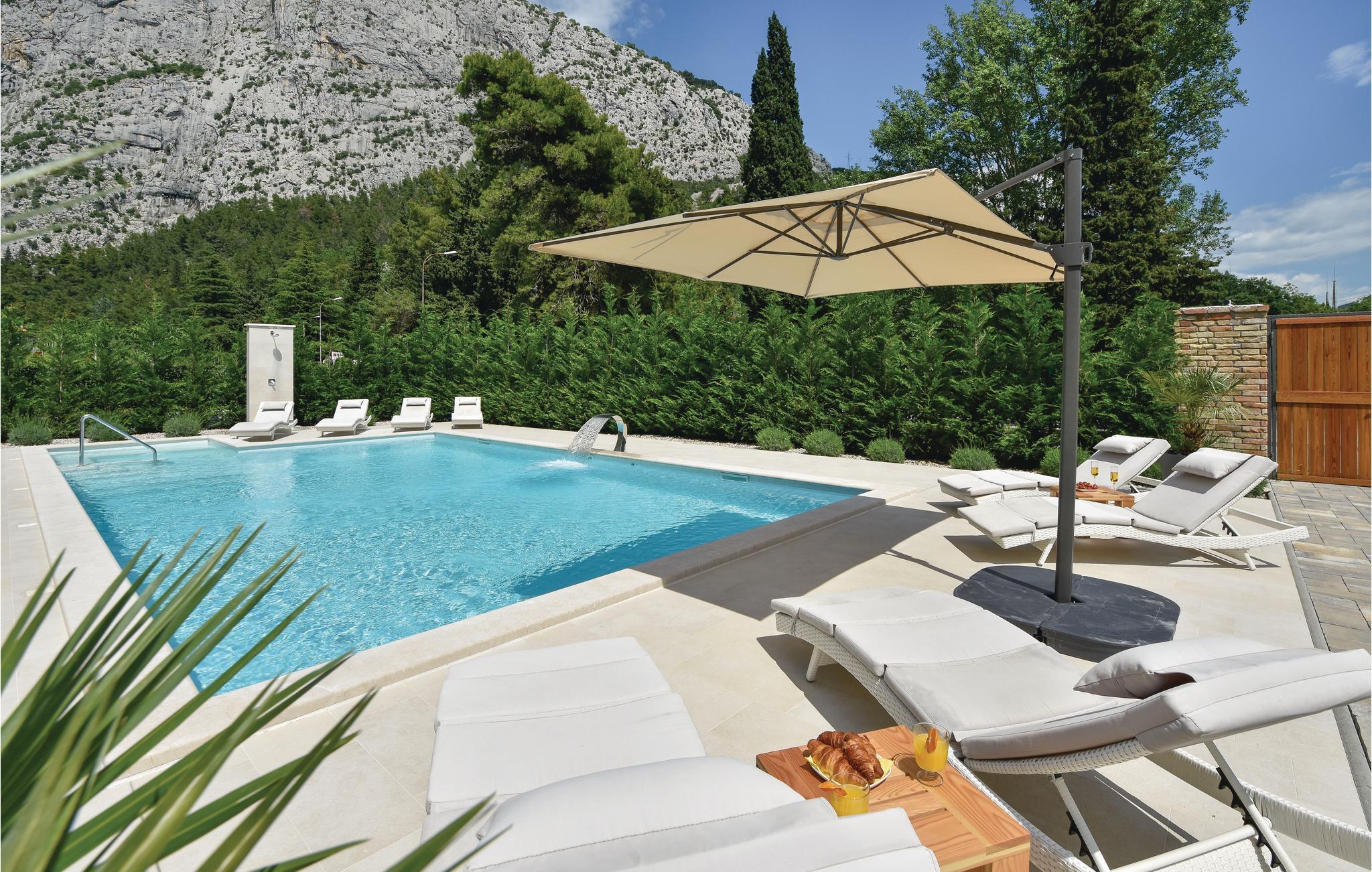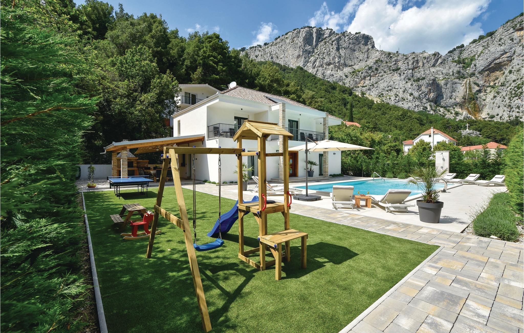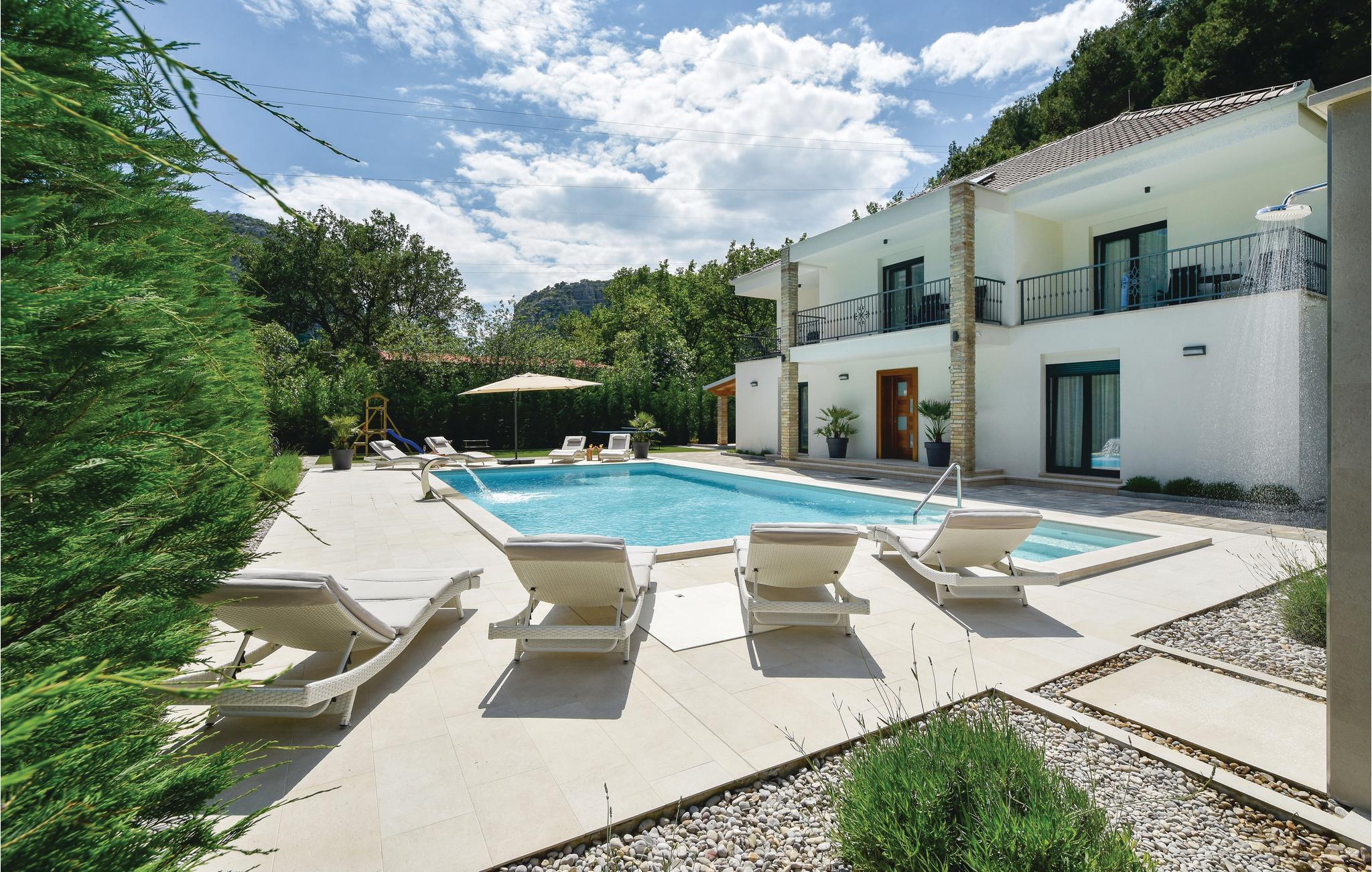 Eine Kombination von Tradition mit einem Hauch von Luxus in der Ferienvilla ist die richtige Beschreibung für dieses Haus mit großem Außenpool. Es liegt an der Flussmündung Cetina, in der Stadt Omiš, in ruhiger Umgebung. Das meernahe Flussklima ist sehr gesund für den menschlichen Organismus. Genießen Sie das große, umzäunte Grundstück mit geschmackvoll angelegtem Garten und angebotener Unterhaltung. Im Erdgeschoß liegen die gut ausgestattete Küche, das geräumige Wohnzimmer, sowie der Mini-Wellness Bereich, wo Sie in der Sauna entspannen können. Innentreppen führen Sie zum Schlafbereich im ersten Stock. Sie erreichen einfach den lokalen, langen Sandstrand und den Altstadtkern, wo Sie verschiedene Spezialitäten in den Restaurants kosten können. Liebhaber von den Adrenalinsportarten Rafting, Zipline und Bergwandern sind hier an richtiger Stelle und der nette Hauseigentümer kann Ihnen bei der Organisation helfen.