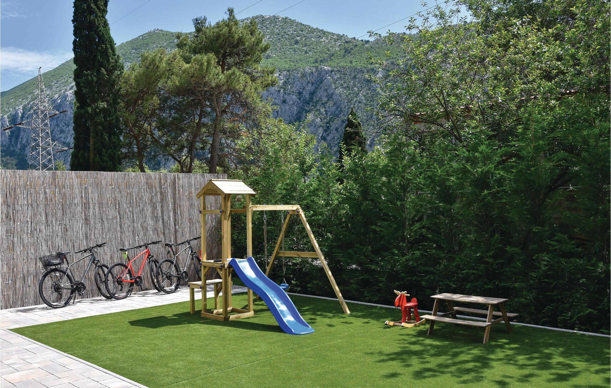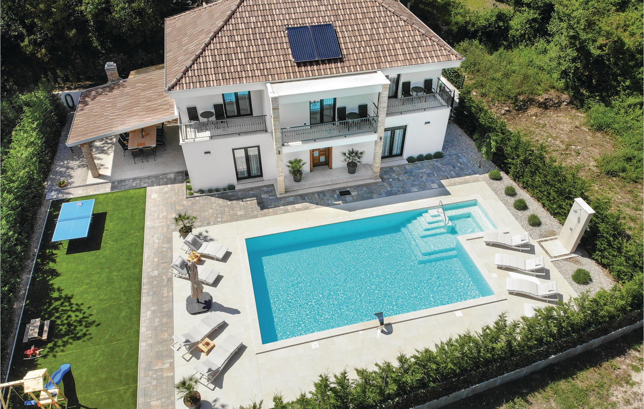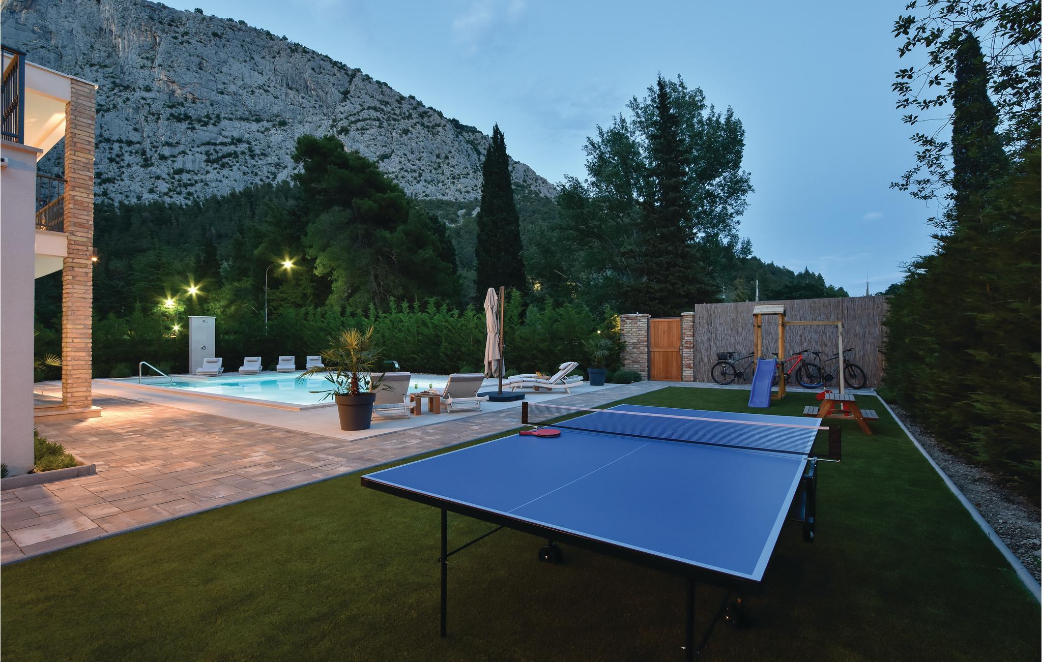 Eine Kombination von Tradition mit einem Hauch von Luxus in der Ferienvilla ist die richtige Beschreibung für dieses Haus mit großem Außenpool. Es liegt an der Flussmündung Cetina, in der Stadt Omiš, in ruhiger Umgebung. Das meernahe Flussklima ist sehr gesund für den menschlichen Organismus. Genießen Sie das große, umzäunte Grundstück mit geschmackvoll angelegtem Garten und angebotener Unterhaltung. Im Erdgeschoß liegen die gut ausgestattete Küche, das geräumige Wohnzimmer, sowie der Mini-Wellness Bereich, wo Sie in der Sauna entspannen können. Innentreppen führen Sie zum Schlafbereich im ersten Stock. Sie erreichen einfach den lokalen, langen Sandstrand und den Altstadtkern, wo Sie verschiedene Spezialitäten in den Restaurants kosten können. Liebhaber von den Adrenalinsportarten Rafting, Zipline und Bergwandern sind hier an richtiger Stelle und der nette Hauseigentümer kann Ihnen bei der Organisation helfen.