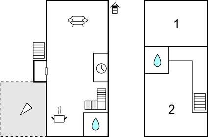 Badezimmer (nr. 2) - WC. Warmes und kaltes Wasser. Dusche