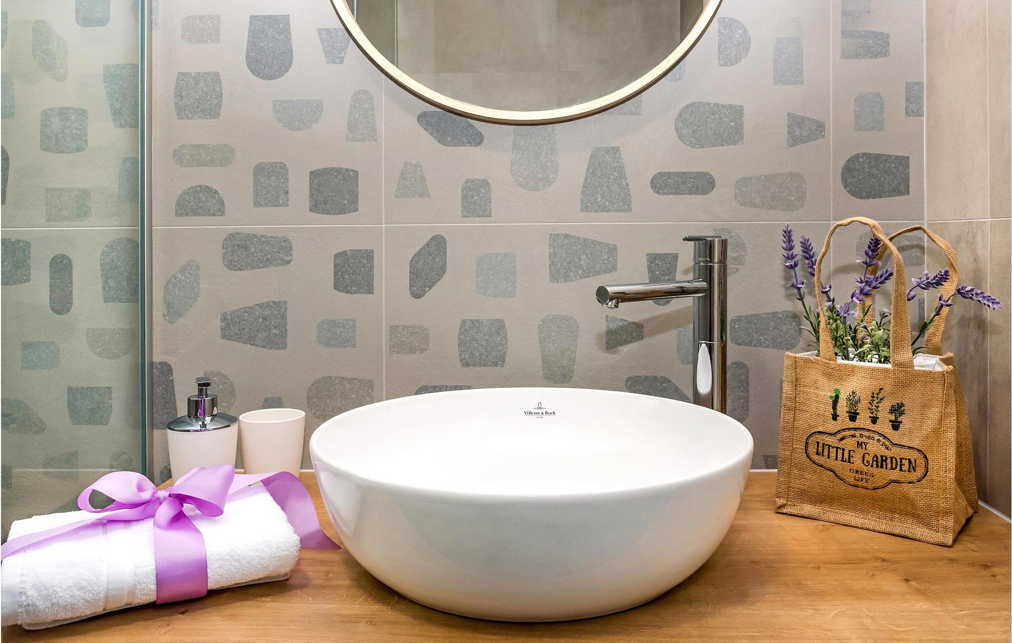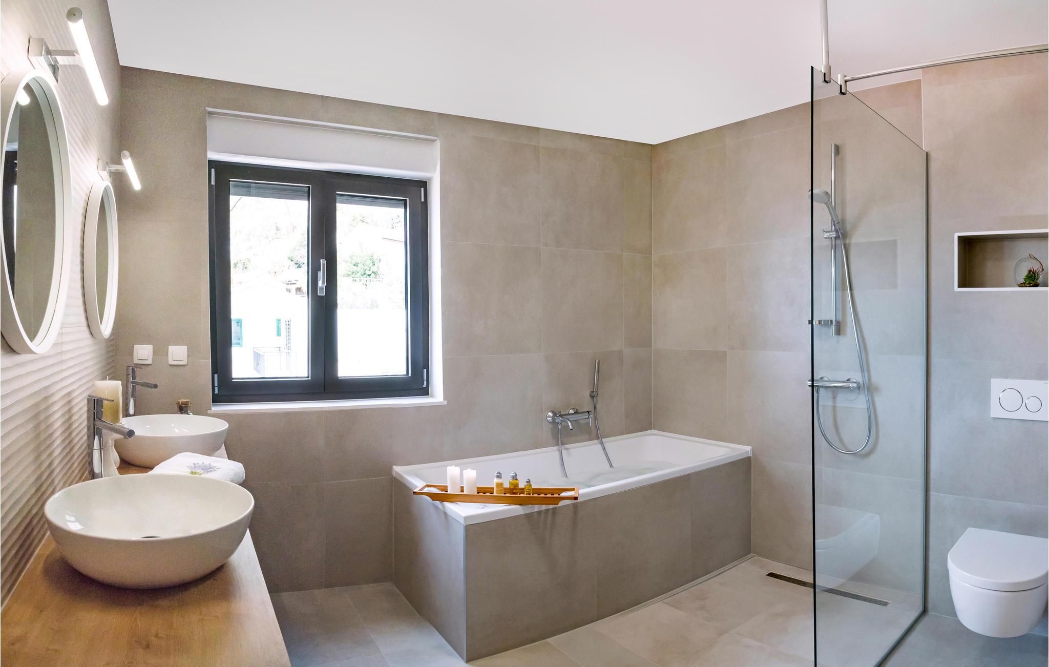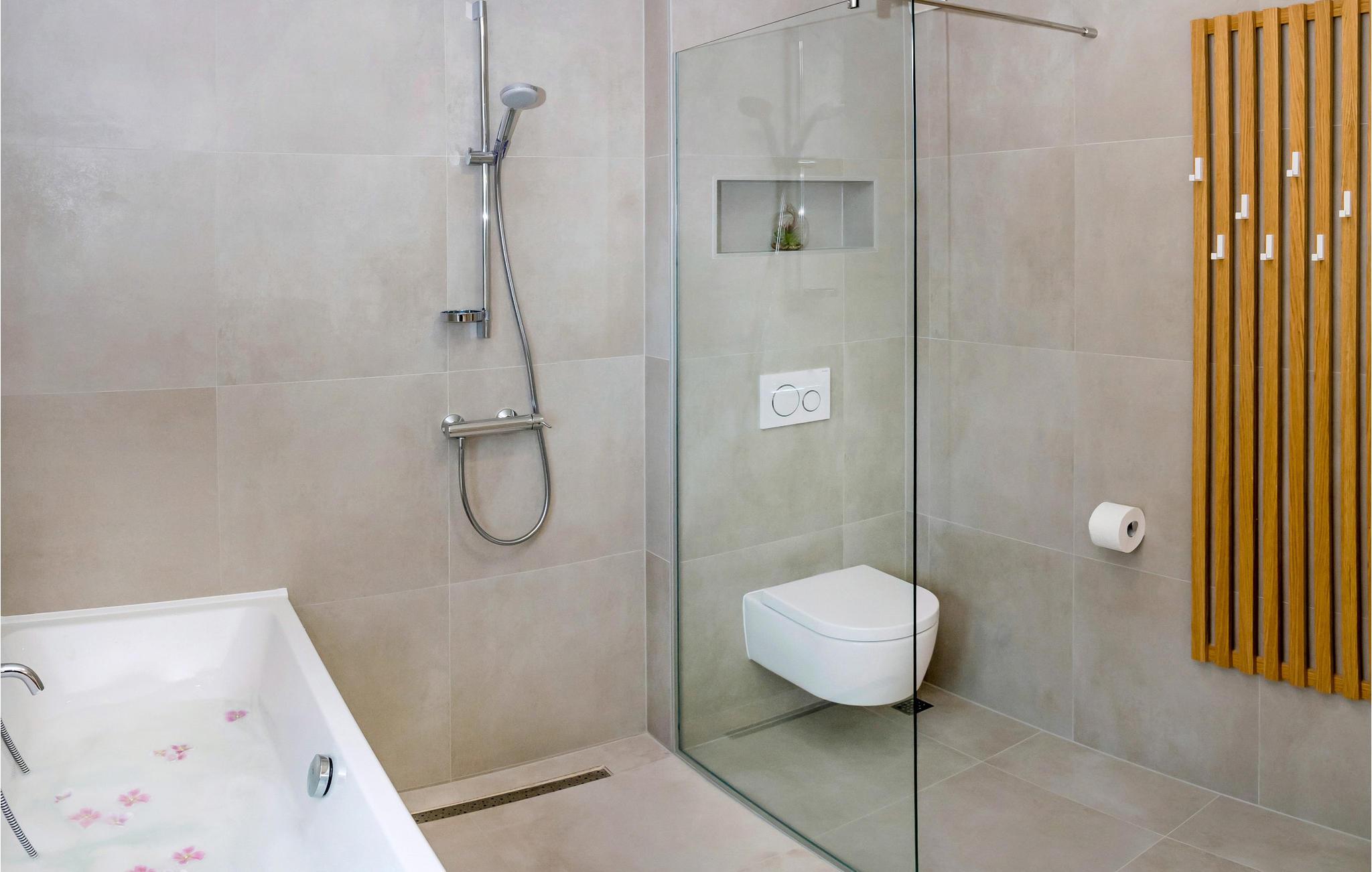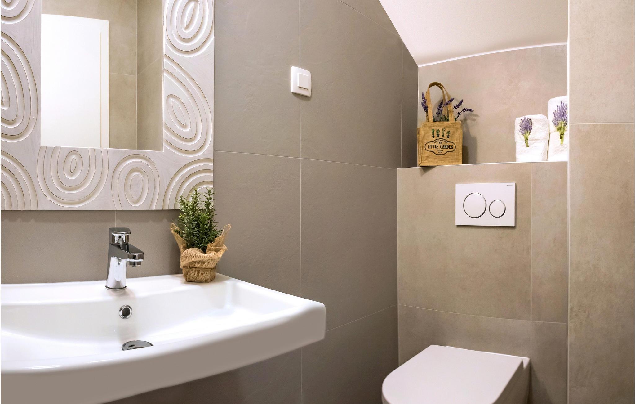 - WC mit warmem und kaltem Wasser, Handbrause und Badewanne