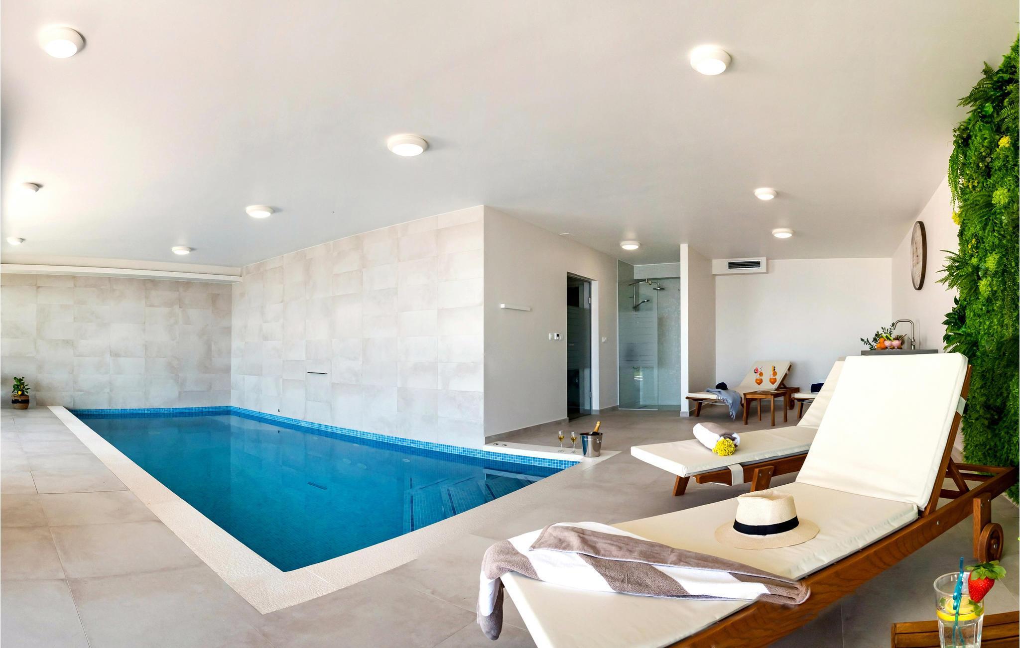 Freuen Sie sich auf den Urlaub in diesem luxuriösen Ferienhaus mit Innenpool und in bester Lage nahe dem Meer.