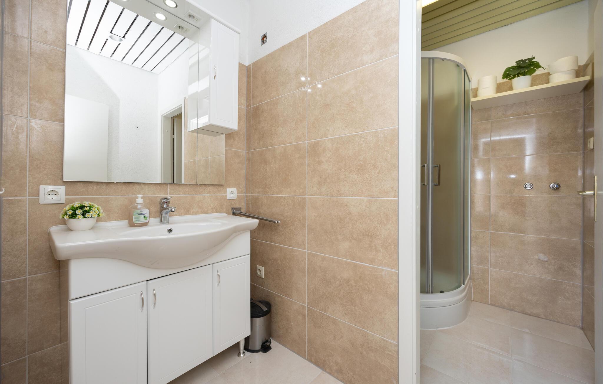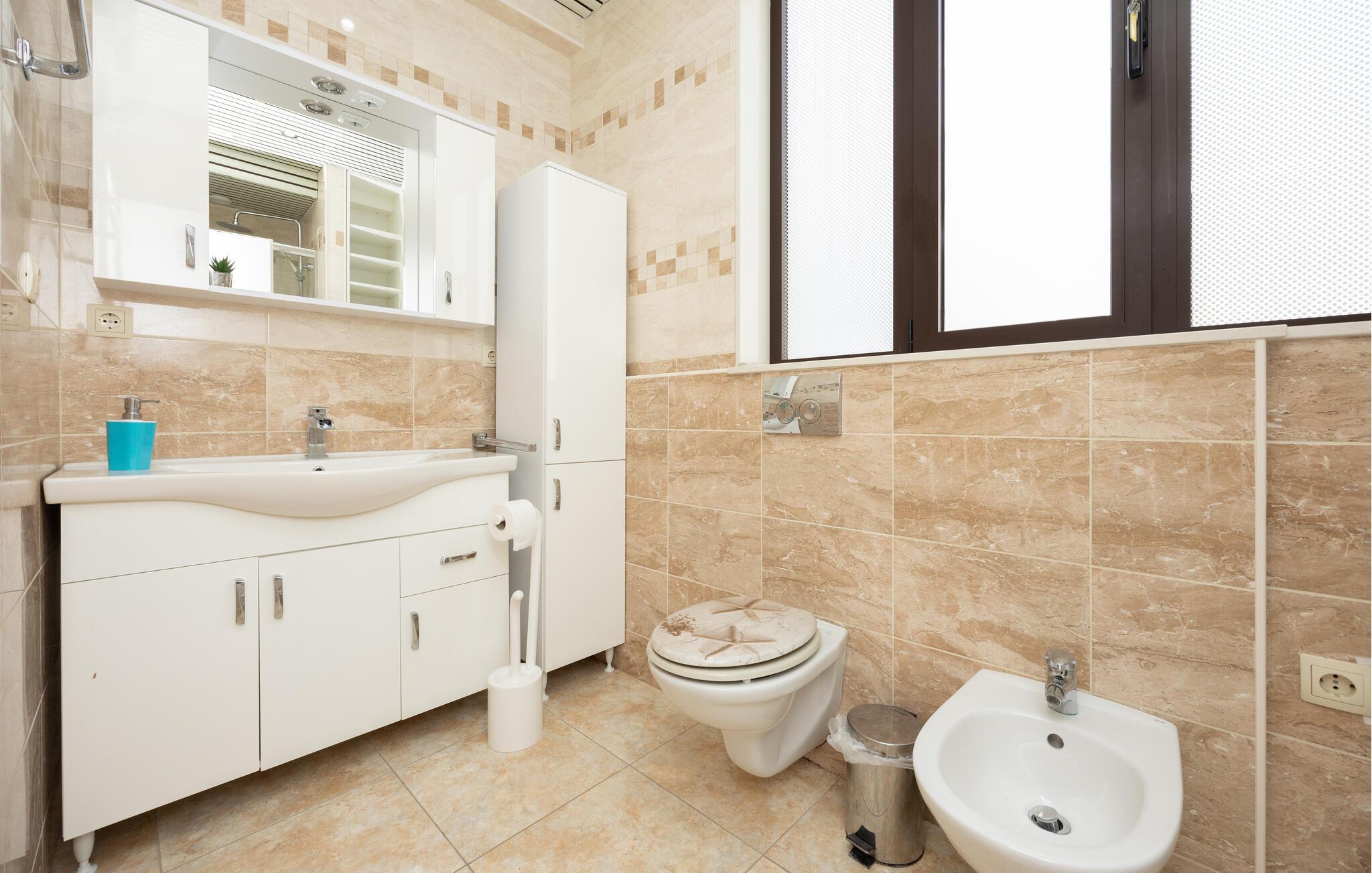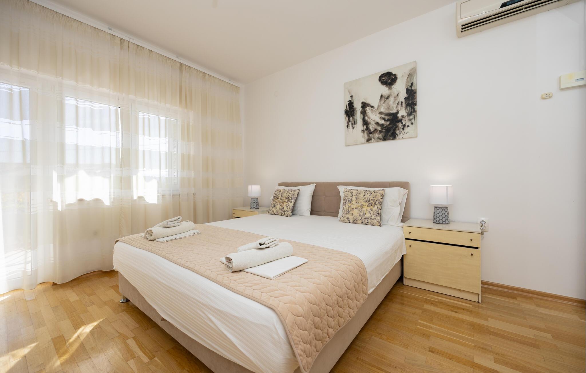 Ein gepflegtes, helles Ambiente empfängt Sie in dieser strandnahen Ferienwohnung, die Ihnen alles bietet, was Sie für einen entspannten Urlaub unter Kroatiens Sonne benötigen. Bereiten Sie in der gut ausgestatteten Küche gemeinsam Mahlzeiten zu und nutzen Sie den offenen Wohnbereich für gemütliche Momente in geselliger Runde.