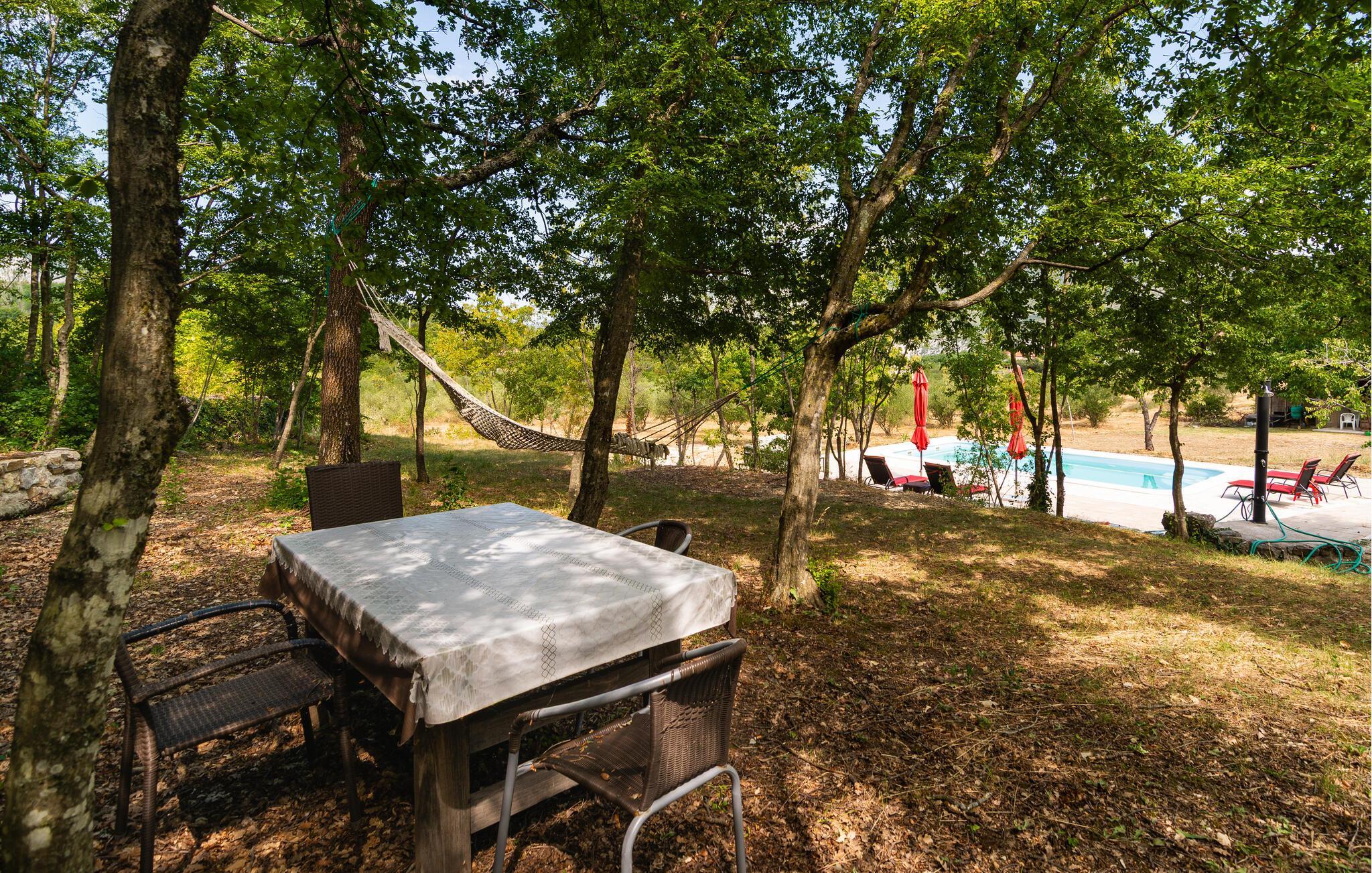 Genießen Sie im Freien die Sonne, der Pool bietet wohltuende Erfrischung an heißen Tagen, abends können Sie die ganze Familie mit zu einem leckeren Essen auf der Terrasse versammeln.