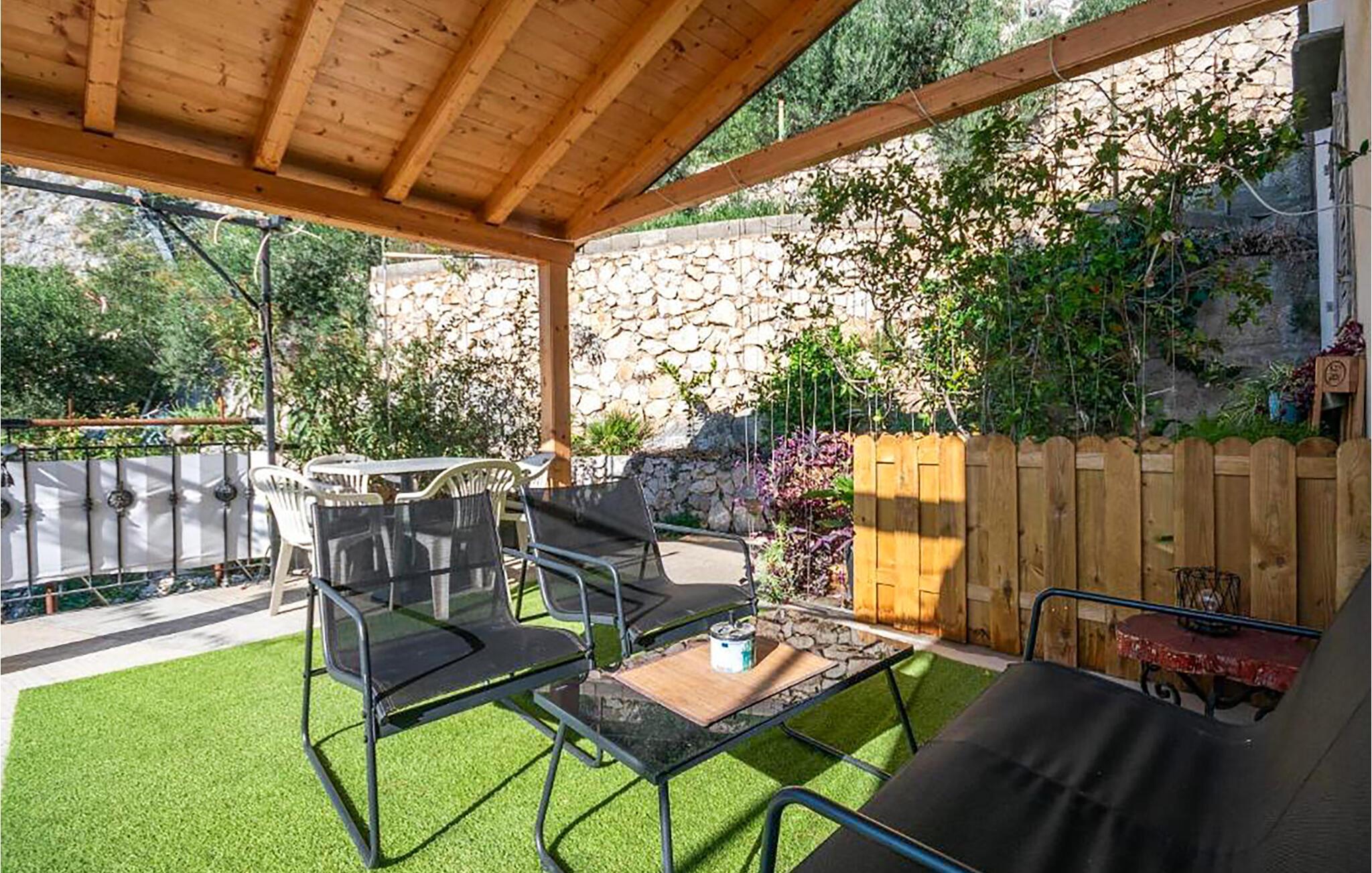 Genießen Sie erholsame Stunden auf der Terrasse, die von mediterranem Grün umgeben ist. Machen Sie es mit einem kühlen Getränk gemütlich und lassen Sie einfach die Seele baumeln. Der schattige Essbereich lädt zu entspannten Mahlzeiten im Freien ein: zum Frühstück in der Morgensonne oder zum Grillabend bei Kerzenschein.