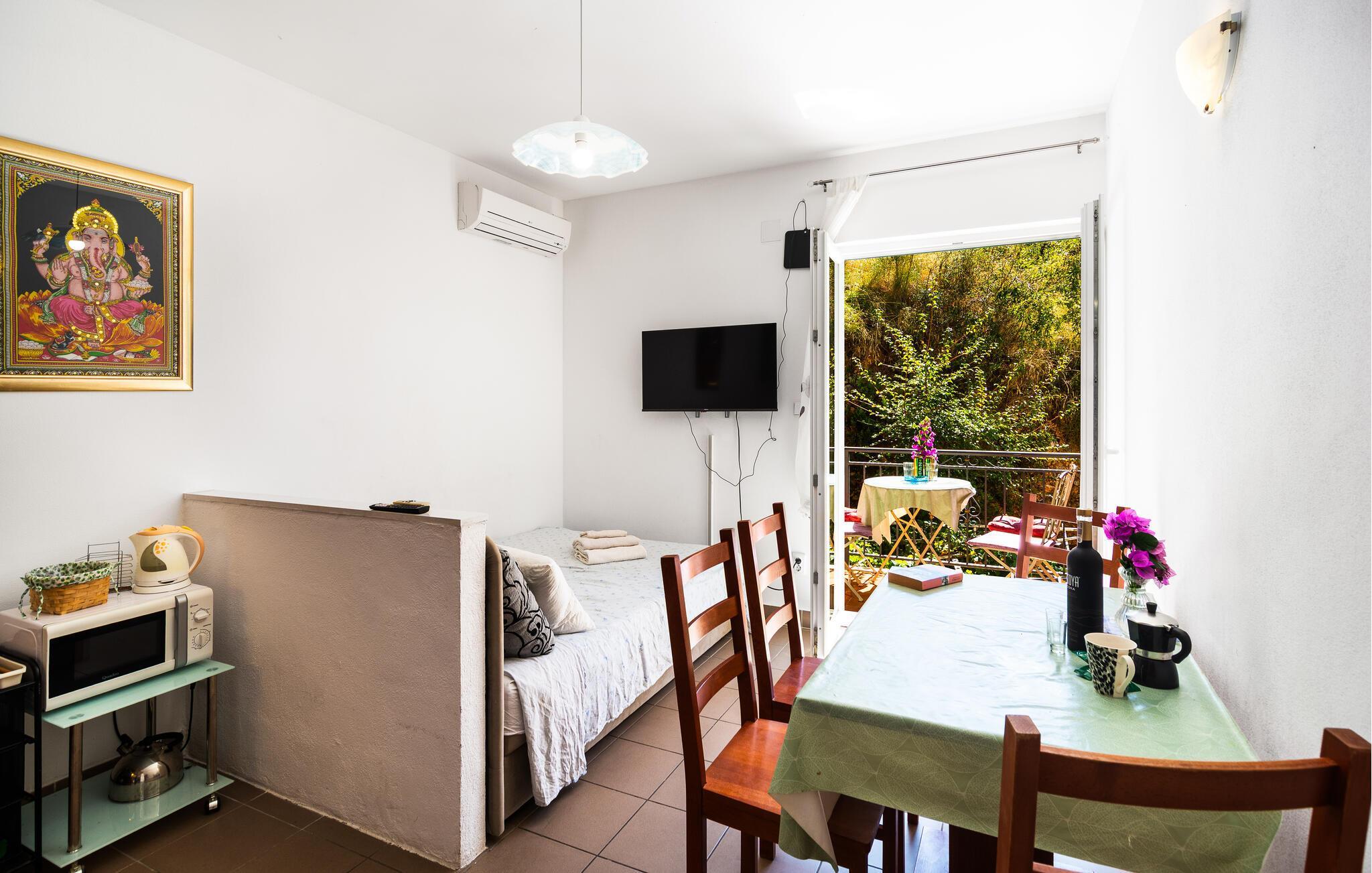 Treten Sie hinaus auf den Balkon und genießen Sie den Blick auf die Umgebung. Nehmen Sie am kleinen Tisch Platz, trinken Sie Ihren Morgenkaffee oder lassen Sie bei einem Glas Wein den Tag ausklingen.