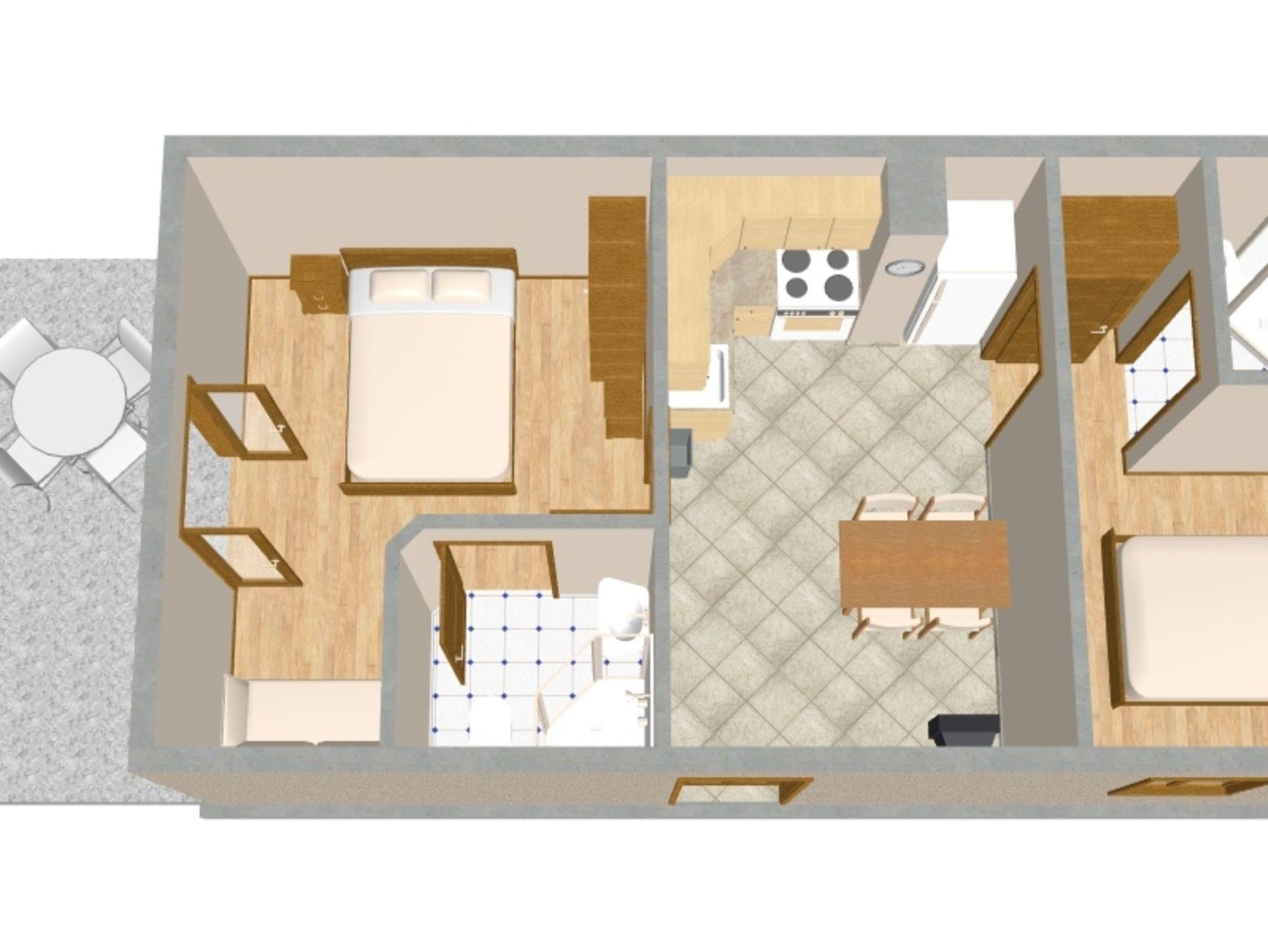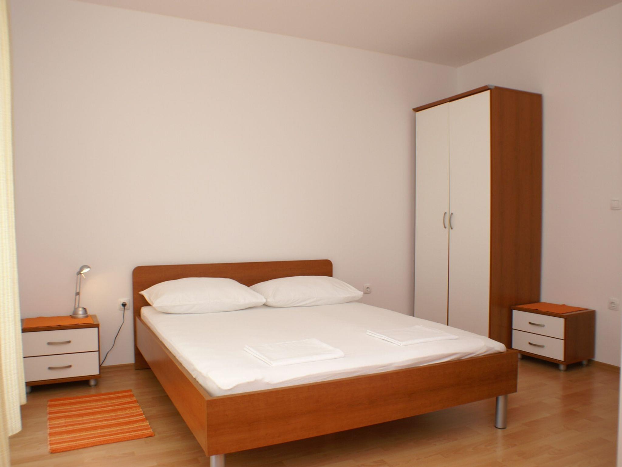 Ferienwohnung bietet Platz für 4 Gäste. Die Betten sind in Schlafzimmern, die es 2 gibt, innerhalb einer Gesamtfläche von 45m2, angeordnet. Die Gäste haben eine eigene Terrasse zur Verfügung, auf der sie in warmen Sommernächten genießen können. Das Apartment bietet Meerblick. Es ist erlaubt, Speisen auf dem Gemeinschafts-Grill vorzubereiten. Durch die Terrasse der gebuchten Unterkunftseinheit gehen auch andere Gäste oder Vermieter. IM PREIS INBEGRIFFEN: Kurtaxe, Endreinigung, Klimatisierung, Parkplatz, Internet. VERBINDLICHE ZUSÄTZLICHE KOSTEN: Aufzahlung für Kurzaufenthalte (prozentualer Zuschlag pro Nächtigungsanzahl: 30% - 1, 20% - 2, 10% - 3). UNVERBINDLICHE ZUSÄTZLICHE KOSTEN: 1 Bett für Kinder (5,00 € Person/Tag). Die Verfügbarkeit zusätzlicher Dienstleistungen in Ihrem reservierten Termin und die Preise derselben (falls nicht aufgeführt) müssen im Voraus überprüft werden. Zusätzliche Dienstleistungen die in der Zahlungsaufforderung nicht aufgeführt sind werden direkt beim Vermieter bezahlt, angenommen der Gast nutzt auch diese.