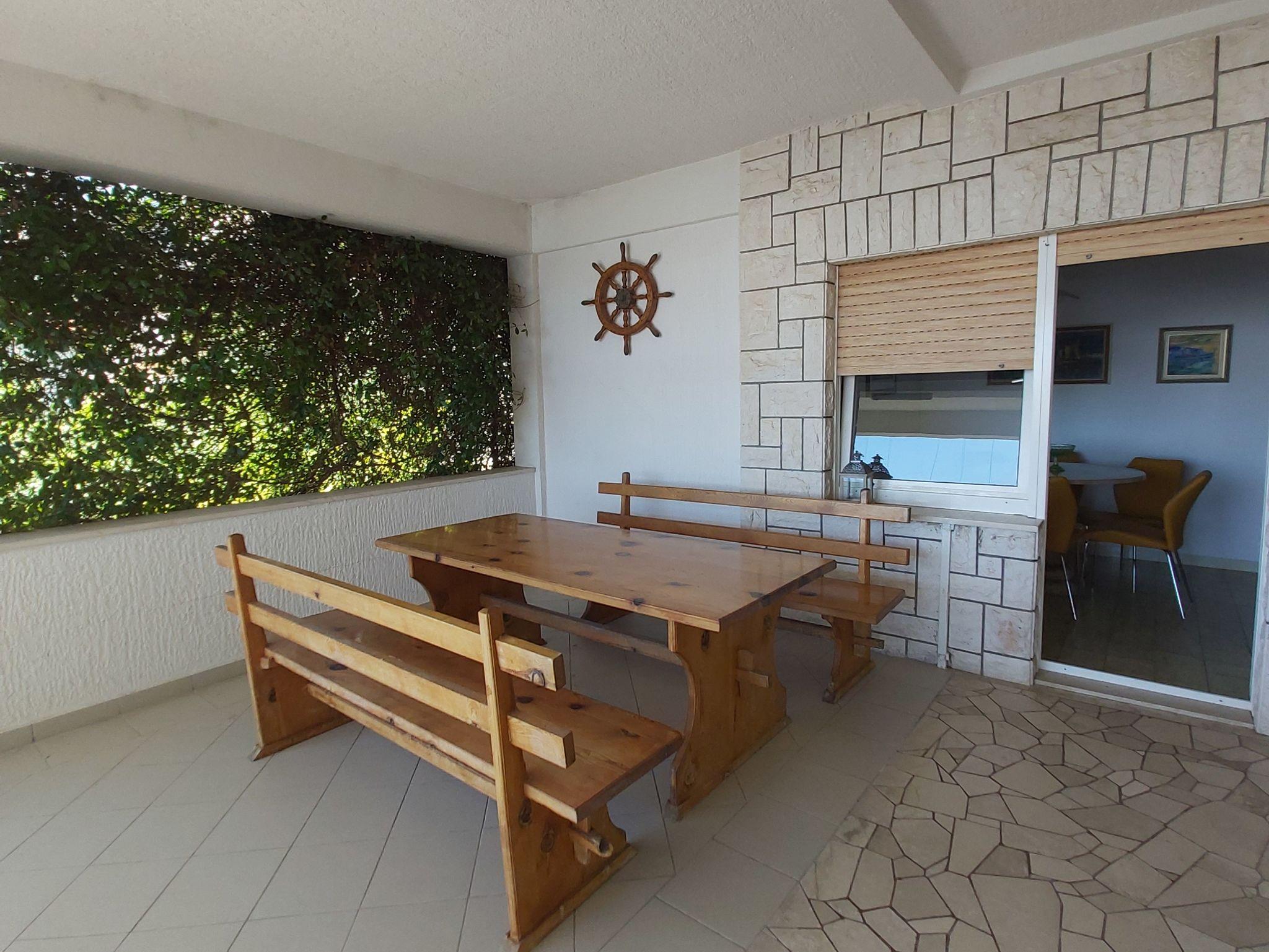 Ferienwohnung bietet Platz für 6 Gäste. Die Betten sind in Schlafzimmern, die es 3 gibt, innerhalb einer Gesamtfläche von 103m2, angeordnet. Die Gäste haben eine eigene Terrasse zur Verfügung, auf der sie in warmen Sommernächten genießen können. Das Apartment bietet Meerblick. Es ist erlaubt, Speisen auf dem Gemeinschafts-Grill vorzubereiten. IM PREIS INBEGRIFFEN: Kurtaxe, Endreinigung, Klimatisierung, Parkplatz, Internet, Wäschewaschen, Bügeleisen, Bügelbrett, Föhn, Sonnenschirm, Liegestühle. VERBINDLICHE ZUSÄTZLICHE KOSTEN: Aufzahlung für Kurzaufenthalte (prozentualer Zuschlag pro Nächtigungsanzahl: 30% - 1, 20% - 2, 10% - 3). Die Verfügbarkeit zusätzlicher Dienstleistungen in Ihrem reservierten Termin und die Preise derselben (falls nicht aufgeführt) müssen im Voraus überprüft werden. Zusätzliche Dienstleistungen die in der Zahlungsaufforderung nicht aufgeführt sind werden direkt beim Vermieter bezahlt, angenommen der Gast nutzt auch diese.