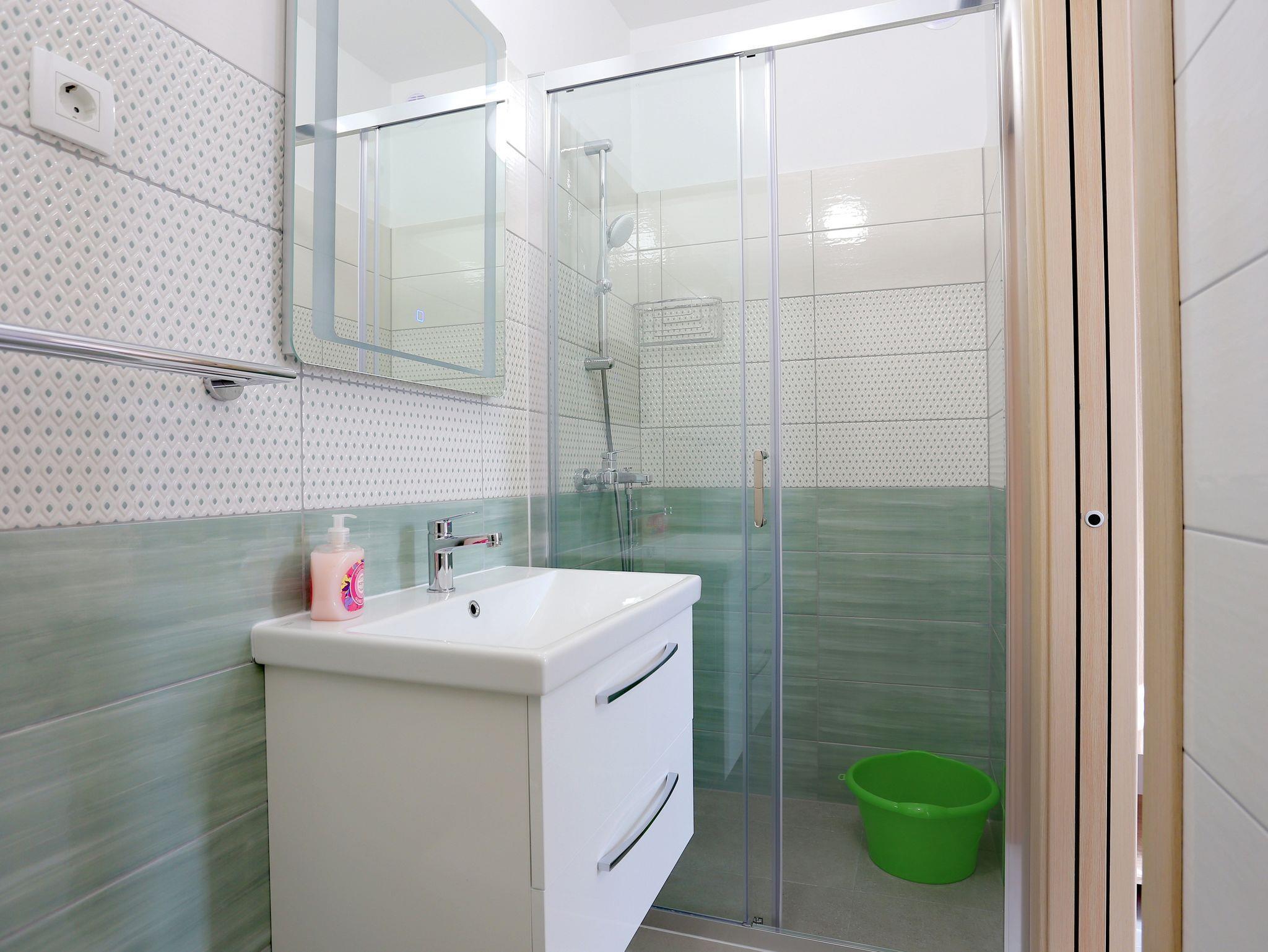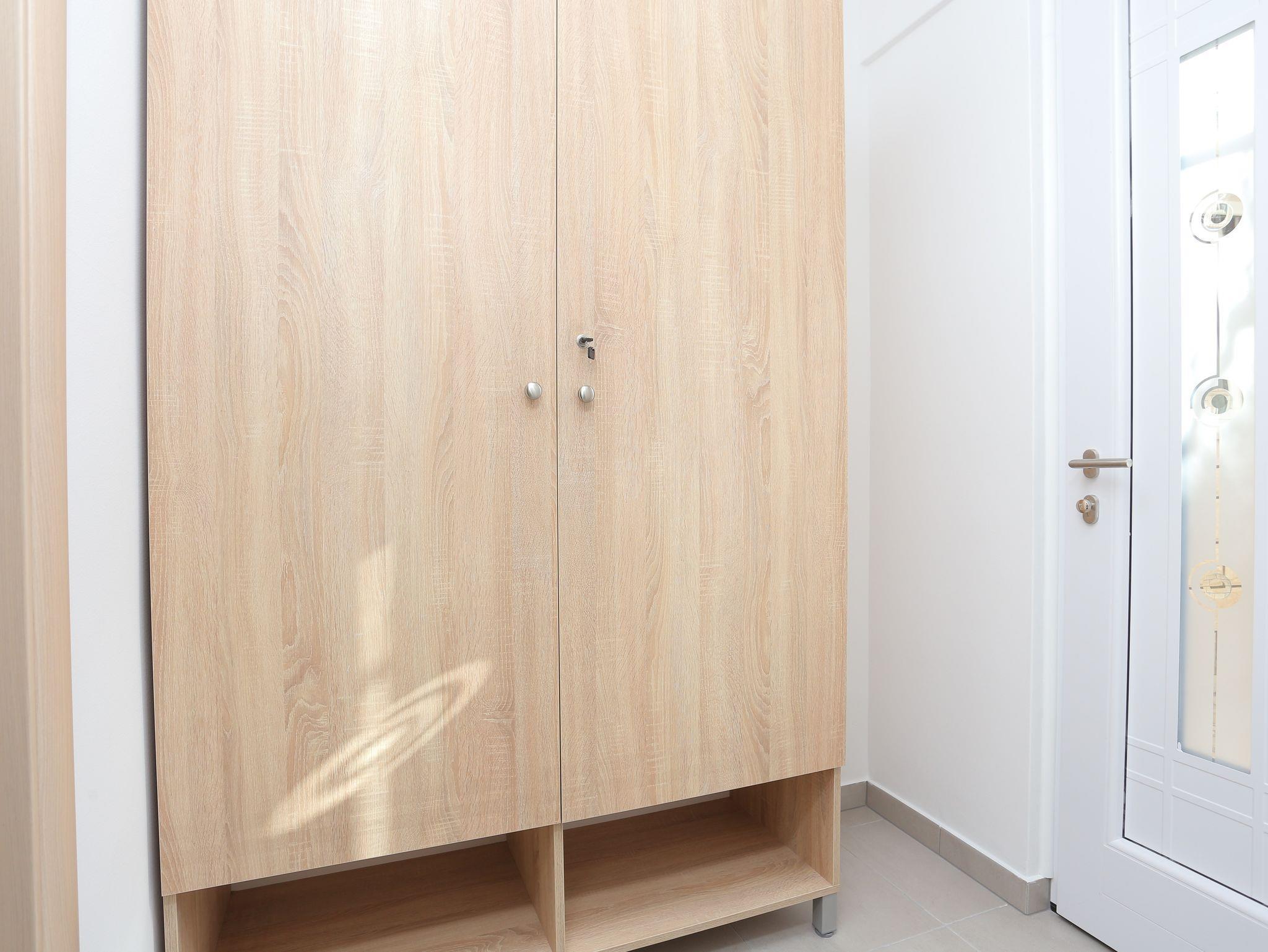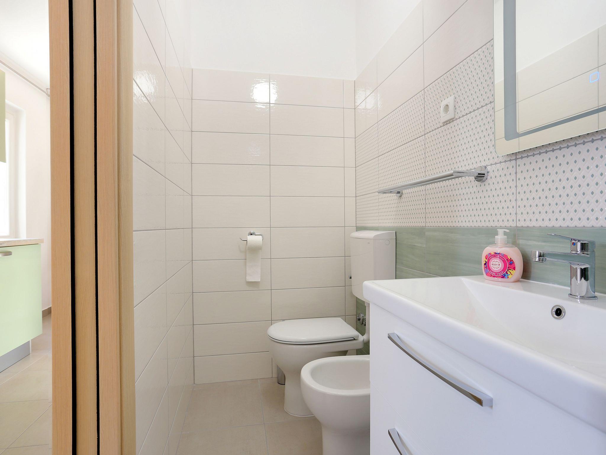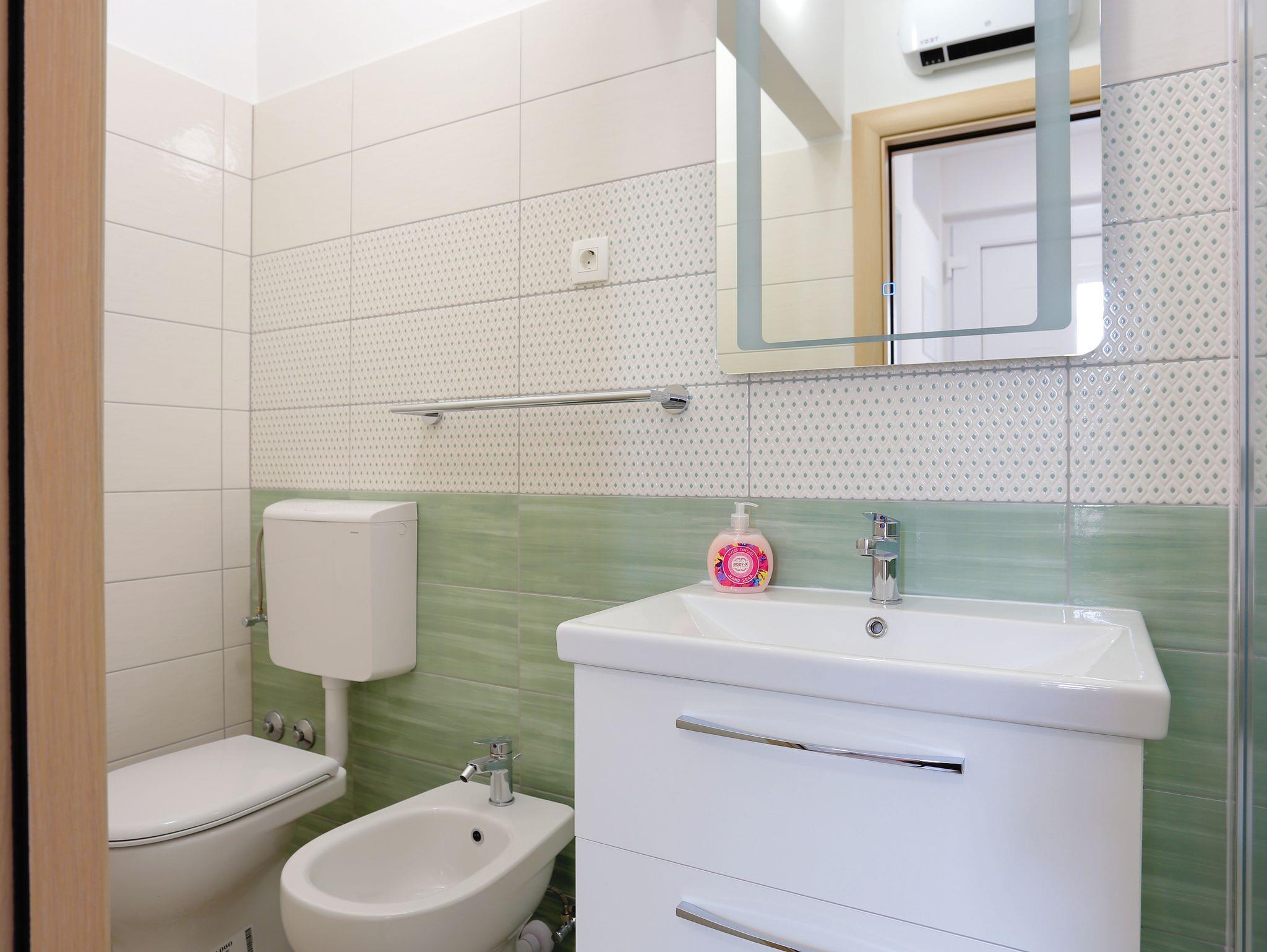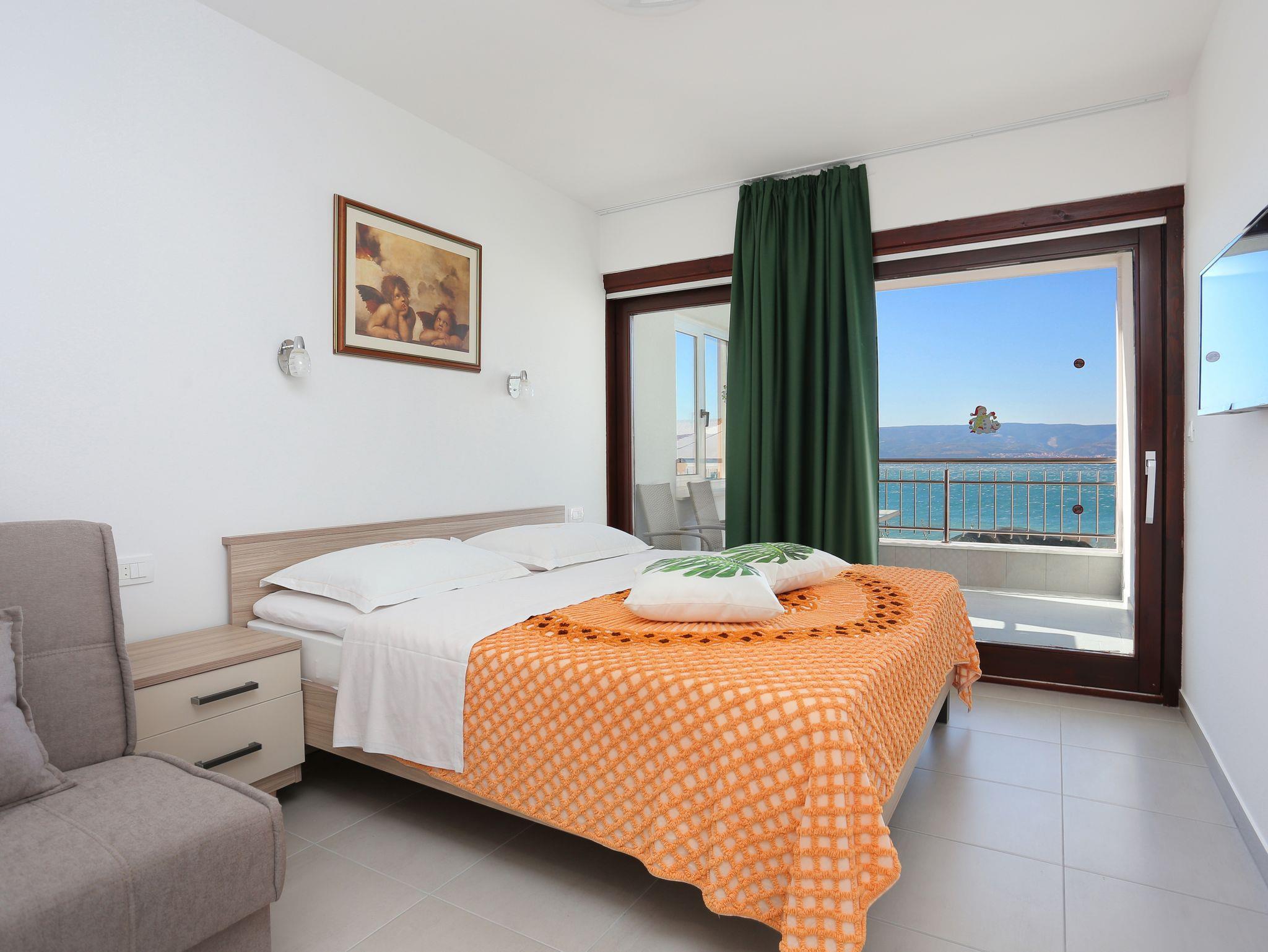 Ferienwohnung bietet Platz für 3 Gäste. Die Betten sind in Schlafzimmern, die es 1 gibt, innerhalb einer Gesamtfläche von 26m2, angeordnet. Die Gäste haben eine eigene Terrasse zur Verfügung, auf der sie in warmen Sommernächten genießen können. Das Apartment bietet Meerblick. Es ist erlaubt, Speisen auf dem Gemeinschafts-Grill vorzubereiten. IM PREIS INBEGRIFFEN: Kurtaxe, Endreinigung, Klimatisierung, Parkplatz, Garage, Internet, Bügeleisen, Bügelbrett, Föhn, tragbarer Grill. VERBINDLICHE ZUSÄTZLICHE KOSTEN: Aufzahlung für Kurzaufenthalte (prozentualer Zuschlag pro Nächtigungsanzahl: 30% - 1, 20% - 2, 10% - 3). UNVERBINDLICHE ZUSÄTZLICHE KOSTEN: Wäschewaschen (3,00 € Waschen). Die Verfügbarkeit zusätzlicher Dienstleistungen in Ihrem reservierten Termin und die Preise derselben (falls nicht aufgeführt) müssen im Voraus überprüft werden. Zusätzliche Dienstleistungen die in der Zahlungsaufforderung nicht aufgeführt sind werden direkt beim Vermieter bezahlt, angenommen der Gast nutzt auch diese.