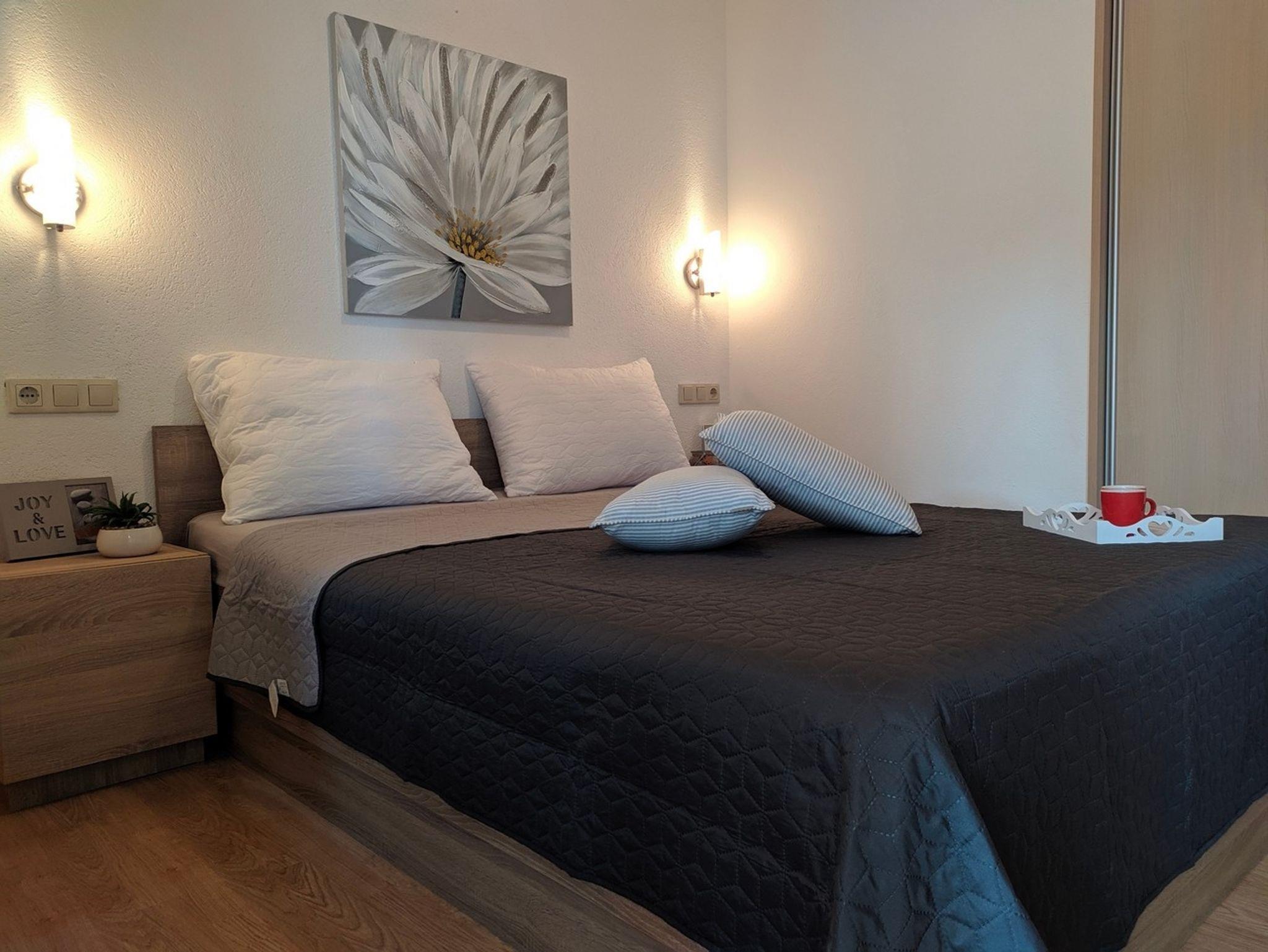 Ferienwohnung bietet Platz für 4 Gäste. Die Betten sind in Schlafzimmern, die es 2 gibt, innerhalb einer Gesamtfläche von 42m2, angeordnet. Die Gäste haben einen eigenen Balkon zur Verfügung, auf der sie in warmen Sommernächten genießen können. Das Apartment bietet Meerblick. Es ist erlaubt, Speisen auf dem Gemeinschafts-Grill vorzubereiten. IM PREIS INBEGRIFFEN: Kurtaxe, Endreinigung, Klimatisierung, Parkplatz, Internet, Kinderbett, Bügeleisen, Bügelbrett, Föhn. Die Verfügbarkeit zusätzlicher Dienstleistungen in Ihrem reservierten Termin und die Preise derselben (falls nicht aufgeführt) müssen im Voraus überprüft werden. Zusätzliche Dienstleistungen die in der Zahlungsaufforderung nicht aufgeführt sind werden direkt beim Vermieter bezahlt, angenommen der Gast nutzt auch diese. Ermäßigung auf den Grundpreis: Gratistag 14=13 (bei einem Aufenthalt von 14 Tagen oder mehr erhalten Sie einen Gratistag für den Aufenthalt bis 31.12.26).