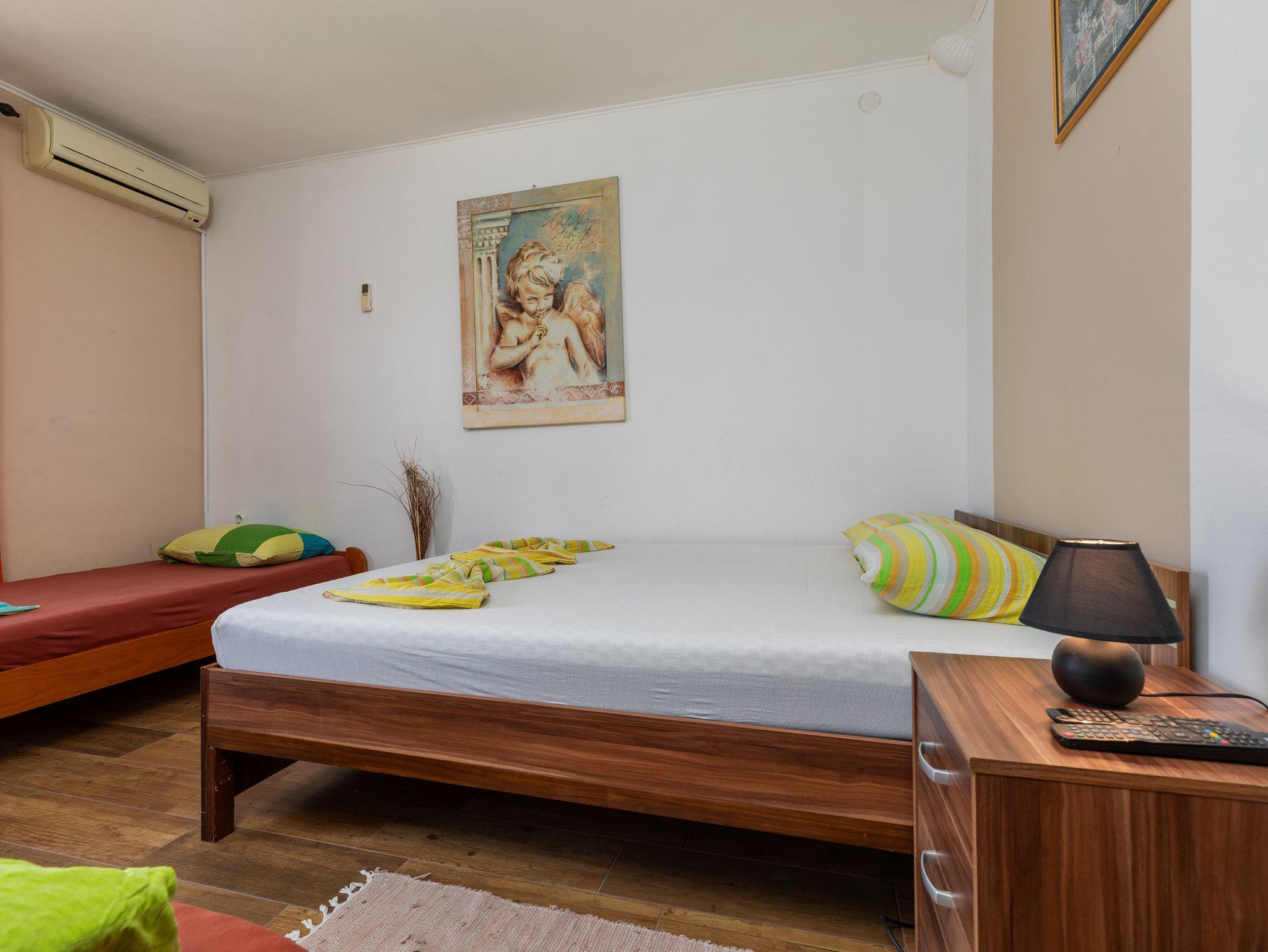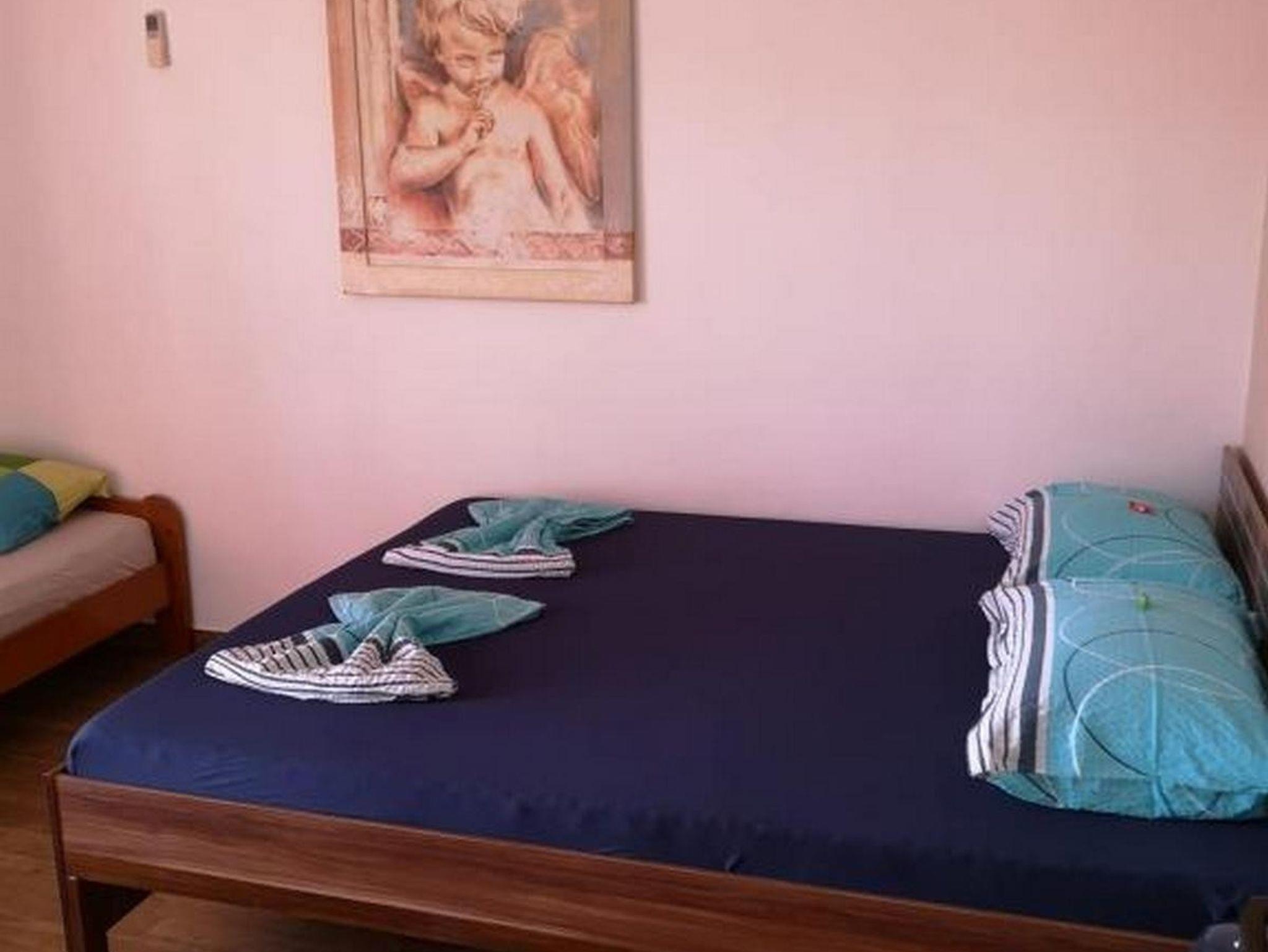 Ferienwohnung bietet Platz für 4 Gäste. Die Betten sind in Schlafzimmern, die es 1 gibt, innerhalb einer Gesamtfläche von 32m2, angeordnet. Die Gäste haben eine eigene Terrasse zur Verfügung, auf der sie in warmen Sommernächten genießen können. Das Apartment bietet Meerblick. Es ist erlaubt, Speisen auf dem Gemeinschafts-Grill vorzubereiten. Durch die Terrasse der gebuchten Unterkunftseinheit gehen auch andere Gäste oder Vermieter. IM PREIS INBEGRIFFEN: Kurtaxe, Endreinigung, Klimatisierung, Parkplatz, Internet, Bügeleisen, Bügelbrett, Föhn, tragbarer Grill, Sonnenschirm. VERBINDLICHE ZUSÄTZLICHE KOSTEN: Aufzahlung für Kurzaufenthalte (prozentualer Zuschlag pro Nächtigungsanzahl: 30% - 1, 20% - 2, 10% - 3). UNVERBINDLICHE ZUSÄTZLICHE KOSTEN: Bootsanlegeplatz (20,00 € pro Nacht). Die Verfügbarkeit zusätzlicher Dienstleistungen in Ihrem reservierten Termin und die Preise derselben (falls nicht aufgeführt) müssen im Voraus überprüft werden. Zusätzliche Dienstleistungen die in der Zahlungsaufforderung nicht aufgeführt sind werden direkt beim Vermieter bezahlt, angenommen der Gast nutzt auch diese. Ermäßigung auf den Grundpreis: Gratistag 14=13 (bei einem Aufenthalt von 14 Tagen oder mehr erhalten Sie einen Gratistag für den Aufenthalt bis 31.12.26).