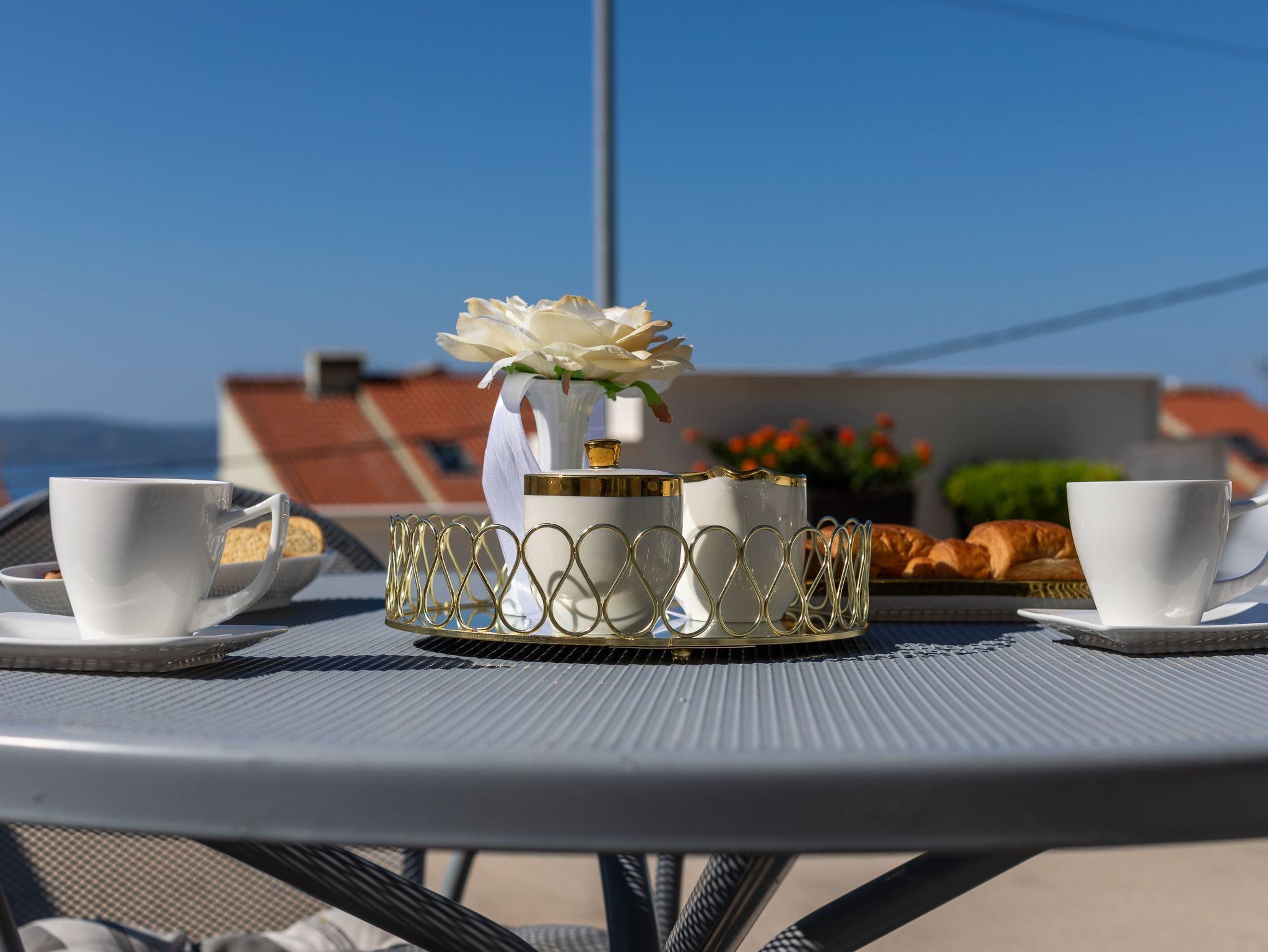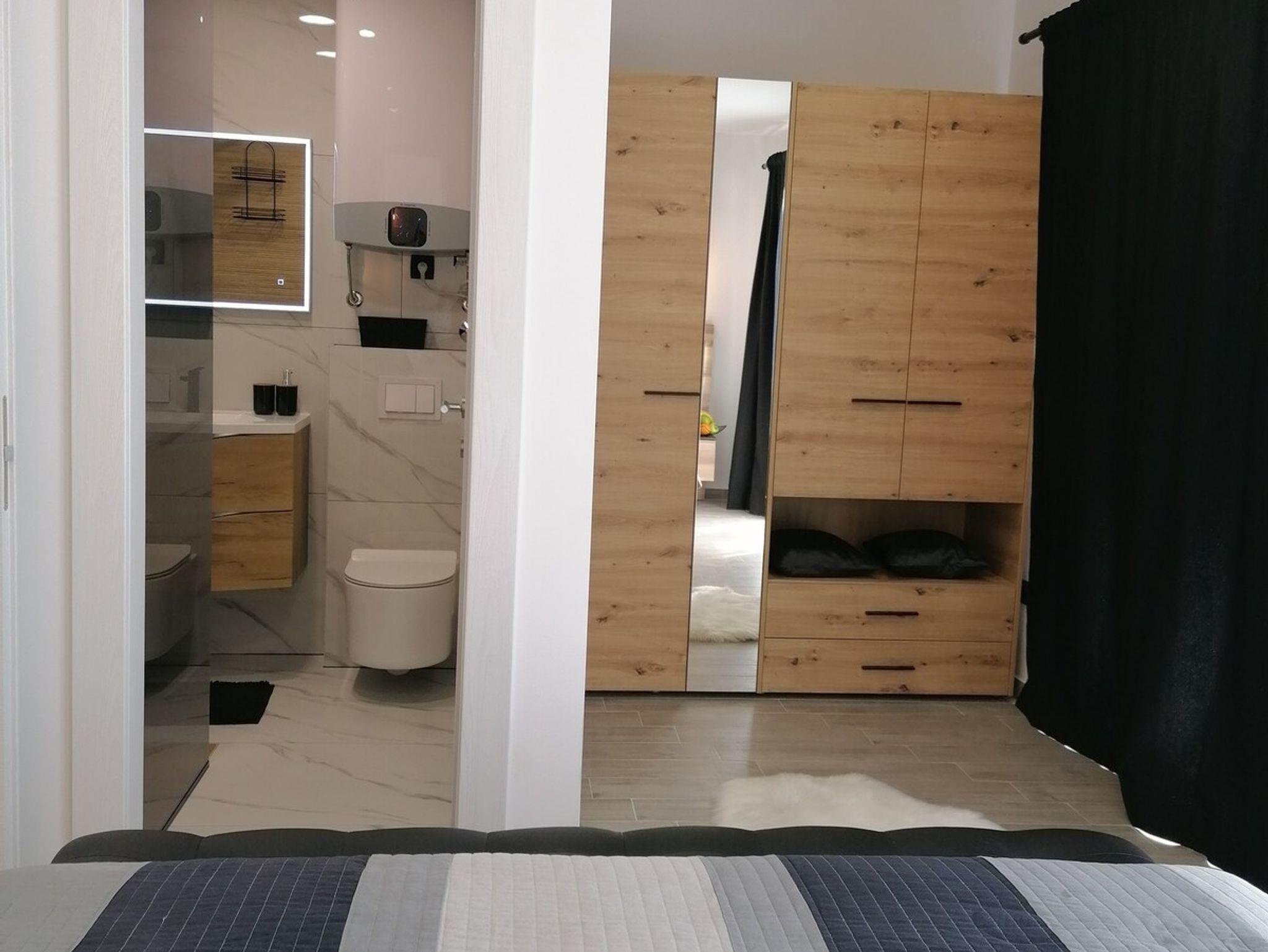 Ferienwohnung bietet Platz für 4 Gäste. Die Betten sind in Schlafzimmern, die es 2 gibt, innerhalb einer Gesamtfläche von 81m2, angeordnet. Die Gäste haben eine eigene Terrasse zur Verfügung, auf der sie in warmen Sommernächten genießen können. Das Apartment bietet Meerblick. Für vollen Genuss und Entspannung gibt es einen privaten Grill für Gäste dieser Unterkunft. IM PREIS INBEGRIFFEN: Kurtaxe, Endreinigung, Klimatisierung, Parkplatz, Internet, Kinderbett, Bügeleisen, Bügelbrett, Föhn, Sonnenschirm. VERBINDLICHE ZUSÄTZLICHE KOSTEN: Aufzahlung für Kurzaufenthalte (prozentualer Zuschlag pro Nächtigungsanzahl: 30% - 1, 20% - 2, 10% - 3). Die Verfügbarkeit zusätzlicher Dienstleistungen in Ihrem reservierten Termin und die Preise derselben (falls nicht aufgeführt) müssen im Voraus überprüft werden. Zusätzliche Dienstleistungen die in der Zahlungsaufforderung nicht aufgeführt sind werden direkt beim Vermieter bezahlt, angenommen der Gast nutzt auch diese.