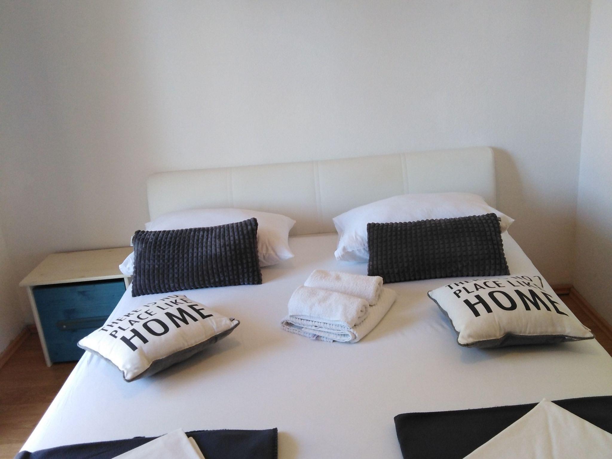 Ferienwohnung bietet Platz für 8 Gäste. Die Betten sind in Schlafzimmern, die es 4 gibt, innerhalb einer Gesamtfläche von 114m2, angeordnet. Die Gäste haben eine eigene Terrasse zur Verfügung, auf der sie in warmen Sommernächten genießen können. Das Apartment bietet Meerblick. Es ist erlaubt, Speisen auf dem Gemeinschafts-Grill vorzubereiten. In der Unterkunftseinheit besteht die Möglichkeit des Mitbringens von Haustieren gegen Aufpreis. IM PREIS INBEGRIFFEN: Kurtaxe, Endreinigung, Parkplatz, Internet, Kinderbett, Bügeleisen, Bügelbrett, Föhn. VERBINDLICHE ZUSÄTZLICHE KOSTEN: Aufzahlung für Kurzaufenthalte (prozentualer Zuschlag pro Nächtigungsanzahl: 30% - 1, 20% - 2, 10% - 3). UNVERBINDLICHE ZUSÄTZLICHE KOSTEN: Klimatisierung (5,00 € pro Nacht), Haustiere (5,00 € pro Nacht), Zusatzbett (15,00 € pro Nacht). Die Verfügbarkeit zusätzlicher Dienstleistungen in Ihrem reservierten Termin und die Preise derselben (falls nicht aufgeführt) müssen im Voraus überprüft werden. Zusätzliche Dienstleistungen die in der Zahlungsaufforderung nicht aufgeführt sind werden direkt beim Vermieter bezahlt, angenommen der Gast nutzt auch diese.