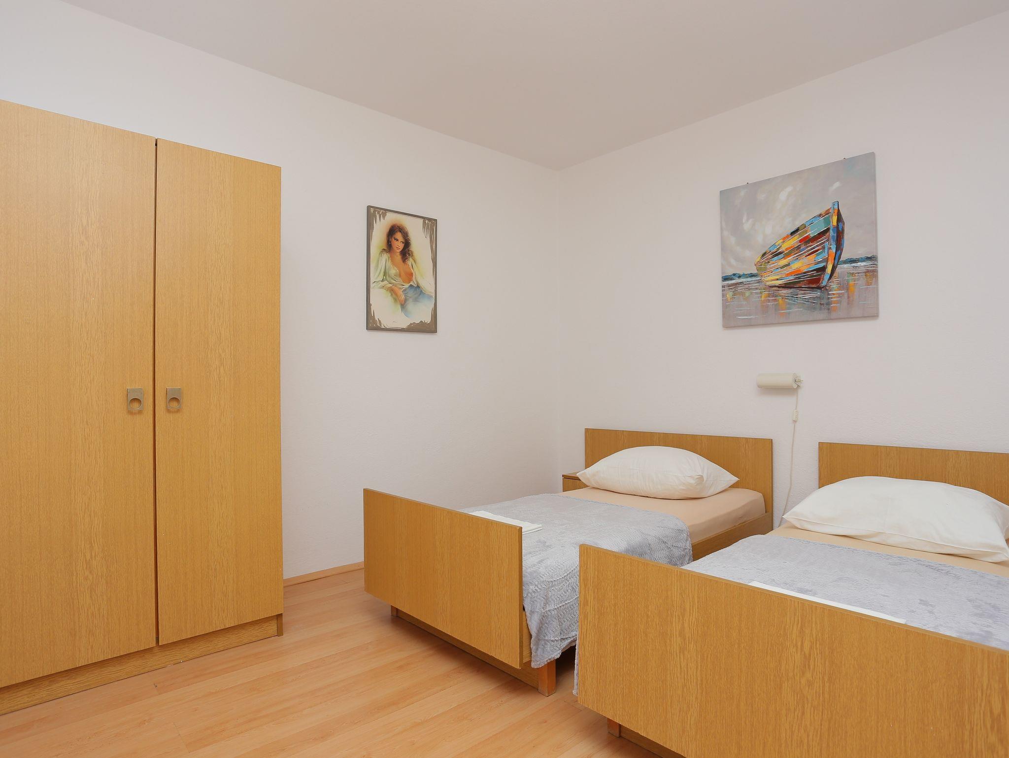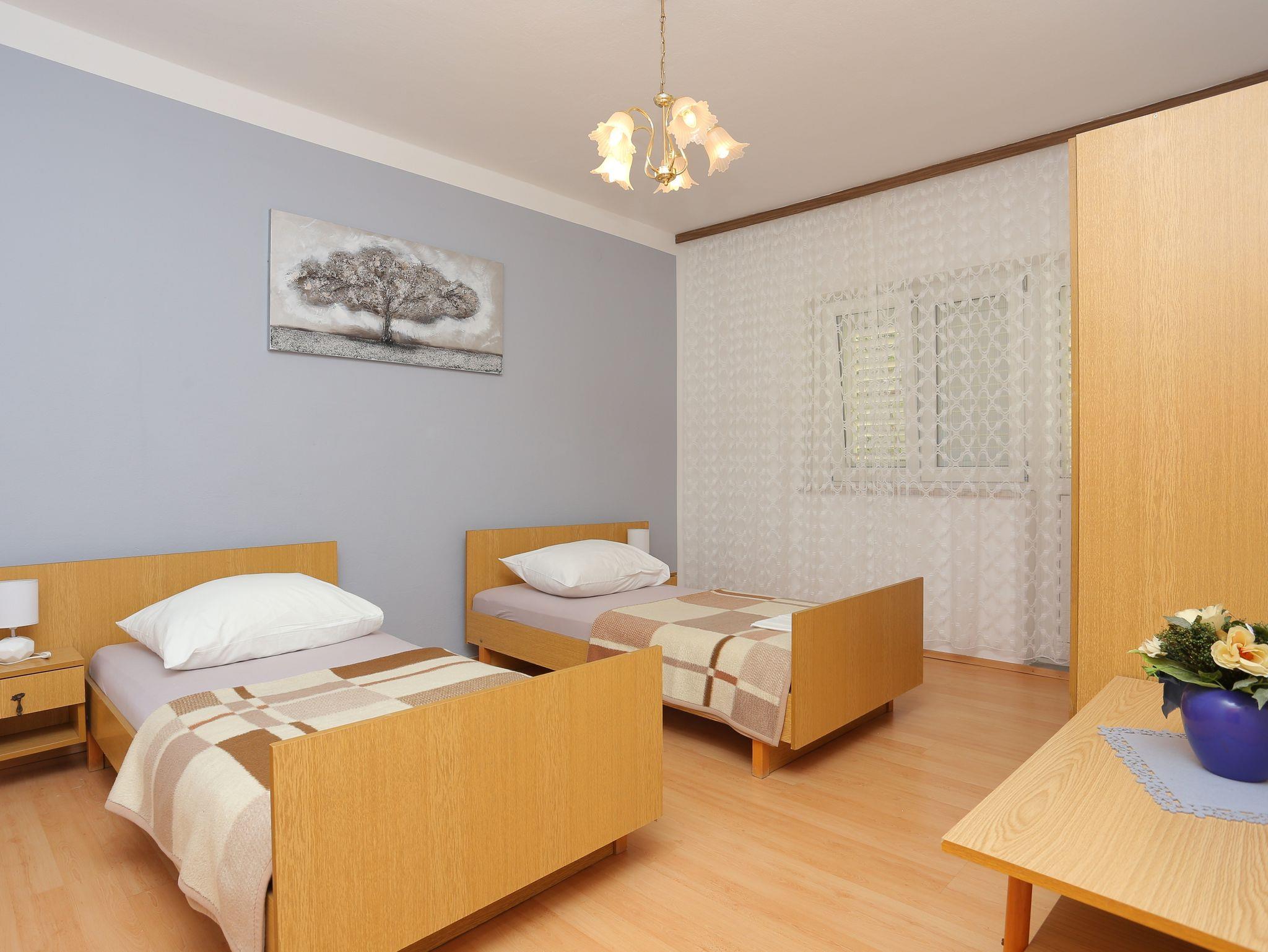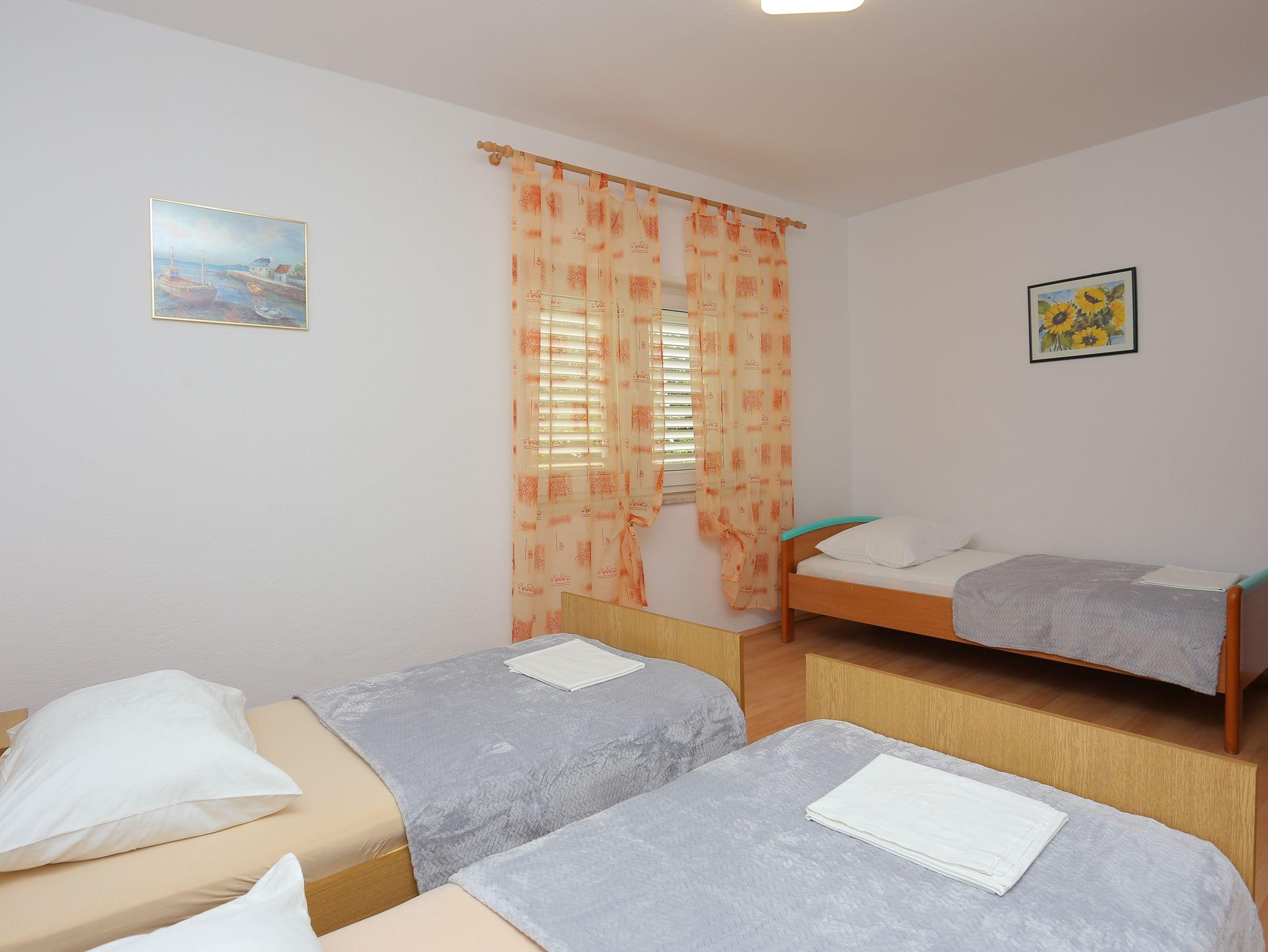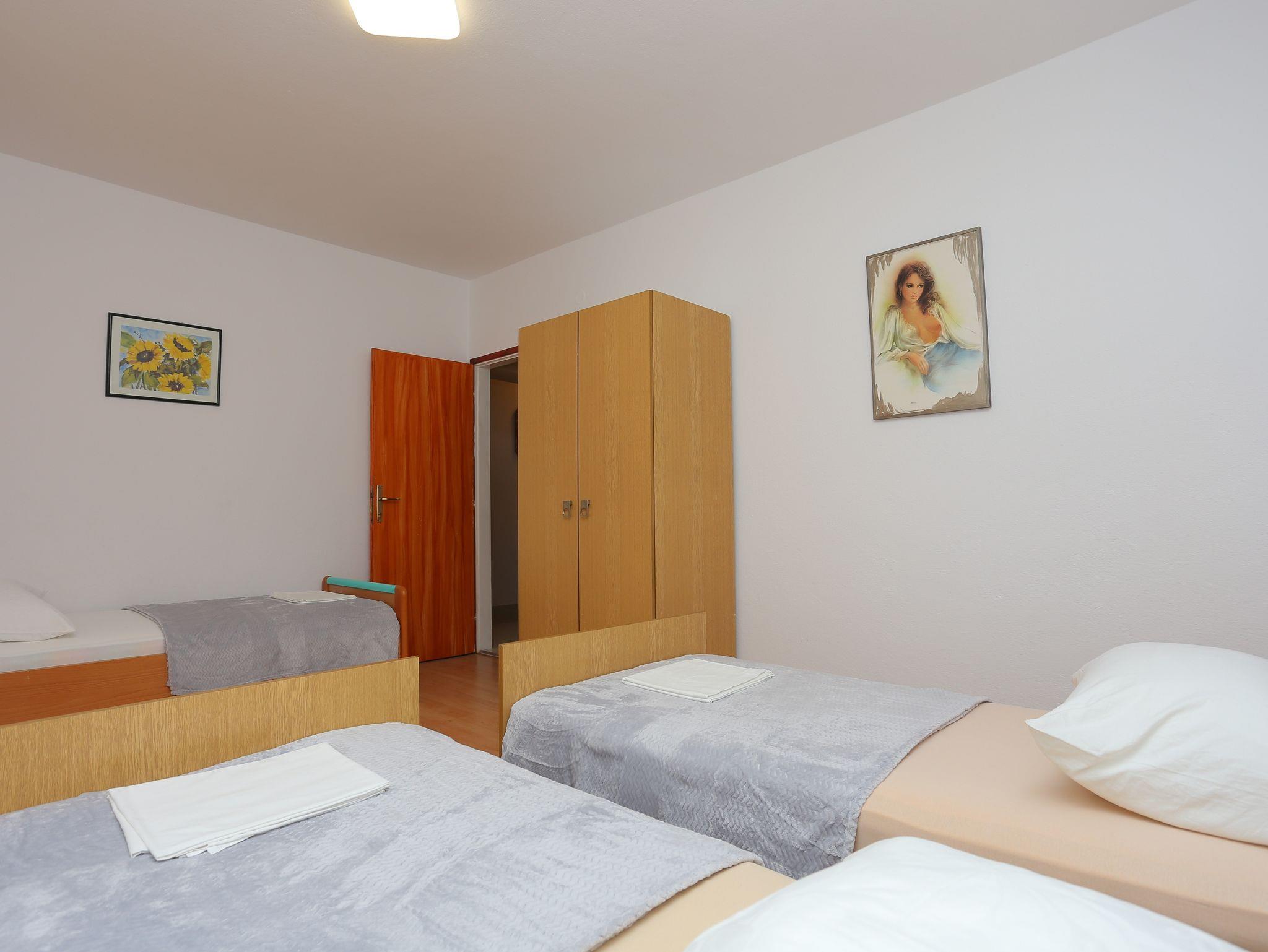 Ferienwohnung bietet Platz für 10 Gäste. Die Betten sind in Schlafzimmern, die es 4 gibt, innerhalb einer Gesamtfläche von 99m2, angeordnet. Die Gäste haben eine eigene Terrasse zur Verfügung, auf der sie in warmen Sommernächten genießen können. Das Apartment bietet Meerblick. Es ist erlaubt, Speisen auf dem Gemeinschafts-Grill vorzubereiten. In der Unterkunftseinheit besteht die Möglichkeit des Mitbringens von Haustieren gegen Aufpreis. IM PREIS INBEGRIFFEN: Kurtaxe, Endreinigung, Parkplatz, Internet, Bügeleisen, Bügelbrett, Föhn. VERBINDLICHE ZUSÄTZLICHE KOSTEN: Aufzahlung für Kurzaufenthalte (prozentualer Zuschlag pro Nächtigungsanzahl: 30% - 1, 20% - 2, 10% - 3). UNVERBINDLICHE ZUSÄTZLICHE KOSTEN: Wäschewaschen (5,00 € Waschen), Haustiere (5,00 € pro Nacht). Die Verfügbarkeit zusätzlicher Dienstleistungen in Ihrem reservierten Termin und die Preise derselben (falls nicht aufgeführt) müssen im Voraus überprüft werden. Zusätzliche Dienstleistungen die in der Zahlungsaufforderung nicht aufgeführt sind werden direkt beim Vermieter bezahlt, angenommen der Gast nutzt auch diese. Ermäßigung auf den Grundpreis: Gratistag 14=13 (bei einem Aufenthalt von 14 Tagen oder mehr erhalten Sie einen Gratistag für den Aufenthalt bis 31.12.26).