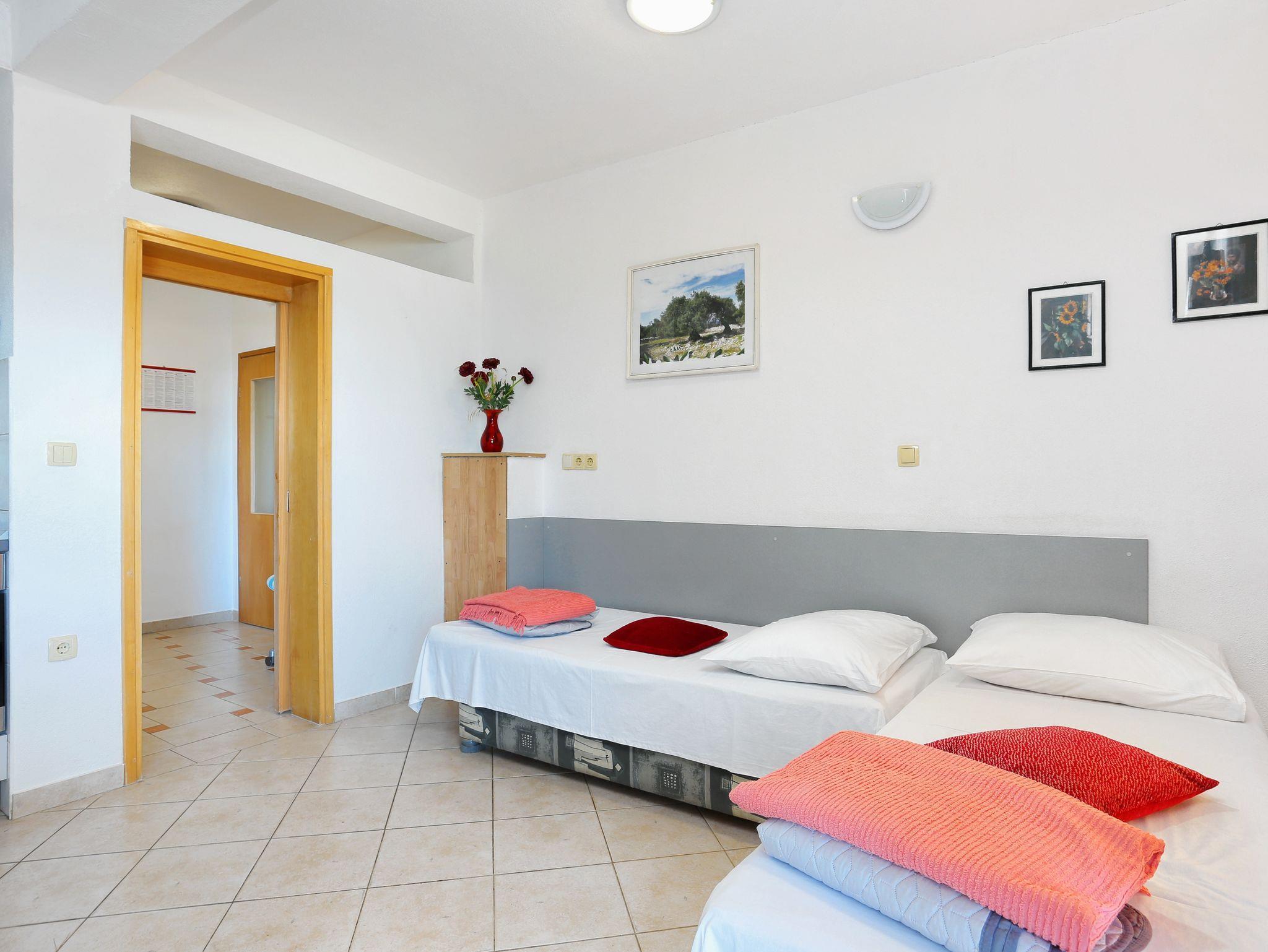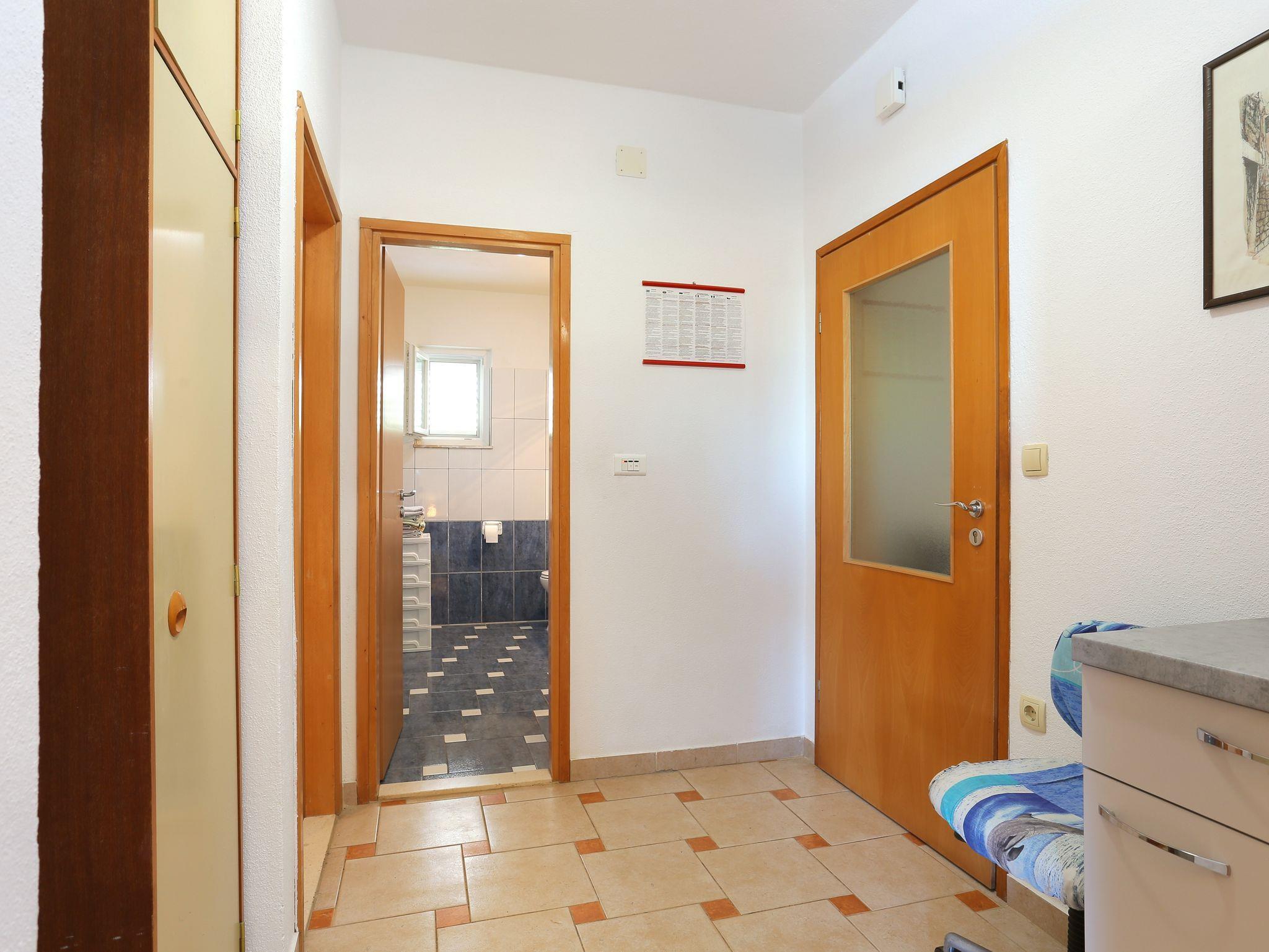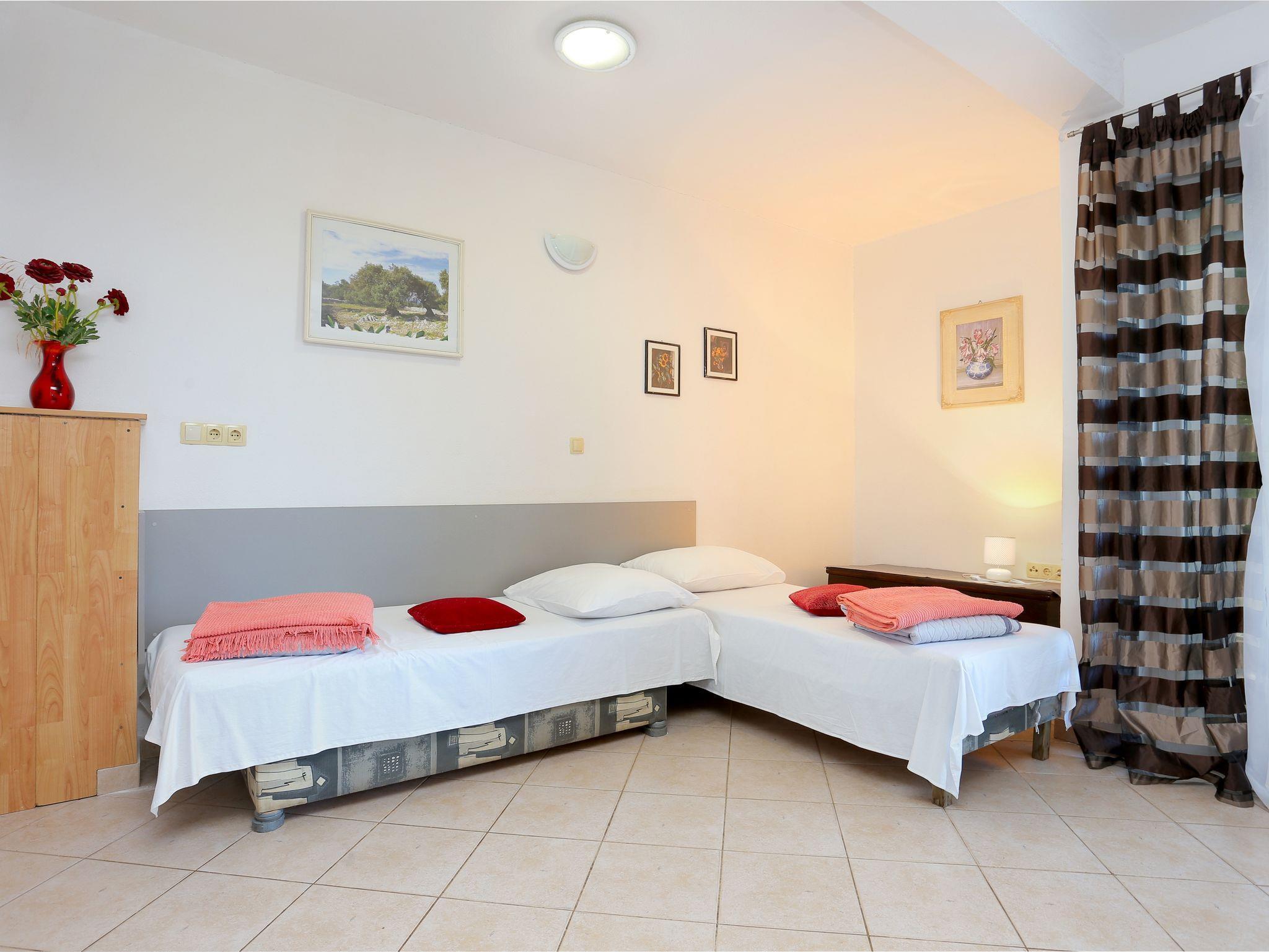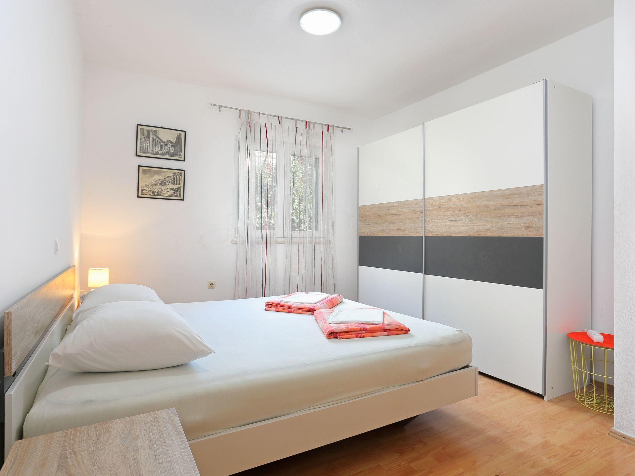 Ferienwohnung bietet Platz für 5 Gäste. Die Betten sind in Schlafzimmern, die es 1 gibt, und in Wohnzimmer, innerhalb einer Gesamtfläche von 49m2, angeordnet. Die Gäste haben eine eigene Terrasse zur Verfügung, auf der sie in warmen Sommernächten genießen können. Das Apartment bietet Meerblick. Es ist erlaubt, Speisen auf dem Gemeinschafts-Grill vorzubereiten. IM PREIS INBEGRIFFEN: Kurtaxe, Endreinigung, Klimatisierung, Parkplatz, Internet, Wäschewaschen, Bügeleisen, Bügelbrett, Föhn, Sonnenschirm, Liegestühle. VERBINDLICHE ZUSÄTZLICHE KOSTEN: Aufzahlung für Kurzaufenthalte (prozentualer Zuschlag pro Nächtigungsanzahl: 30% - 1, 20% - 2, 10% - 3). Die Verfügbarkeit zusätzlicher Dienstleistungen in Ihrem reservierten Termin und die Preise derselben (falls nicht aufgeführt) müssen im Voraus überprüft werden. Zusätzliche Dienstleistungen die in der Zahlungsaufforderung nicht aufgeführt sind werden direkt beim Vermieter bezahlt, angenommen der Gast nutzt auch diese.