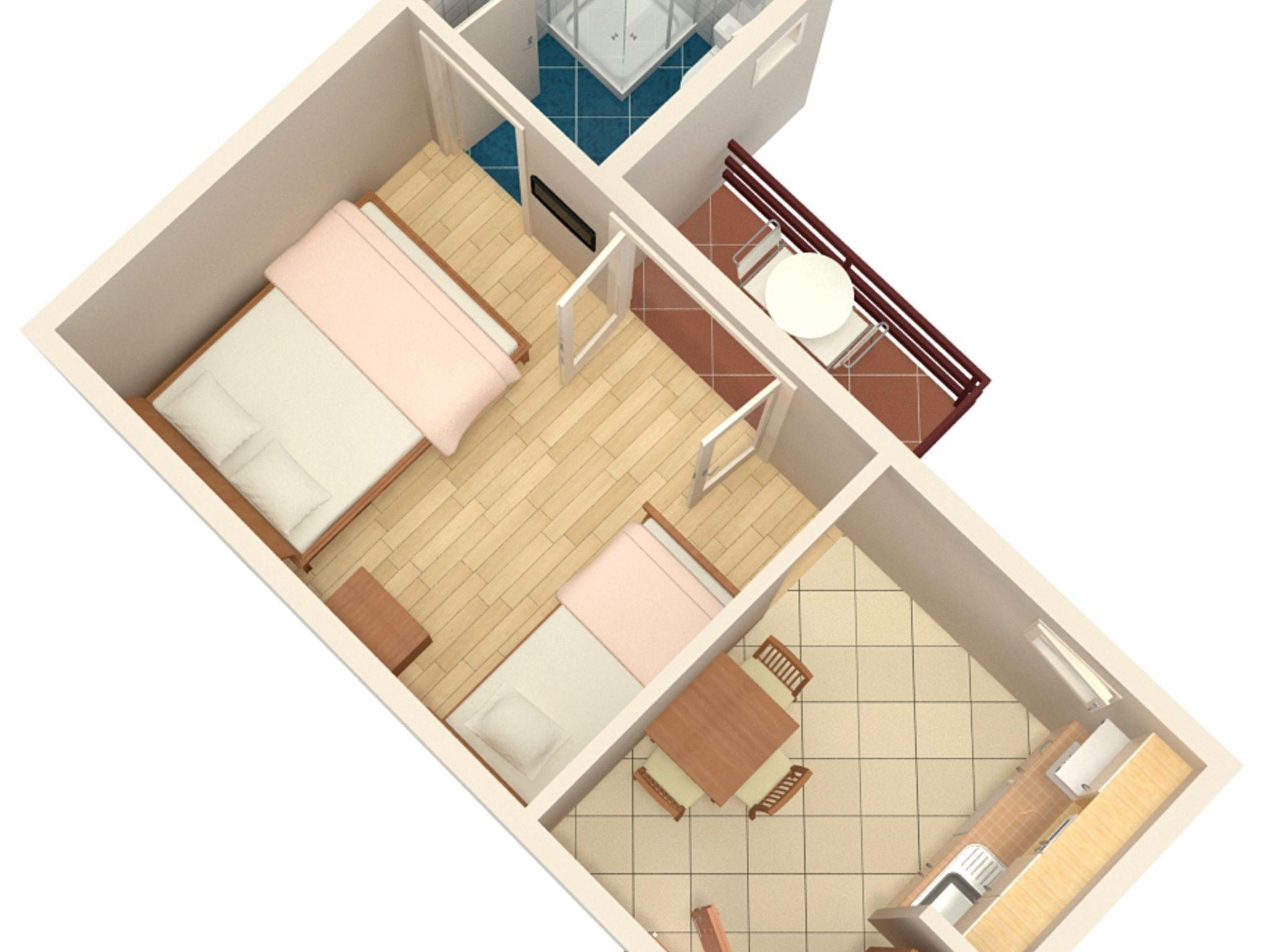 Studio bietet Platz für 3 Gäste. Die Betten sind in Schlafzimmern, die es 1 gibt, innerhalb einer Gesamtfläche von 21m2, angeordnet. Die Gäste haben einen eigenen Balkon zur Verfügung, auf der sie in warmen Sommernächten genießen können. Es ist erlaubt, Speisen auf dem Gemeinschafts-Grill vorzubereiten. IM PREIS INBEGRIFFEN: Kurtaxe, Endreinigung, Klimatisierung, Parkplatz, Internet. VERBINDLICHE ZUSÄTZLICHE KOSTEN: Aufzahlung für Kurzaufenthalte (prozentualer Zuschlag pro Nächtigungsanzahl: 30% - 1, 20% - 2, 10% - 3). Die Verfügbarkeit zusätzlicher Dienstleistungen in Ihrem reservierten Termin und die Preise derselben (falls nicht aufgeführt) müssen im Voraus überprüft werden. Zusätzliche Dienstleistungen die in der Zahlungsaufforderung nicht aufgeführt sind werden direkt beim Vermieter bezahlt, angenommen der Gast nutzt auch diese.