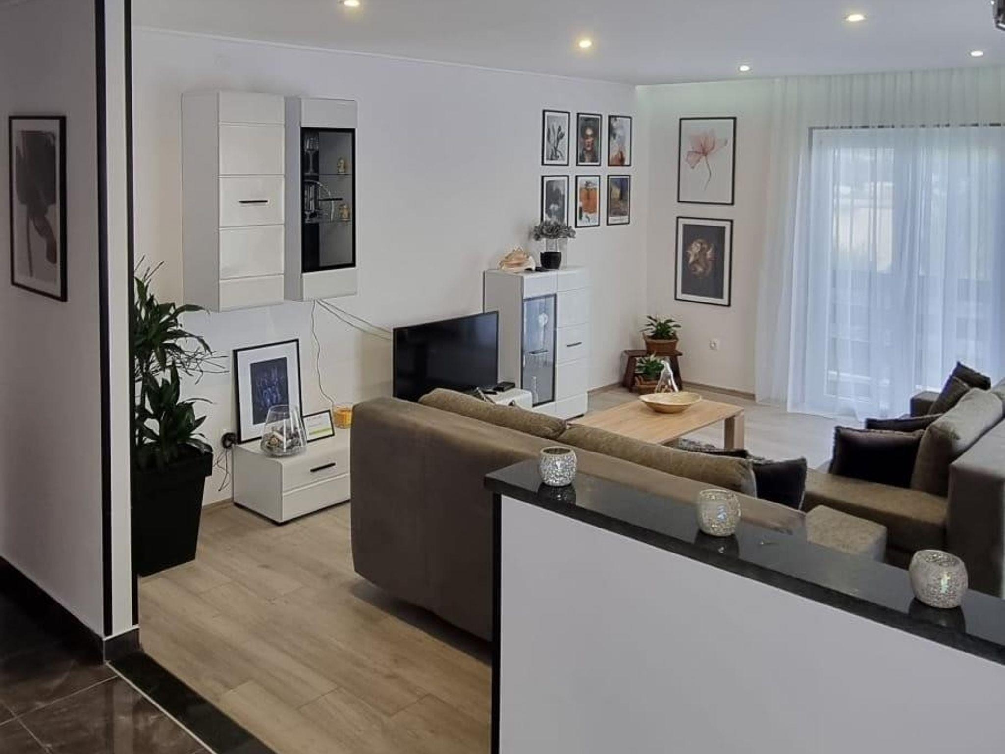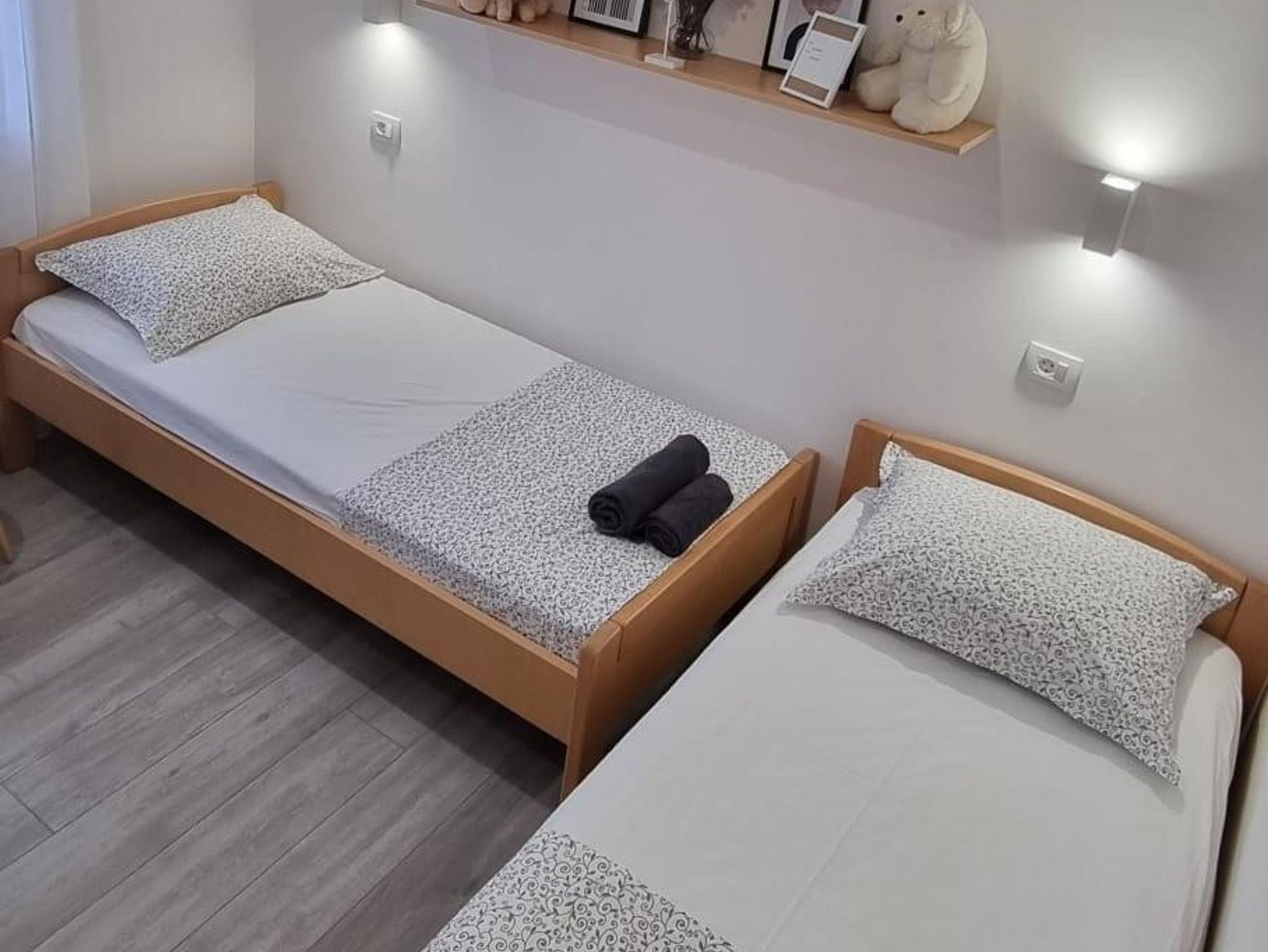 Ferienwohnung bietet Platz für 6 Gäste. Die Betten sind in Schlafzimmern, die es 2 gibt, und in Wohnzimmer, innerhalb einer Gesamtfläche von 86m2, angeordnet. Die Gäste haben einen eigenen Balkon zur Verfügung, auf der sie in warmen Sommernächten genießen können. Das Apartment bietet Meerblick. Es ist erlaubt, Speisen auf dem Gemeinschafts-Grill vorzubereiten. In der Unterkunftseinheit besteht die Möglichkeit des Mitbringens von Haustieren, und die Dienstleistung ist im Preis der Unterkunft enthalten. IM PREIS INBEGRIFFEN: Kurtaxe, Endreinigung, Klimatisierung, Parkplatz, Internet, Haustiere, Kinderbett, Bügeleisen, Bügelbrett, Föhn. Die Verfügbarkeit zusätzlicher Dienstleistungen in Ihrem reservierten Termin und die Preise derselben (falls nicht aufgeführt) müssen im Voraus überprüft werden. Zusätzliche Dienstleistungen die in der Zahlungsaufforderung nicht aufgeführt sind werden direkt beim Vermieter bezahlt, angenommen der Gast nutzt auch diese. Ermäßigung auf den Grundpreis: Gratistag 14=13 (bei einem Aufenthalt von 14 Tagen oder mehr erhalten Sie einen Gratistag für den Aufenthalt bis 31.12.26).