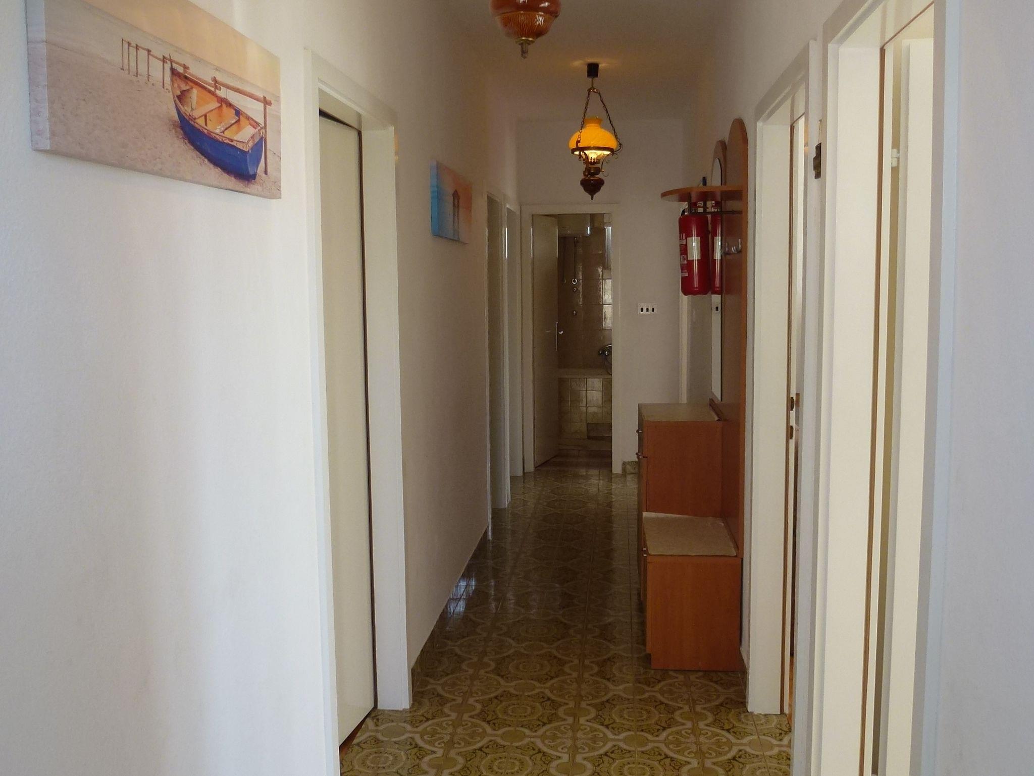 Ferienwohnung bietet Platz für 8 Gäste. Die Betten sind in Schlafzimmern, die es 3 gibt, innerhalb einer Gesamtfläche von 93m2, angeordnet. Die Gäste haben eine eigene Terrasse zur Verfügung, auf der sie in warmen Sommernächten genießen können. Das Apartment bietet Meerblick. Es ist erlaubt, Speisen auf dem Gemeinschafts-Grill vorzubereiten. IM PREIS INBEGRIFFEN: Kurtaxe, Endreinigung, Parkplatz, Internet, Bügeleisen, Bügelbrett, Föhn. VERBINDLICHE ZUSÄTZLICHE KOSTEN: Aufzahlung für Kurzaufenthalte (prozentualer Zuschlag pro Nächtigungsanzahl: 30% - 1, 20% - 2, 10% - 3). UNVERBINDLICHE ZUSÄTZLICHE KOSTEN: Klimatisierung (15,00 € pro Nacht). Die Verfügbarkeit zusätzlicher Dienstleistungen in Ihrem reservierten Termin und die Preise derselben (falls nicht aufgeführt) müssen im Voraus überprüft werden. Zusätzliche Dienstleistungen die in der Zahlungsaufforderung nicht aufgeführt sind werden direkt beim Vermieter bezahlt, angenommen der Gast nutzt auch diese.