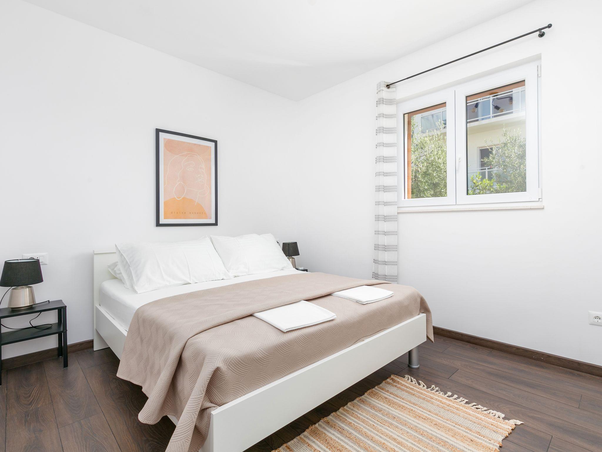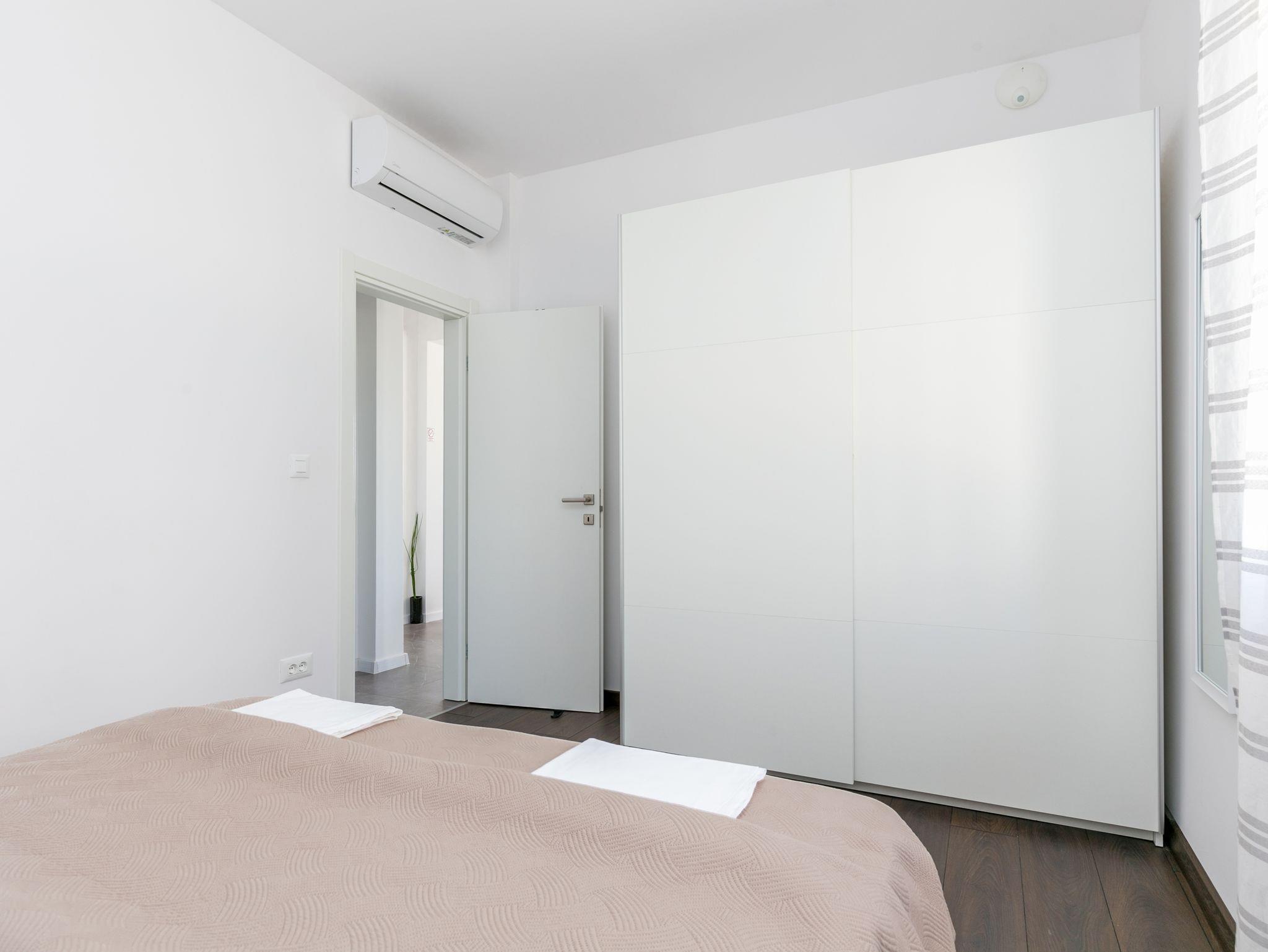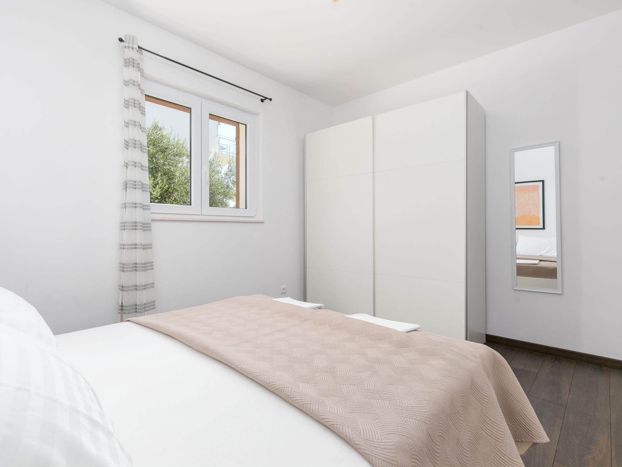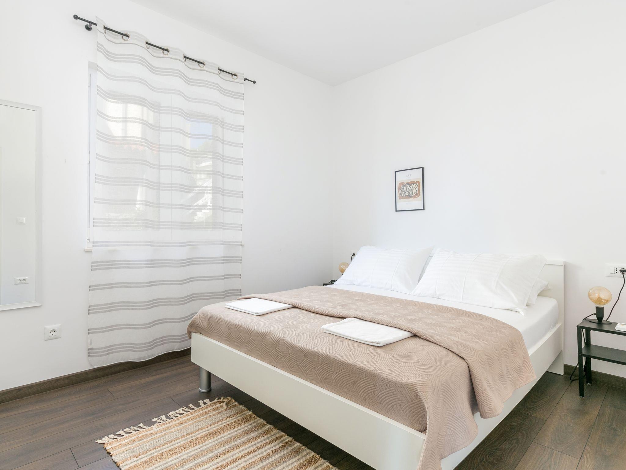 Ferienwohnung bietet Platz für 4 Gäste. Die Betten sind in Schlafzimmern, die es 2 gibt, innerhalb einer Gesamtfläche von 75m2, angeordnet. Die Gäste haben eine eigene Terrasse zur Verfügung, auf der sie in warmen Sommernächten genießen können. Das Apartment bietet Meerblick. Es ist erlaubt, Speisen auf dem Gemeinschafts-Grill vorzubereiten. IM PREIS INBEGRIFFEN: Kurtaxe, Endreinigung, Klimatisierung, Parkplatz, Internet, Bügeleisen, Bügelbrett, Föhn, 2 Kinderbettchen (im Preis enthalten). VERBINDLICHE ZUSÄTZLICHE KOSTEN: Aufzahlung für Kurzaufenthalte (prozentualer Zuschlag pro Nächtigungsanzahl: 30% - 1, 20% - 2, 10% - 3). Die Verfügbarkeit zusätzlicher Dienstleistungen in Ihrem reservierten Termin und die Preise derselben (falls nicht aufgeführt) müssen im Voraus überprüft werden. Zusätzliche Dienstleistungen die in der Zahlungsaufforderung nicht aufgeführt sind werden direkt beim Vermieter bezahlt, angenommen der Gast nutzt auch diese.