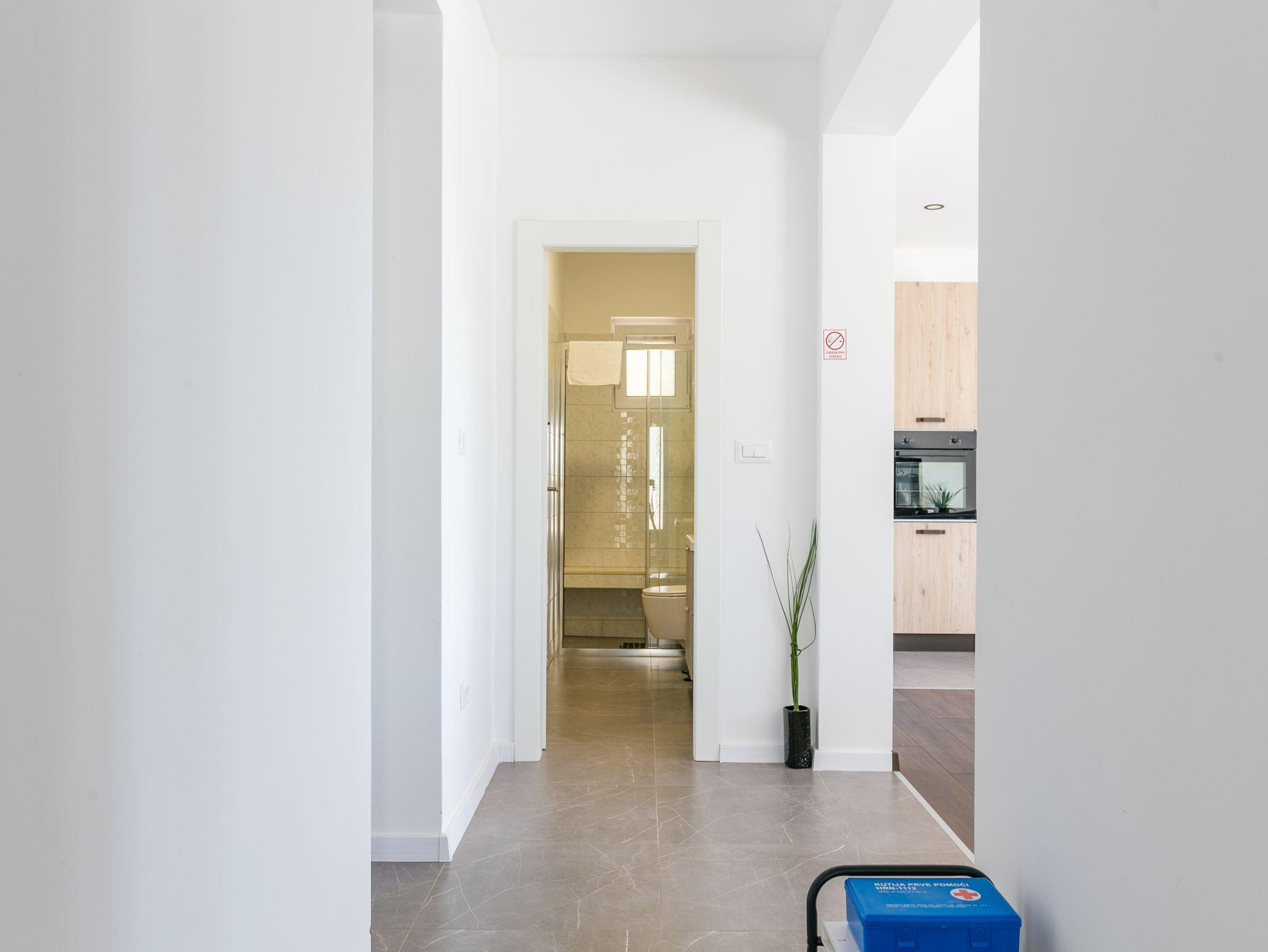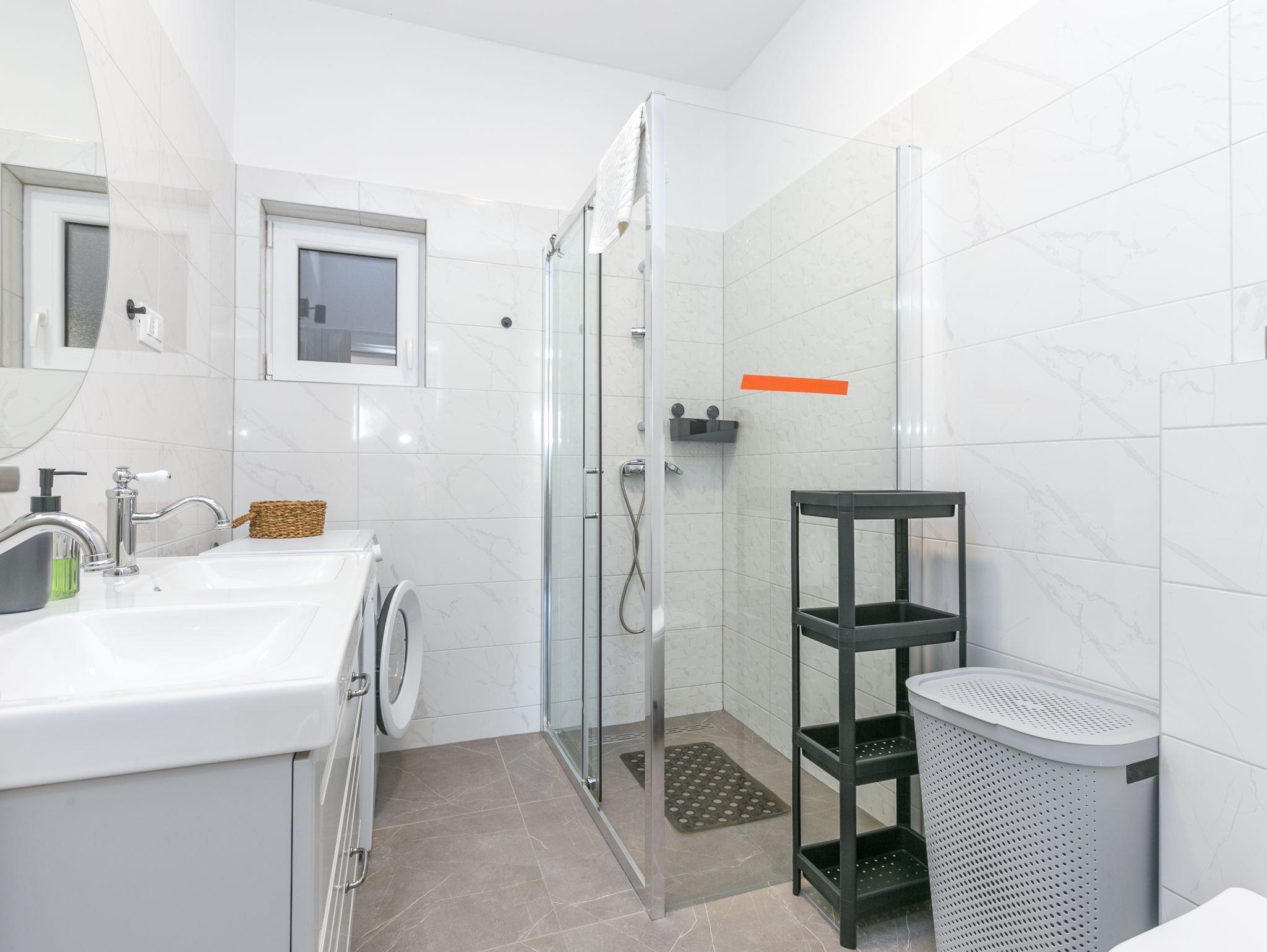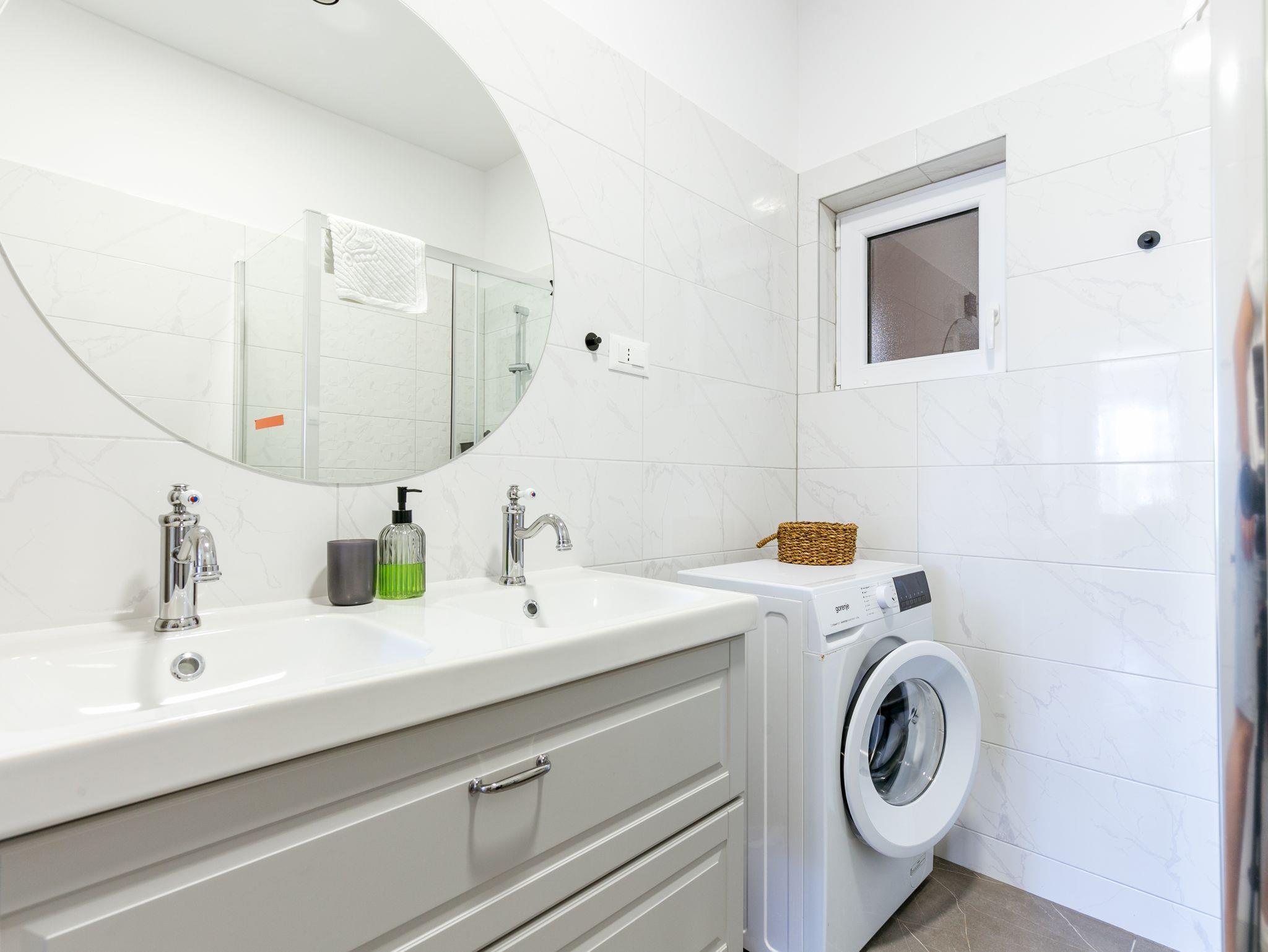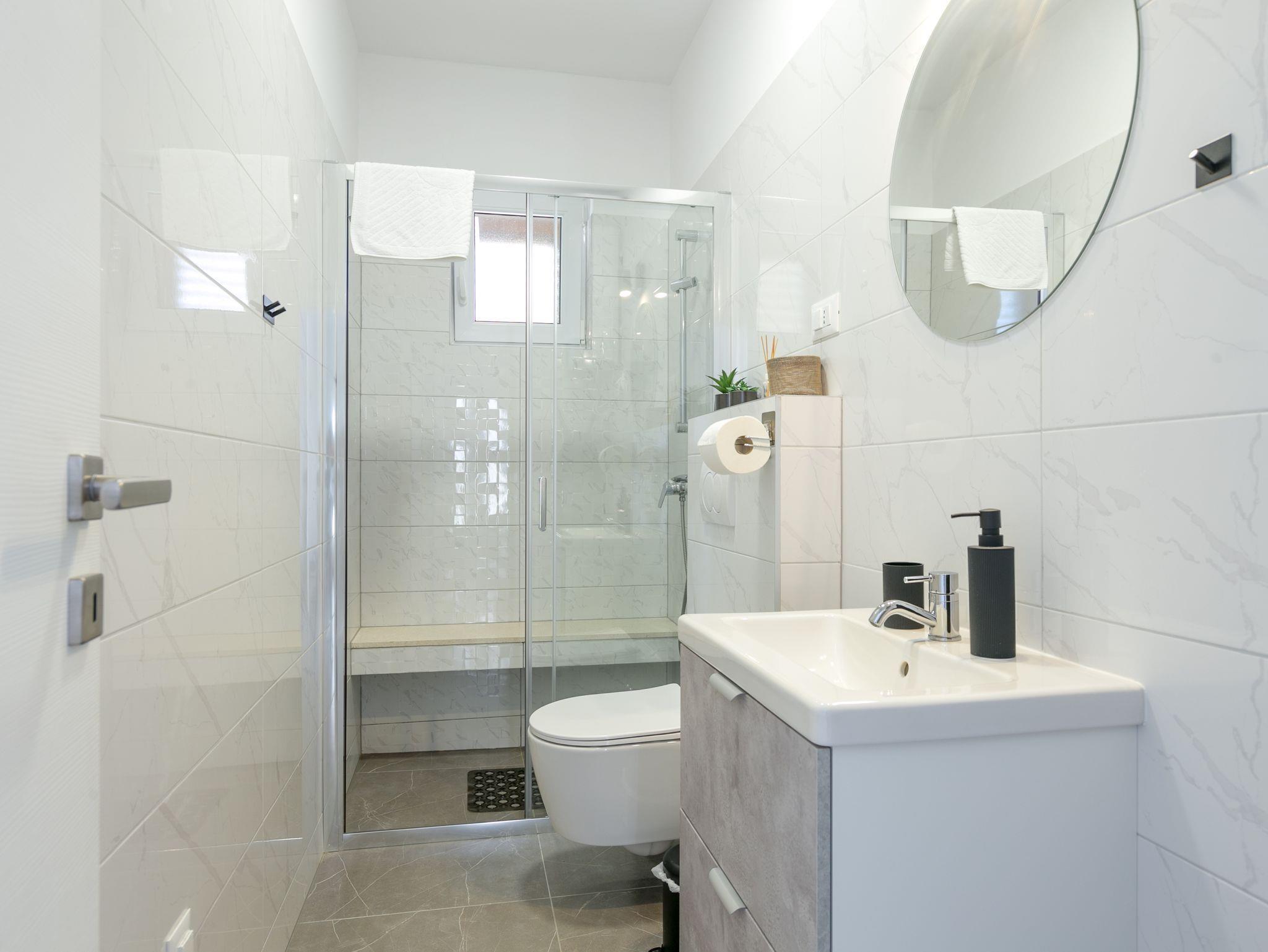 Ferienwohnung bietet Platz für 4 Gäste. Die Betten sind in Schlafzimmern, die es 2 gibt, innerhalb einer Gesamtfläche von 75m2, angeordnet. Die Gäste haben eine eigene Terrasse zur Verfügung, auf der sie in warmen Sommernächten genießen können. Das Apartment bietet Meerblick. Es ist erlaubt, Speisen auf dem Gemeinschafts-Grill vorzubereiten. IM PREIS INBEGRIFFEN: Kurtaxe, Endreinigung, Klimatisierung, Parkplatz, Internet, Bügeleisen, Bügelbrett, Föhn, 2 Kinderbettchen (im Preis enthalten). VERBINDLICHE ZUSÄTZLICHE KOSTEN: Aufzahlung für Kurzaufenthalte (prozentualer Zuschlag pro Nächtigungsanzahl: 30% - 1, 20% - 2, 10% - 3). Die Verfügbarkeit zusätzlicher Dienstleistungen in Ihrem reservierten Termin und die Preise derselben (falls nicht aufgeführt) müssen im Voraus überprüft werden. Zusätzliche Dienstleistungen die in der Zahlungsaufforderung nicht aufgeführt sind werden direkt beim Vermieter bezahlt, angenommen der Gast nutzt auch diese.