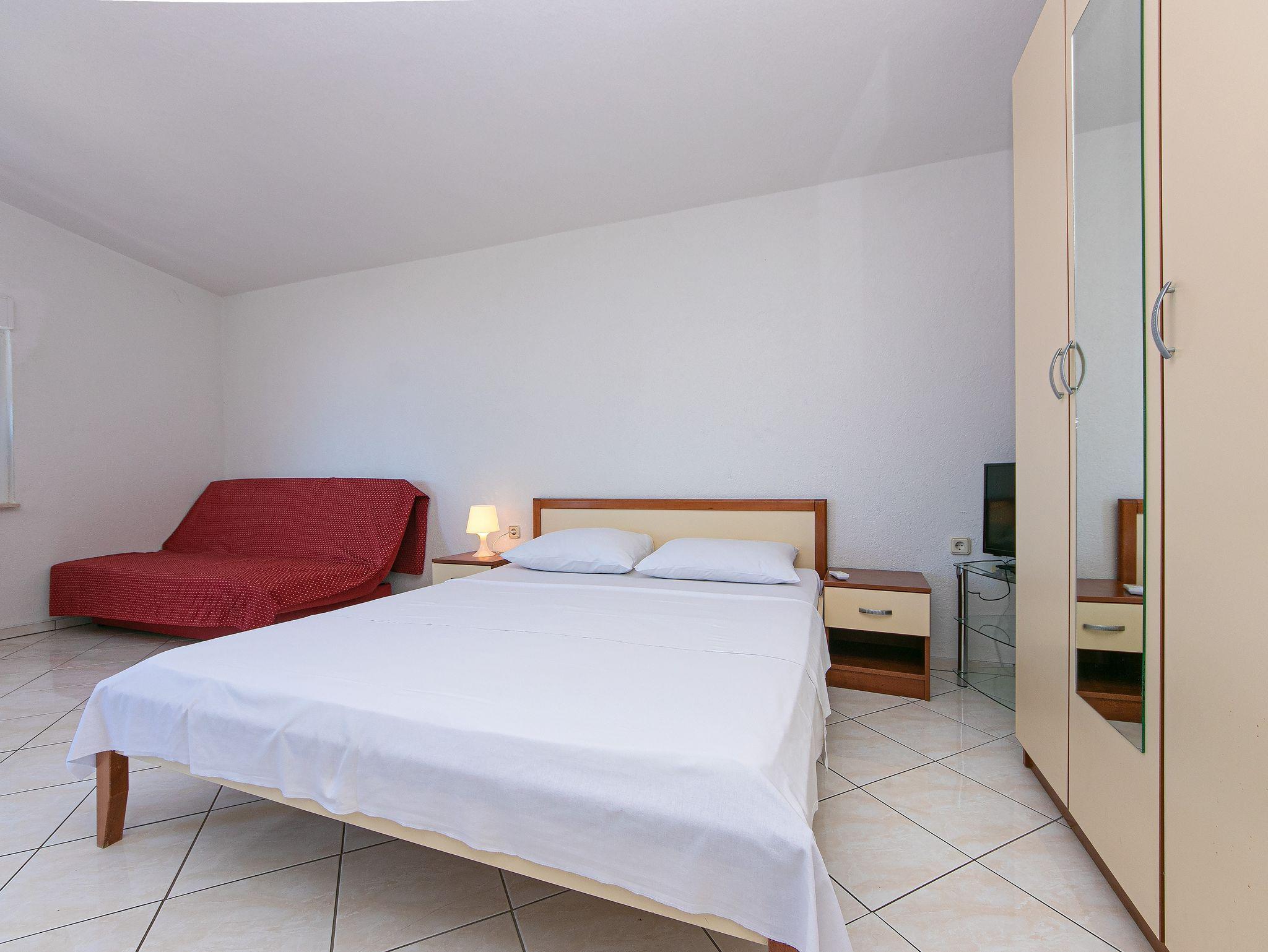 Studio bietet Platz für 2 Gäste. Die Betten sind in Schlafzimmern, die es 1 gibt, innerhalb einer Gesamtfläche von 27m2, angeordnet. Die Gäste haben eine eigene Terrasse zur Verfügung, auf der sie in warmen Sommernächten genießen können. Das Studio-Apartment bietet Meerblick. Es ist erlaubt, Speisen auf dem Gemeinschafts-Grill vorzubereiten. IM PREIS INBEGRIFFEN: Kurtaxe, Endreinigung, Klimatisierung, Garage, Internet, Kinderbett, Zusatzbett, Föhn, 2 Kinderbettchen (im Preis enthalten). VERBINDLICHE ZUSÄTZLICHE KOSTEN: Aufzahlung für Kurzaufenthalte (prozentualer Zuschlag pro Nächtigungsanzahl: 30% - 1, 20% - 2, 10% - 3). UNVERBINDLICHE ZUSÄTZLICHE KOSTEN: Wäschewaschen (5,00 € Waschen). Die Verfügbarkeit zusätzlicher Dienstleistungen in Ihrem reservierten Termin und die Preise derselben (falls nicht aufgeführt) müssen im Voraus überprüft werden. Zusätzliche Dienstleistungen die in der Zahlungsaufforderung nicht aufgeführt sind werden direkt beim Vermieter bezahlt, angenommen der Gast nutzt auch diese.