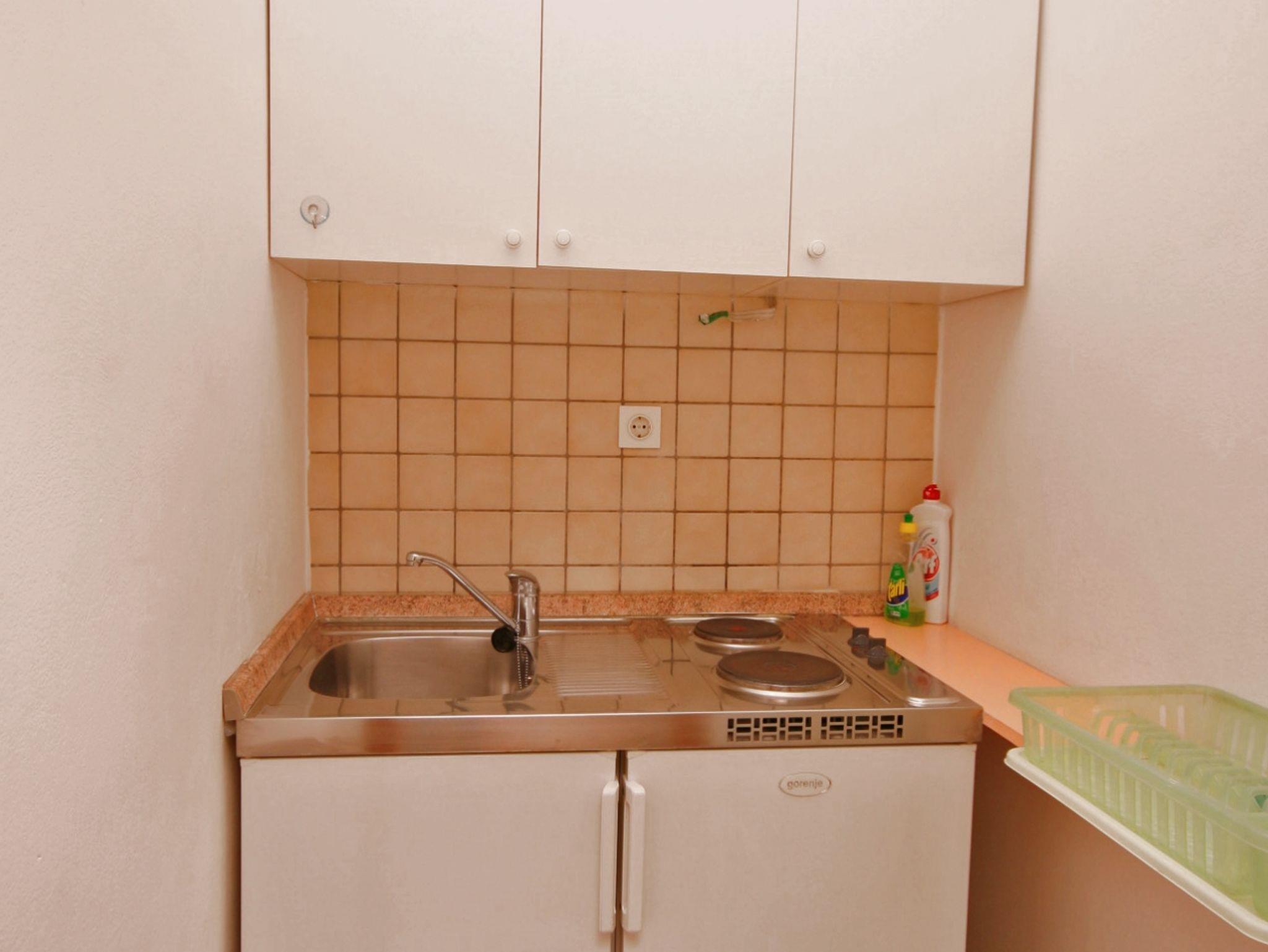 Studio bietet Platz für 2 Gäste. Die Betten sind in Schlafzimmern, die es 1 gibt, innerhalb einer Gesamtfläche von 20m2, angeordnet. Die Gäste haben einen eigenen Balkon zur Verfügung, auf der sie in warmen Sommernächten genießen können. Das Studio-Apartment bietet Meerblick. Es ist erlaubt, Speisen auf dem Gemeinschafts-Grill vorzubereiten. IM PREIS INBEGRIFFEN: Kurtaxe, Endreinigung, Parkplatz, Internet, Bügeleisen, Bügelbrett, Föhn. VERBINDLICHE ZUSÄTZLICHE KOSTEN: Aufzahlung für Kurzaufenthalte (prozentualer Zuschlag pro Nächtigungsanzahl: 30% - 1, 20% - 2, 10% - 3). UNVERBINDLICHE ZUSÄTZLICHE KOSTEN: Klimatisierung (1,00 € kwh), Wäschewaschen (5,00 € Waschen). Die Verfügbarkeit zusätzlicher Dienstleistungen in Ihrem reservierten Termin und die Preise derselben (falls nicht aufgeführt) müssen im Voraus überprüft werden. Zusätzliche Dienstleistungen die in der Zahlungsaufforderung nicht aufgeführt sind werden direkt beim Vermieter bezahlt, angenommen der Gast nutzt auch diese. Ermäßigung auf den Grundpreis: Gratistag 14=13 (bei einem Aufenthalt von 14 Tagen oder mehr erhalten Sie einen Gratistag für den Aufenthalt bis 31.12.26).
