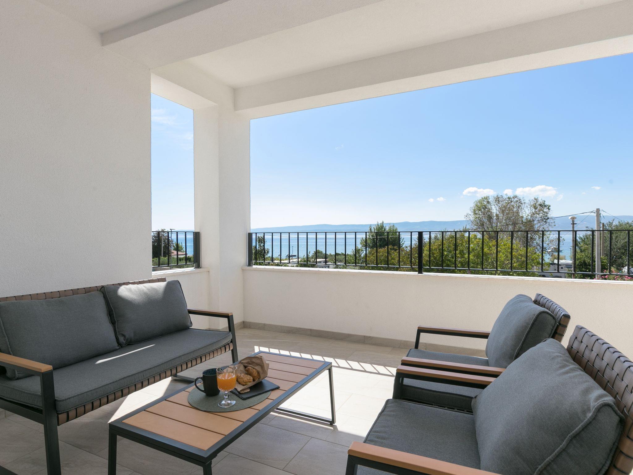 Ferienwohnung bietet Platz für 4 Gäste. Die Betten sind in Schlafzimmern, die es 2 gibt, innerhalb einer Gesamtfläche von 89m2, angeordnet. Die Gäste haben eine eigene Terrasse zur Verfügung, auf der sie in warmen Sommernächten genießen können. Das Apartment bietet Meerblick. Es ist erlaubt, Speisen auf dem Gemeinschafts-Grill vorzubereiten. IM PREIS INBEGRIFFEN: Kurtaxe, Endreinigung, Klimatisierung, Parkplatz, Internet, Bügeleisen, Bügelbrett, Föhn, 2 Kinderbettchen (im Preis enthalten). VERBINDLICHE ZUSÄTZLICHE KOSTEN: Aufzahlung für Kurzaufenthalte (prozentualer Zuschlag pro Nächtigungsanzahl: 30% - 1, 20% - 2, 10% - 3). Die Verfügbarkeit zusätzlicher Dienstleistungen in Ihrem reservierten Termin und die Preise derselben (falls nicht aufgeführt) müssen im Voraus überprüft werden. Zusätzliche Dienstleistungen die in der Zahlungsaufforderung nicht aufgeführt sind werden direkt beim Vermieter bezahlt, angenommen der Gast nutzt auch diese.