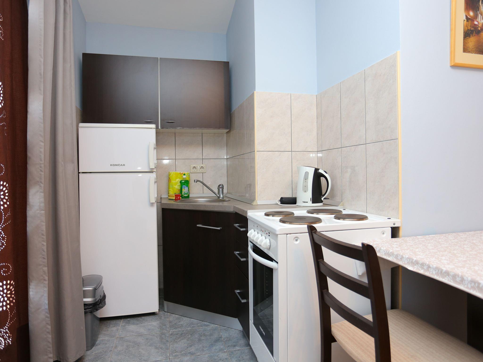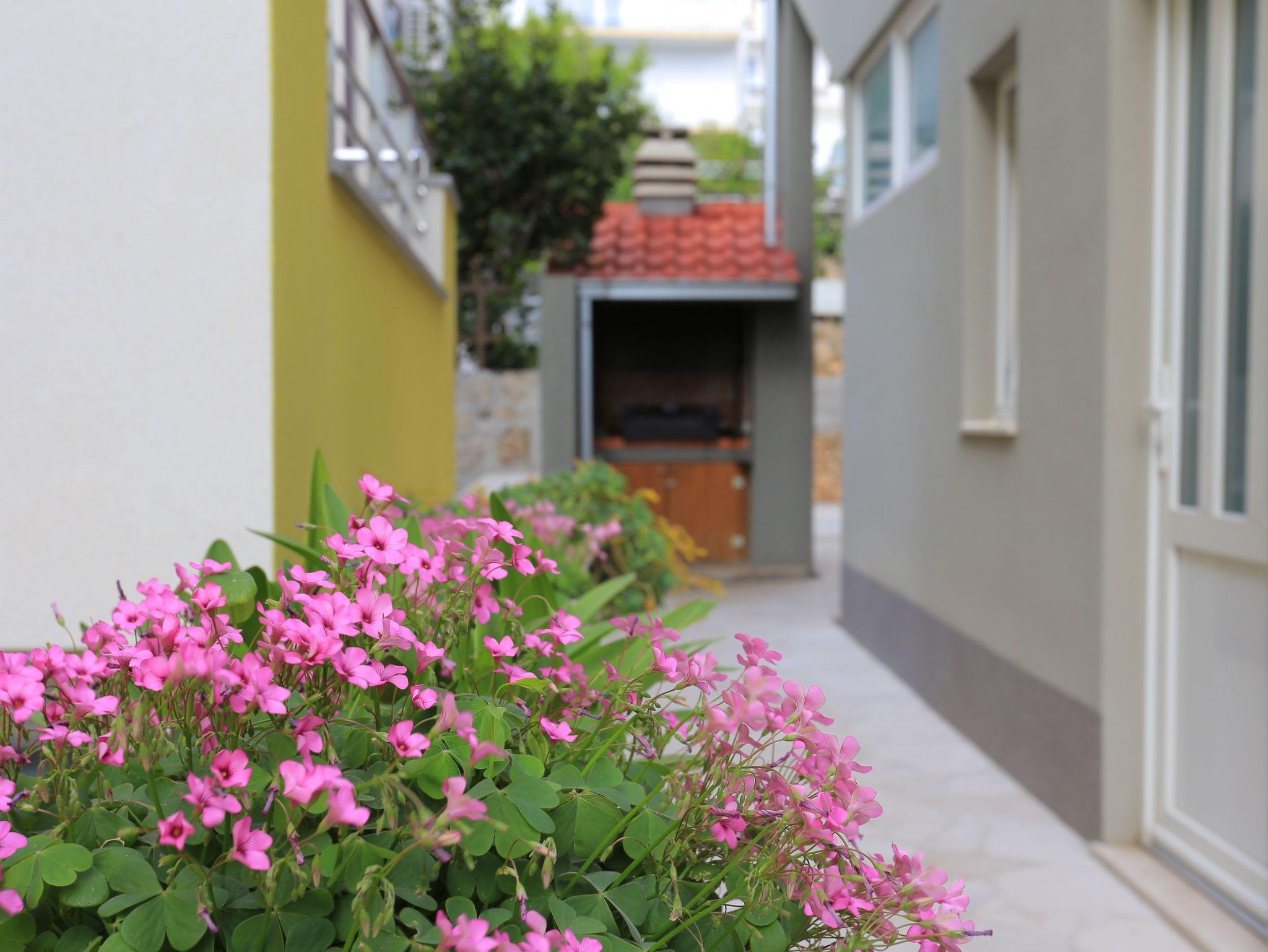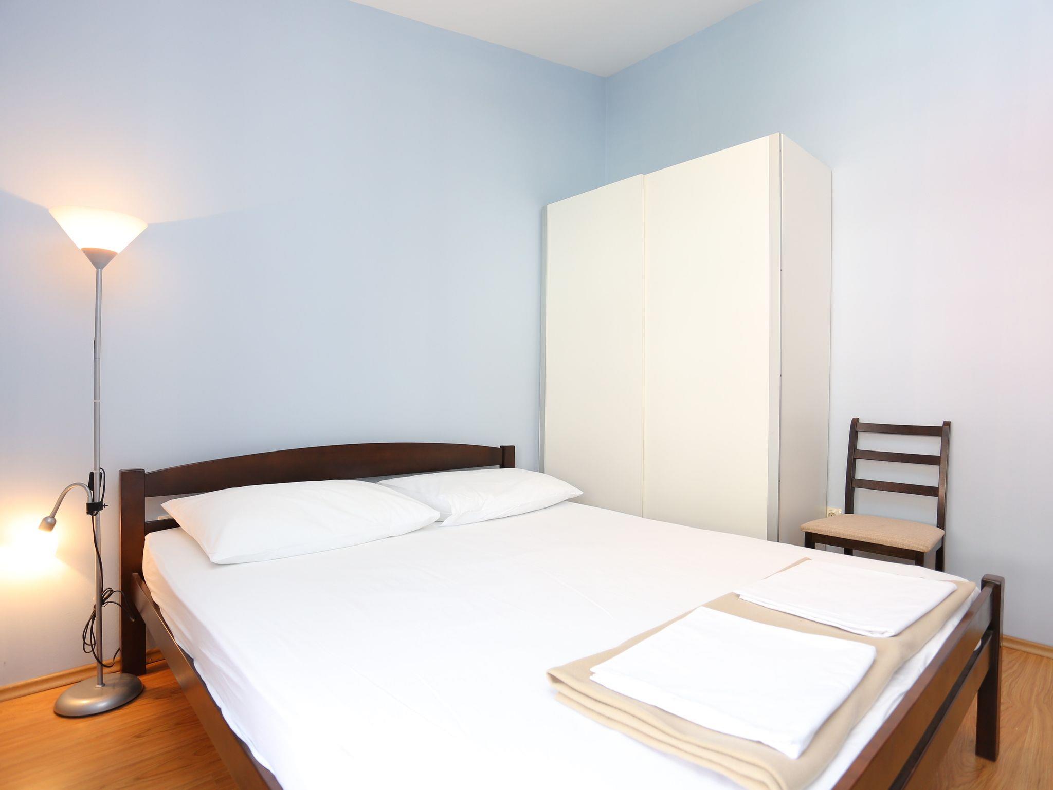 Ferienwohnung bietet Platz für 4 Gäste. Die Betten sind in Schlafzimmern, die es 1 gibt, und in Esszimmer, innerhalb einer Gesamtfläche von 28m2, angeordnet. Die Gäste haben eine eigene Terrasse zur Verfügung, auf der sie in warmen Sommernächten genießen können. Das Apartment bietet Meerblick. Es ist erlaubt, Speisen auf dem Gemeinschafts-Grill vorzubereiten. IM PREIS INBEGRIFFEN: Kurtaxe, Endreinigung, Klimatisierung, Parkplatz, Internet, Bügeleisen, Bügelbrett, Föhn. VERBINDLICHE ZUSÄTZLICHE KOSTEN: Aufzahlung für Kurzaufenthalte (prozentualer Zuschlag pro Nächtigungsanzahl: 30% - 1, 20% - 2, 10% - 3). Die Verfügbarkeit zusätzlicher Dienstleistungen in Ihrem reservierten Termin und die Preise derselben (falls nicht aufgeführt) müssen im Voraus überprüft werden. Zusätzliche Dienstleistungen die in der Zahlungsaufforderung nicht aufgeführt sind werden direkt beim Vermieter bezahlt, angenommen der Gast nutzt auch diese. Ermäßigung auf den Grundpreis: Gratistag 14=13 (bei einem Aufenthalt von 14 Tagen oder mehr erhalten Sie einen Gratistag für den Aufenthalt bis 31.12.26).