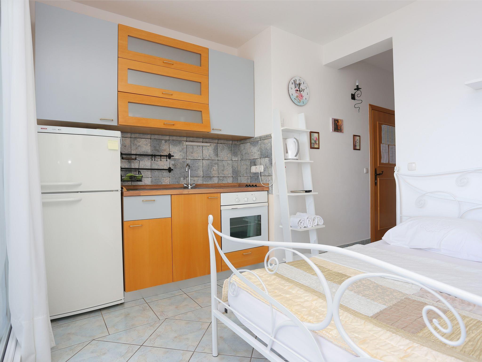 Studio bietet Platz für 2 Gäste. Die Betten sind in Schlafzimmern, die es 1 gibt, innerhalb einer Gesamtfläche von 17m2, angeordnet. Die Gäste haben eine eigene Terrasse zur Verfügung, auf der sie in warmen Sommernächten genießen können. Das Studio-Apartment bietet Meerblick. Es ist erlaubt, Speisen auf dem Gemeinschafts-Grill vorzubereiten. In der Unterkunftseinheit besteht die Möglichkeit des Mitbringens von Haustieren gegen Aufpreis. IM PREIS INBEGRIFFEN: Kurtaxe, Endreinigung, Klimatisierung, Parkplatz, Internet, Kinderbett, Bügeleisen, Bügelbrett, Föhn. VERBINDLICHE ZUSÄTZLICHE KOSTEN: Aufzahlung für Kurzaufenthalte (prozentualer Zuschlag pro Nächtigungsanzahl: 30% - 1, 20% - 2, 10% - 3). UNVERBINDLICHE ZUSÄTZLICHE KOSTEN: Haustiere (5,00 € pro Nacht). Die Verfügbarkeit zusätzlicher Dienstleistungen in Ihrem reservierten Termin und die Preise derselben (falls nicht aufgeführt) müssen im Voraus überprüft werden. Zusätzliche Dienstleistungen die in der Zahlungsaufforderung nicht aufgeführt sind werden direkt beim Vermieter bezahlt, angenommen der Gast nutzt auch diese.