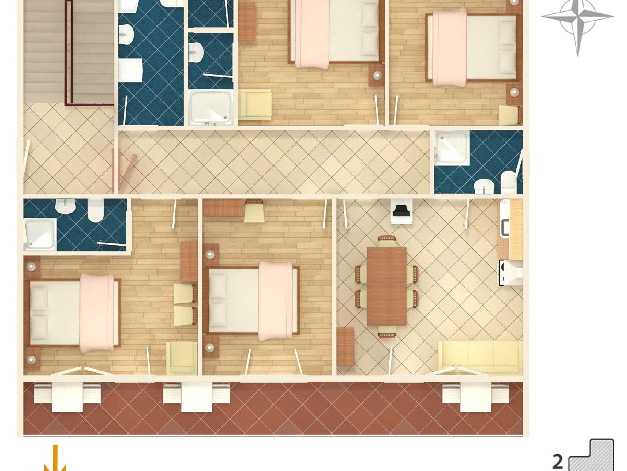 Ferienwohnung bietet Platz für 10 Gäste. Die Betten sind in Schlafzimmern, die es 4 gibt, und in Esszimmer, innerhalb einer Gesamtfläche von 119m2, angeordnet. Die Gäste haben eine eigene Terrasse zur Verfügung, auf der sie in warmen Sommernächten genießen können. Das Apartment bietet Meerblick. Es ist erlaubt, Speisen auf dem Gemeinschafts-Grill vorzubereiten. Räume der gebuchten Unterkunftseinheit werden nicht in eine Ganze verbunden. Unterkunftseinheit hat Räume, die von dem Rest der Einheit abgetrennt werden. IM PREIS INBEGRIFFEN: Kurtaxe, Endreinigung, Parkplatz, Internet, Bügeleisen, Bügelbrett, Föhn, tragbarer Grill. UNVERBINDLICHE ZUSÄTZLICHE KOSTEN: Klimatisierung (10,00 € pro Nacht). Die Verfügbarkeit zusätzlicher Dienstleistungen in Ihrem reservierten Termin und die Preise derselben (falls nicht aufgeführt) müssen im Voraus überprüft werden. Zusätzliche Dienstleistungen die in der Zahlungsaufforderung nicht aufgeführt sind werden direkt beim Vermieter bezahlt, angenommen der Gast nutzt auch diese.