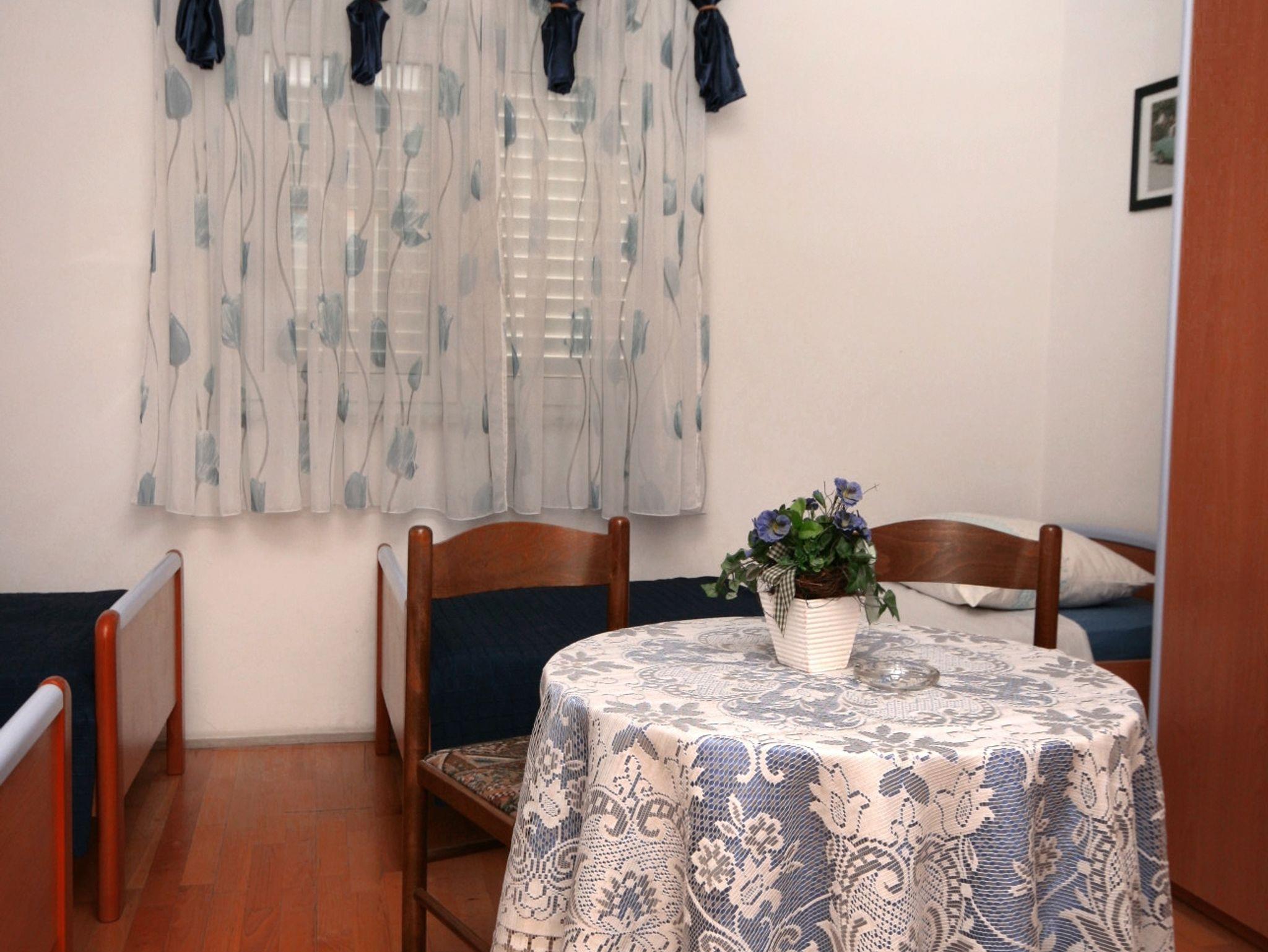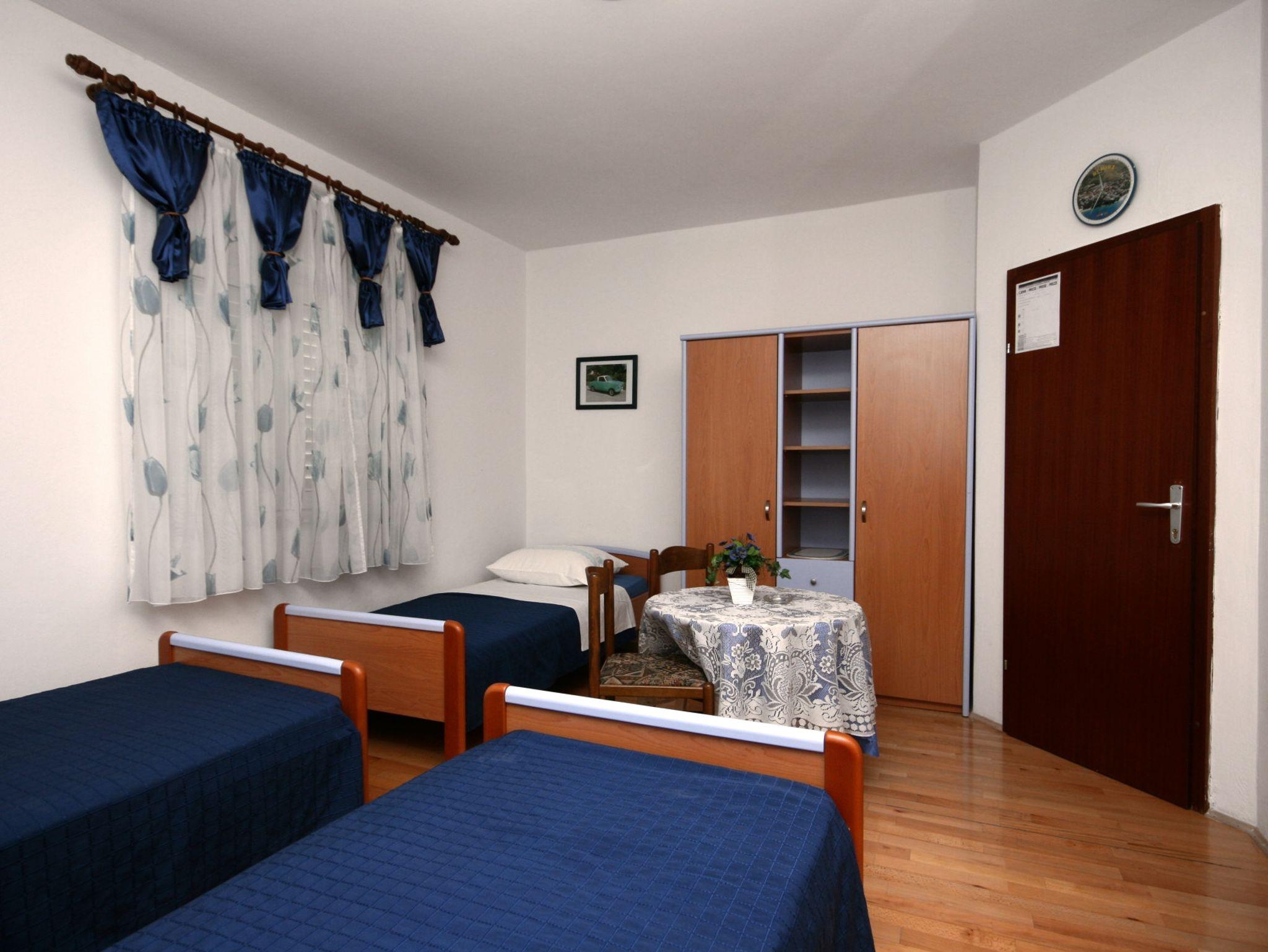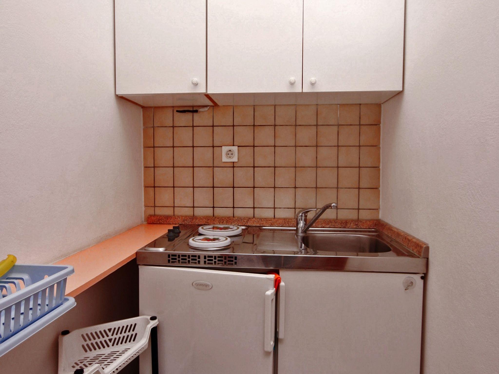 Studio bietet Platz für 3 Gäste. Die Betten sind in Schlafzimmern, die es 1 gibt, innerhalb einer Gesamtfläche von 20m2, angeordnet. Die Gäste haben einen eigenen Balkon zur Verfügung, auf der sie in warmen Sommernächten genießen können. Das Studio-Apartment bietet Meerblick. Es ist erlaubt, Speisen auf dem Gemeinschafts-Grill vorzubereiten. IM PREIS INBEGRIFFEN: Kurtaxe, Endreinigung, Parkplatz, Internet, Bügeleisen, Bügelbrett, Föhn. VERBINDLICHE ZUSÄTZLICHE KOSTEN: Aufzahlung für Kurzaufenthalte (prozentualer Zuschlag pro Nächtigungsanzahl: 30% - 1, 20% - 2, 10% - 3). UNVERBINDLICHE ZUSÄTZLICHE KOSTEN: Klimatisierung (1,00 € kwh), Wäschewaschen (5,00 € Waschen). Die Verfügbarkeit zusätzlicher Dienstleistungen in Ihrem reservierten Termin und die Preise derselben (falls nicht aufgeführt) müssen im Voraus überprüft werden. Zusätzliche Dienstleistungen die in der Zahlungsaufforderung nicht aufgeführt sind werden direkt beim Vermieter bezahlt, angenommen der Gast nutzt auch diese. Ermäßigung auf den Grundpreis: Gratistag 14=13 (bei einem Aufenthalt von 14 Tagen oder mehr erhalten Sie einen Gratistag für den Aufenthalt bis 31.12.26).