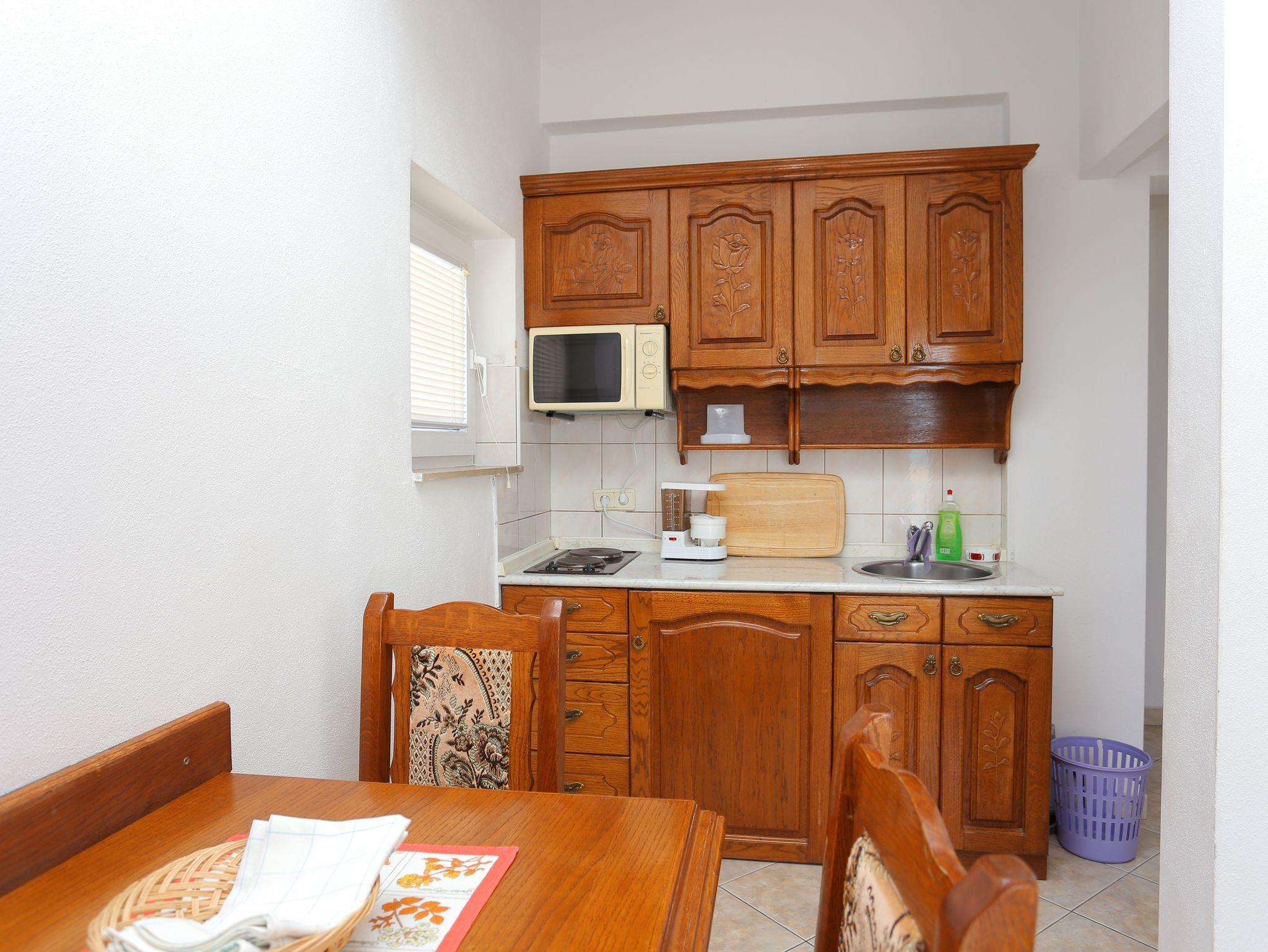 Studio bietet Platz für 2 Gäste. Die Betten sind in Schlafzimmern, die es 1 gibt, innerhalb einer Gesamtfläche von 19m2, angeordnet. Die Gäste haben einen eigenen Balkon zur Verfügung, auf der sie in warmen Sommernächten genießen können. Das Studio-Apartment bietet Meerblick. Es ist erlaubt, Speisen auf dem Gemeinschafts-Grill vorzubereiten. IM PREIS INBEGRIFFEN: Kurtaxe, Endreinigung, Parkplatz, Internet, Kinderbett, Bügeleisen, Bügelbrett, Föhn, tragbarer Grill. VERBINDLICHE ZUSÄTZLICHE KOSTEN: Aufzahlung für Kurzaufenthalte (prozentualer Zuschlag pro Nächtigungsanzahl: 30% - 1, 20% - 2, 10% - 3). UNVERBINDLICHE ZUSÄTZLICHE KOSTEN: Klimatisierung (5,00 € pro Nacht), Wäschewaschen (5,00 € Waschen). Die Verfügbarkeit zusätzlicher Dienstleistungen in Ihrem reservierten Termin und die Preise derselben (falls nicht aufgeführt) müssen im Voraus überprüft werden. Zusätzliche Dienstleistungen die in der Zahlungsaufforderung nicht aufgeführt sind werden direkt beim Vermieter bezahlt, angenommen der Gast nutzt auch diese. Ermäßigung auf den Grundpreis: Gratistag 14=13 (bei einem Aufenthalt von 14 Tagen oder mehr erhalten Sie einen Gratistag für den Aufenthalt bis 31.12.26).