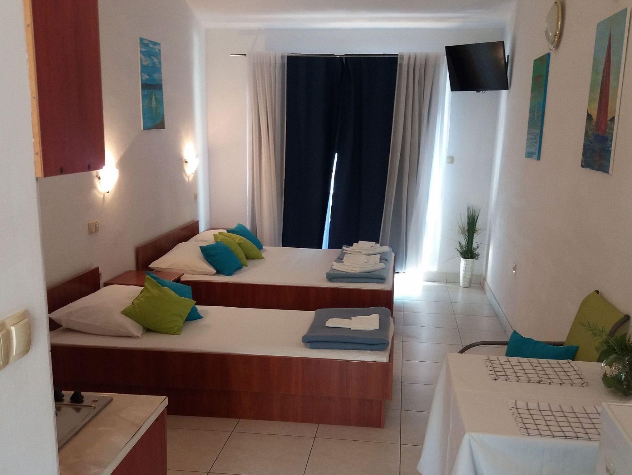 Studio bietet Platz für 3 Gäste. Die Betten sind in Schlafzimmern, die es 1 gibt, innerhalb einer Gesamtfläche von 23m2, angeordnet. Die Gäste haben einen eigenen Balkon zur Verfügung, auf der sie in warmen Sommernächten genießen können. Das Studio-Apartment bietet Meerblick. Es ist erlaubt, Speisen auf dem Gemeinschafts-Grill vorzubereiten. IM PREIS INBEGRIFFEN: Kurtaxe, Endreinigung, Klimatisierung, Parkplatz, Internet, Bügelbrett, Föhn. VERBINDLICHE ZUSÄTZLICHE KOSTEN: Aufzahlung für Kurzaufenthalte (prozentualer Zuschlag pro Nächtigungsanzahl: 30% - 1, 20% - 2, 10% - 3). UNVERBINDLICHE ZUSÄTZLICHE KOSTEN: Zusatzbett (10,00 € pro Nacht). Die Verfügbarkeit zusätzlicher Dienstleistungen in Ihrem reservierten Termin und die Preise derselben (falls nicht aufgeführt) müssen im Voraus überprüft werden. Zusätzliche Dienstleistungen die in der Zahlungsaufforderung nicht aufgeführt sind werden direkt beim Vermieter bezahlt, angenommen der Gast nutzt auch diese. Ermäßigung auf den Grundpreis: Gratistag 14=13 (bei einem Aufenthalt von 14 Tagen oder mehr erhalten Sie einen Gratistag für den Aufenthalt bis 31.12.26).