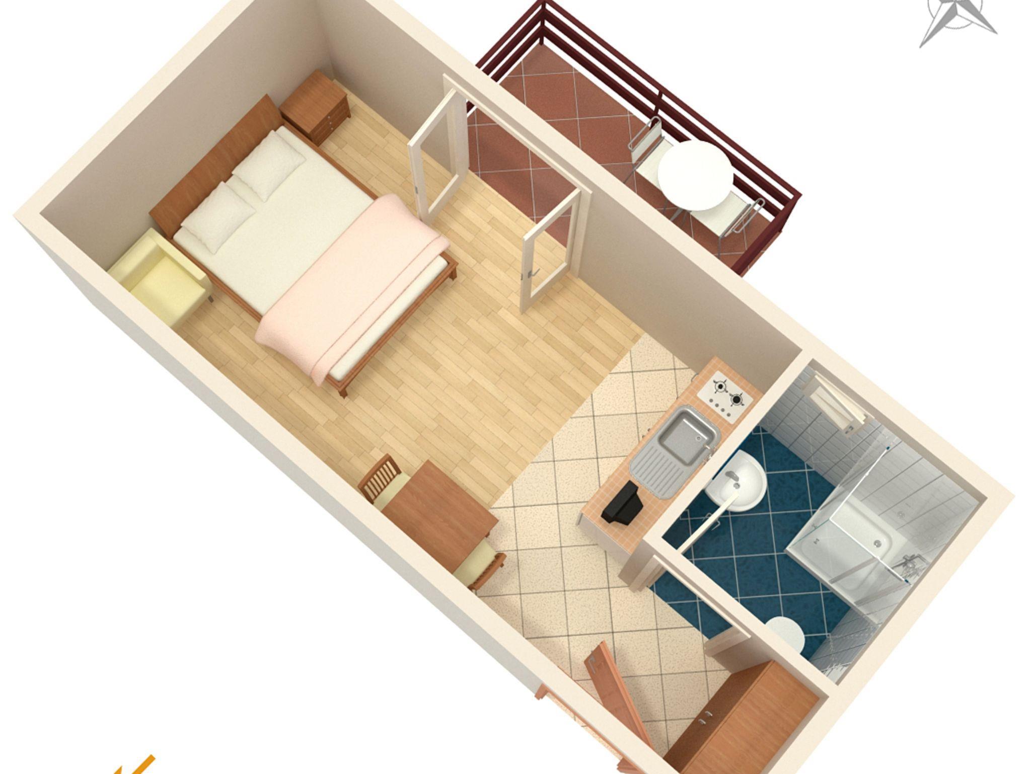 Studio bietet Platz für 2 Gäste. Die Betten sind in Schlafzimmern, die es 1 gibt, innerhalb einer Gesamtfläche von 19m2, angeordnet. Die Gäste haben einen eigenen Balkon zur Verfügung, auf der sie in warmen Sommernächten genießen können. Es ist erlaubt, Speisen auf dem Gemeinschafts-Grill vorzubereiten. IM PREIS INBEGRIFFEN: Kurtaxe, Endreinigung, Klimatisierung, Parkplatz, Internet. VERBINDLICHE ZUSÄTZLICHE KOSTEN: Aufzahlung für Kurzaufenthalte (prozentualer Zuschlag pro Nächtigungsanzahl: 30% - 1, 20% - 2, 10% - 3). Die Verfügbarkeit zusätzlicher Dienstleistungen in Ihrem reservierten Termin und die Preise derselben (falls nicht aufgeführt) müssen im Voraus überprüft werden. Zusätzliche Dienstleistungen die in der Zahlungsaufforderung nicht aufgeführt sind werden direkt beim Vermieter bezahlt, angenommen der Gast nutzt auch diese.