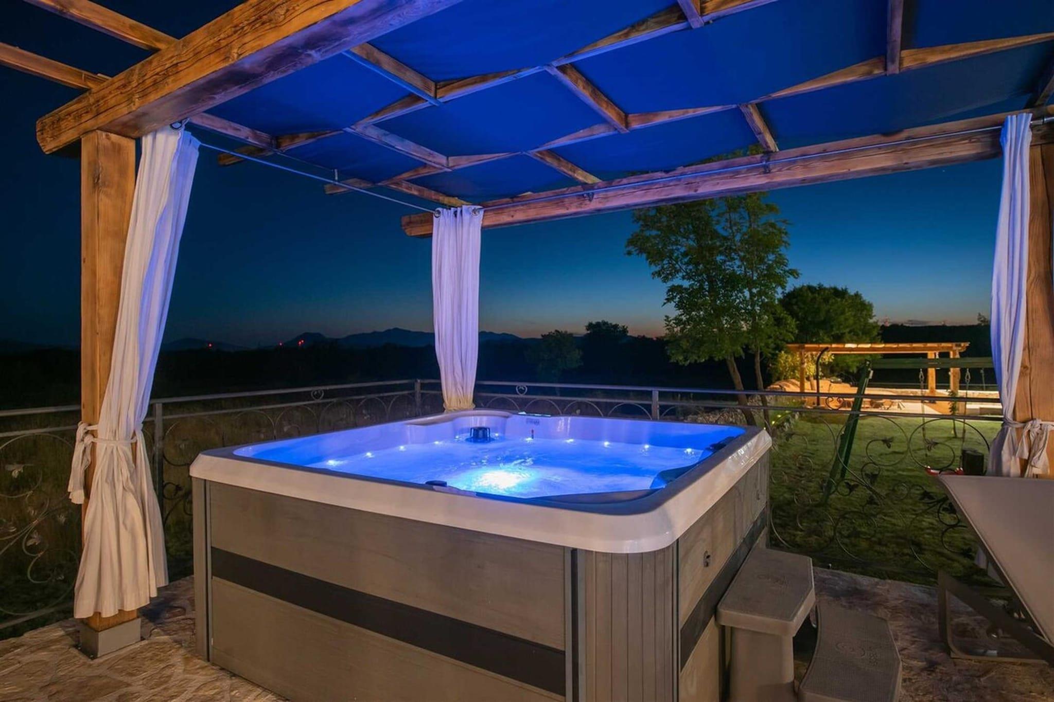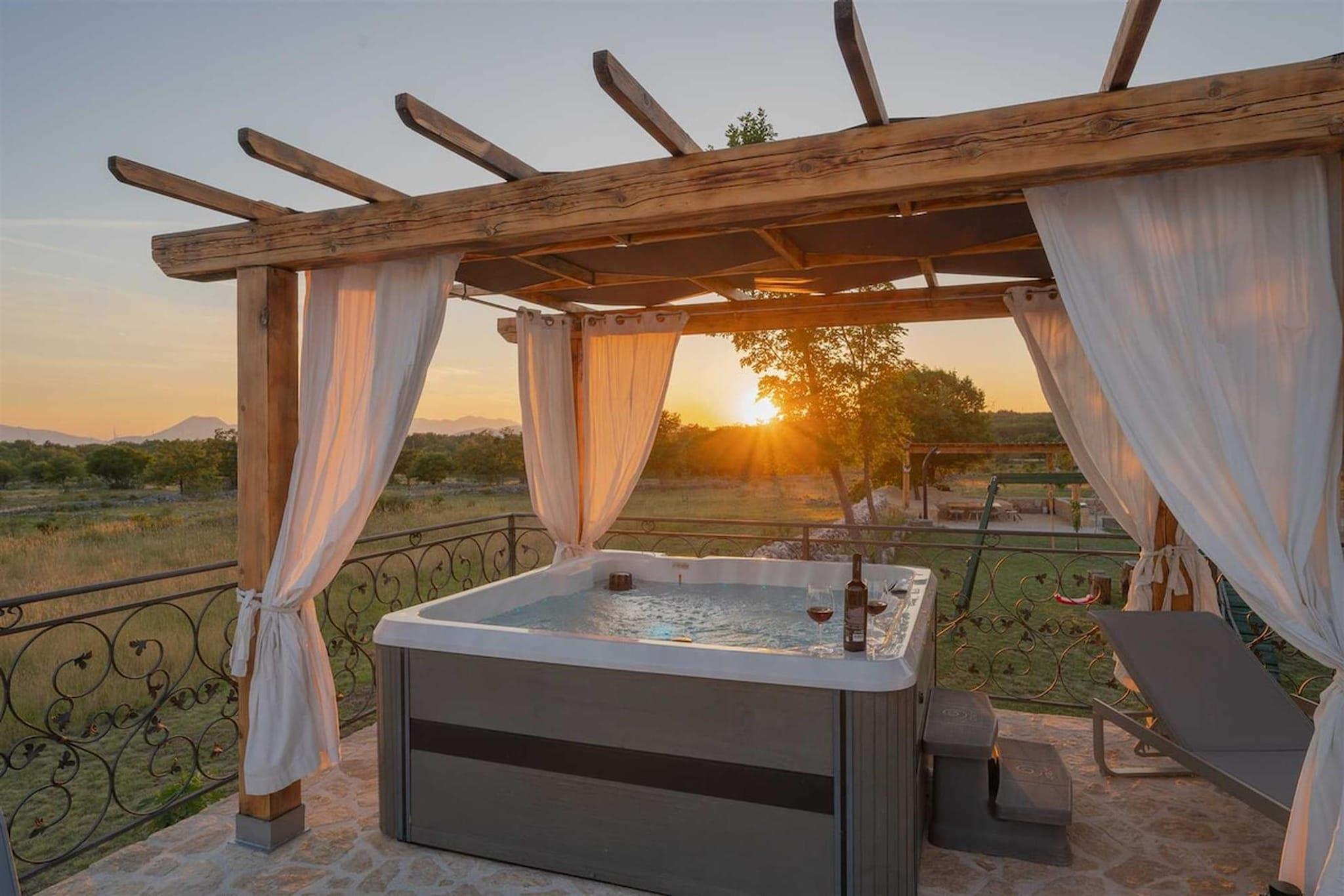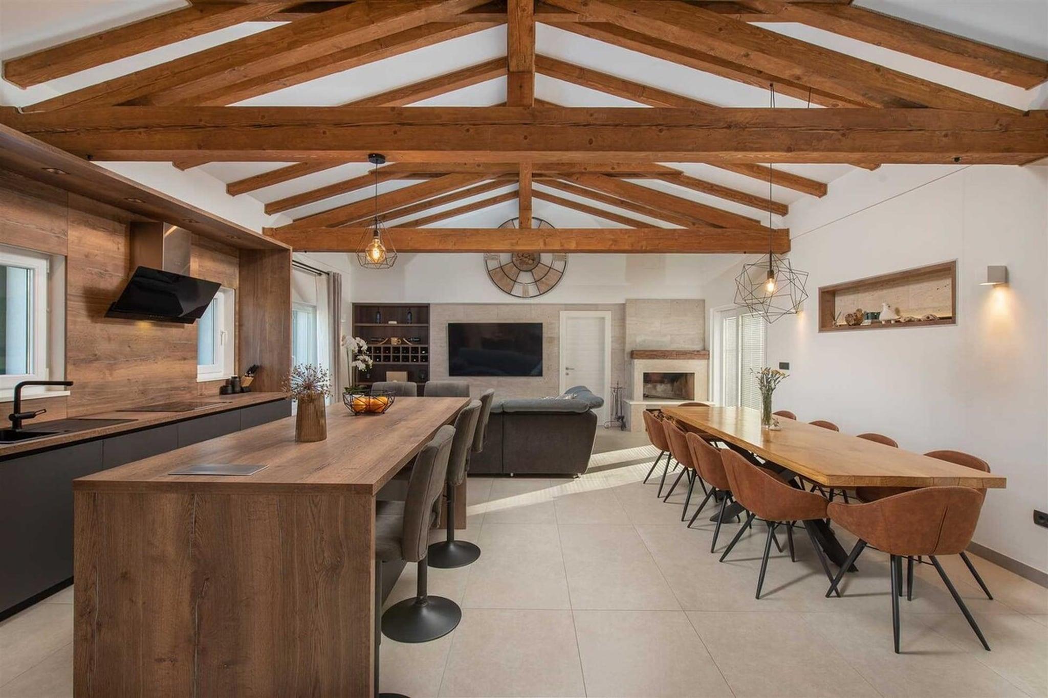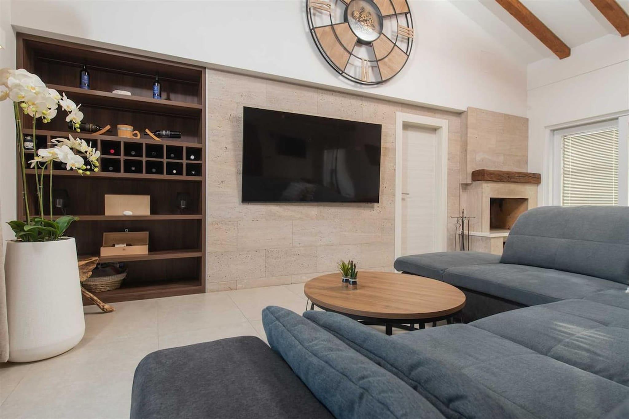 Eingebettet in die grünen Hügel oberhalb der Küste, im friedlichen Dorf Lovrec, liegt die Villa Unika – der ideale Ort für Freunde, die dem Alltag entfliehen möchten. Dieses 200 m² große private Refugium für bis zu 10 Gäste befindet sich auf einem weitläufigen, 2.000 m² großen, umzäunten Grundstück und bietet Ruhe statt Nachtleben, gemeinsame Routinen und Weite. Die Villa besticht durch großzügige und zugleich beruhigende Atmosphäre. Vier geräumige Schlafzimmer mit jeweils eigenem Bad, Doppelbett und ebenerdiger Dusche bieten jedem Gast ausreichend Privatsphäre, ohne das Gemeinschaftsgefühl zu beeinträchtigen. Das zentrale Wohnzimmer mit Kamin, ausziehbarer Sofaecke, Esstisch und Fernseher lädt zum gemütlichen Beisammensein für entspannte Frühstücke, angeregte Gespräche am Mittag und spontane Spieleabende ein. Die voll ausgestattete Küche ist perfekt für ausgiebiges Kochen und gemütliche Mahlzeiten in geselliger Runde. Draußen lässt es sich wunderbar entspannen. Der beheizte Pool, die Sauna und die große Sonnenterrasse mit Liegestühlen laden zum Verweilen und Genießen ein. Die überdachte Außenküche und die Terrasse laden zum Verweilen ein und lassen den Nachmittag nahtlos in den Abend übergehen. Auch für entspannte Aktivitäten ist gesorgt: schattige Lounge-Ecken und sogar ein kleiner Bio-Garten zum Selberpflücken von frischem Obst und Gemüse bieten sich an. Alles für den täglichen Bedarf ist nur wenige Gehminuten von der Villa entfernt, und gemütliche Tagesausflüge führen zum Fluss Cetina oder zu den Aussichtspunkten des Biokovo-Gebirges. Wer Lust auf pulsierendes Stadtleben hat, erreicht Split in wenigen Autominuten. Die Villa Unika ist ideal für Freunde, die sich viel Platz, höchsten Komfort, Privatsphäre ohne Abgeschiedenheit und ein Haus wünschen, das ein entschleunigtes Leben fördert. Hier beginnen die Tage sanft und die Nächte klingen ohne Hektik aus.