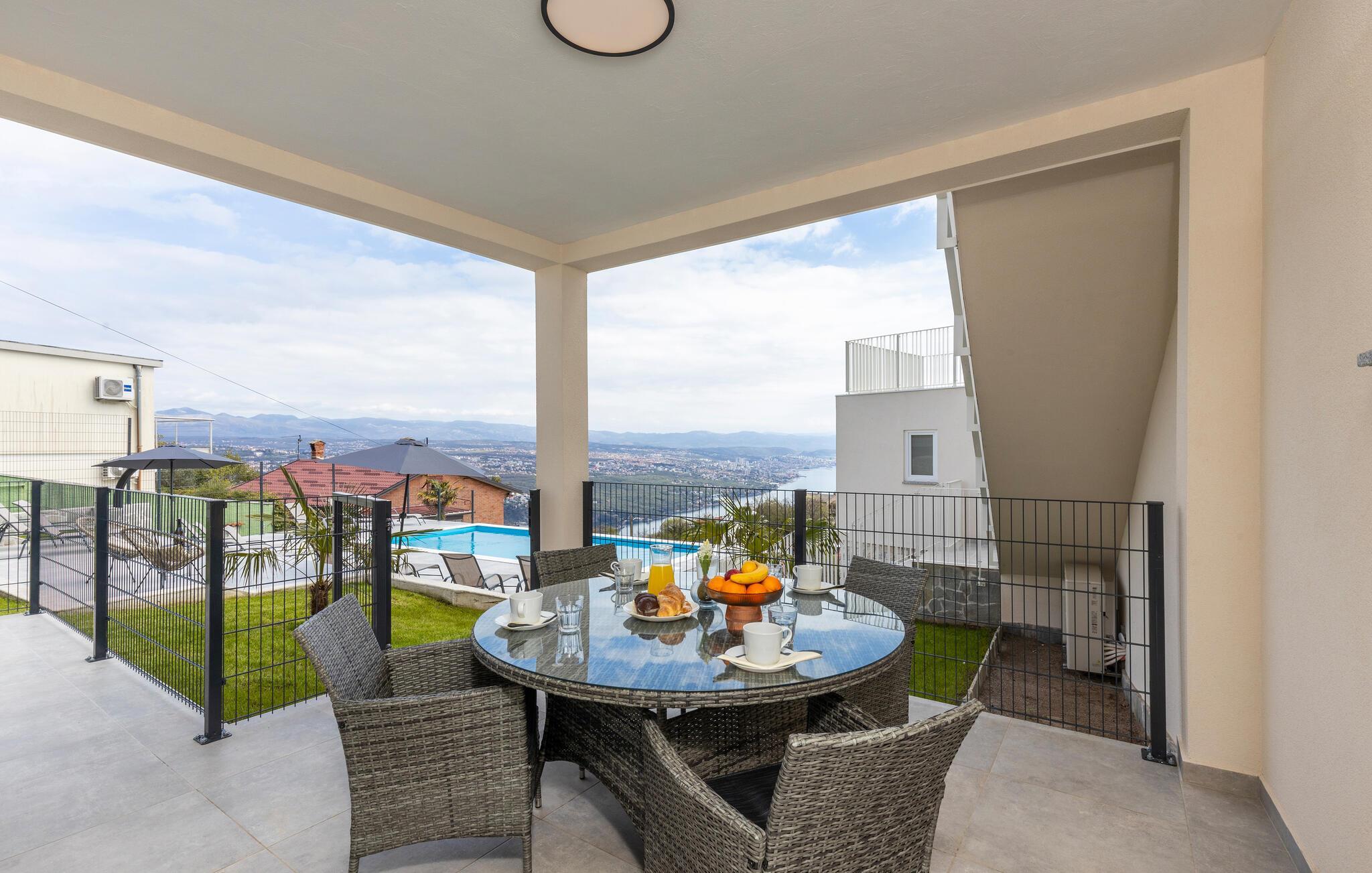 Lassen Sie bei einem Drink auf der Terrasse den Blick in die blaue Weite schweifen, der Gemeinschaftspool bietet Erfrischung an heißen Tagen.