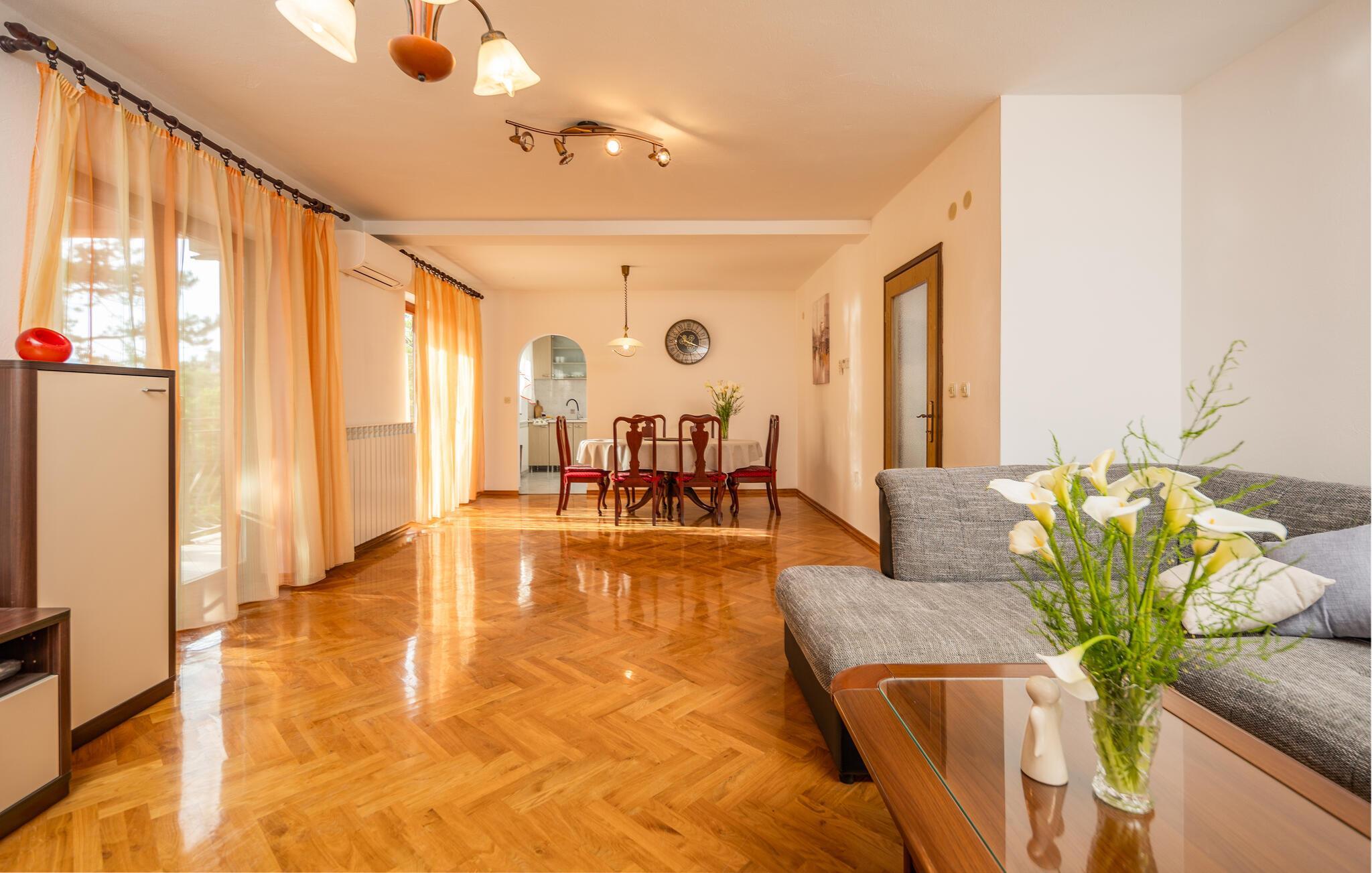 In idealer Lage der Opatija Riviera empfängt Sie diese große und angenehmen Ferienwohnung in einem Mehrfamilienhaus. Die Einrichtung und Ausstattung ist gut und familienfreundlich und verspricht Ihnen den idealen Rahmen für Ihren Entspannungsurlaub. Neben Ihrem Ferienalltag, dem Sie beim Kochen, Essen und Spielen nachgehen können, bietet Ihnen im Garten der private Pool die Möglichkeit zu Badespaß und Abkühlung.