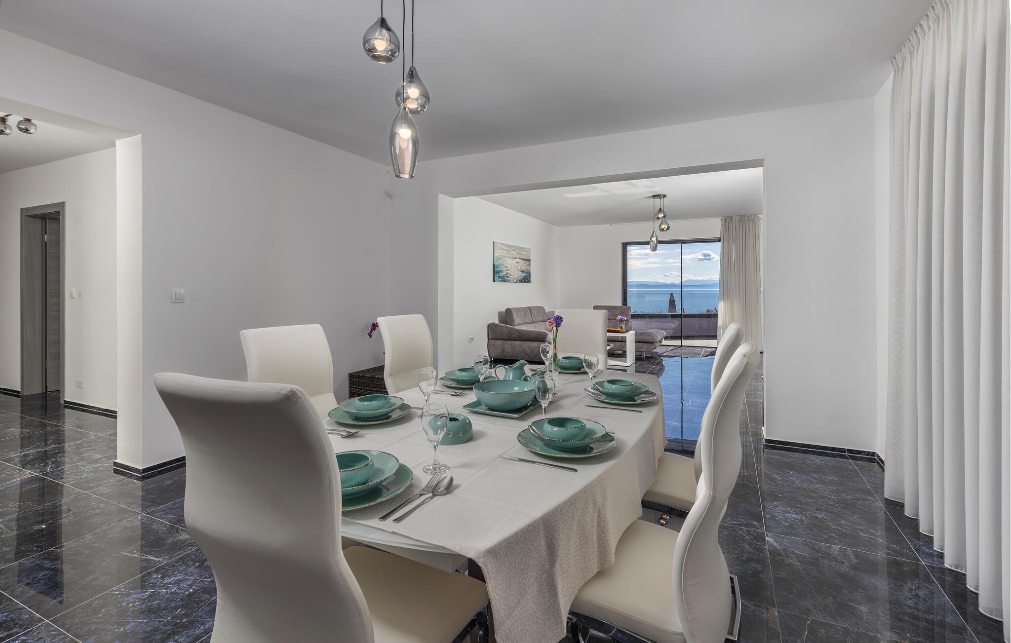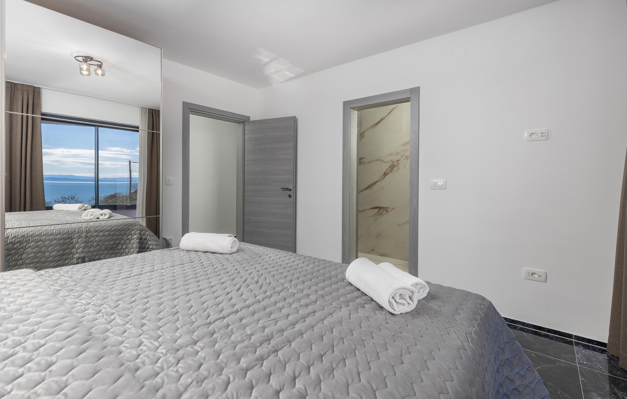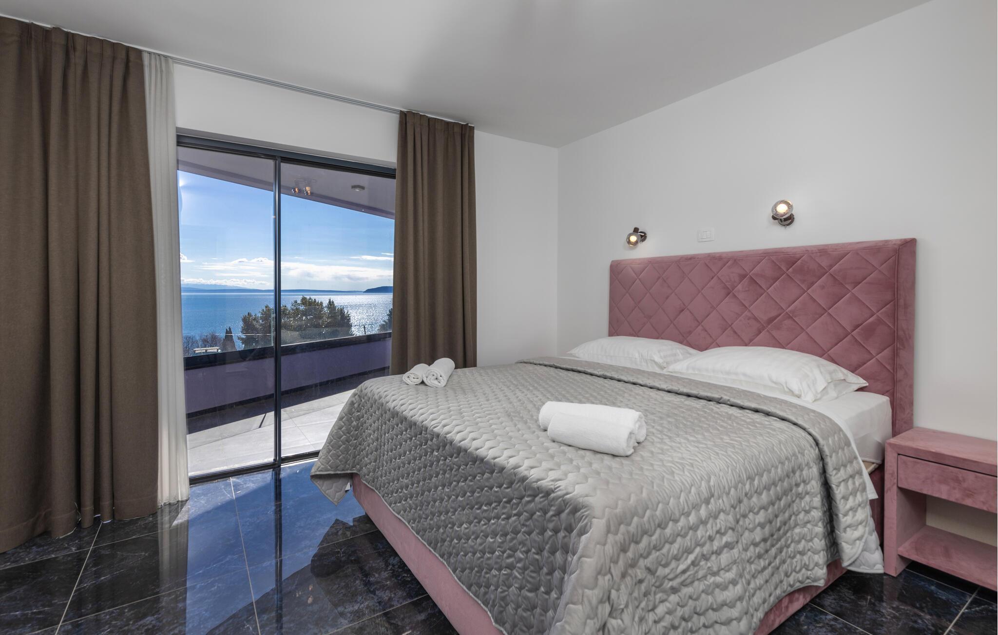 Am Meeresufer der Kvarner Bucht heißt Sie diese elegante Ferienwohnung willkommen. Bewundern Sie den Panoramablick auf das funkelnde Meerwasser, die ideale Szenerie für eine entspannende Auszeit. Nach einer geruhsamen Nacht begrüßen Sie auf Ihrer Terrasse die ersten Sonnenstrahlen. Beim Frühstück mit Meerblick steigt die Vorfreude auf lustige Strandtage und ausgiebige Entdeckungstouren in der Region. Doch zuerst gönnen Sie sich vielleicht ein erquickendes Bad im Pool, der an heißen Tagen Abkühlung verspricht. Im Whirlpool kommen Geist und Körper voll und ganz zur Ruhe.